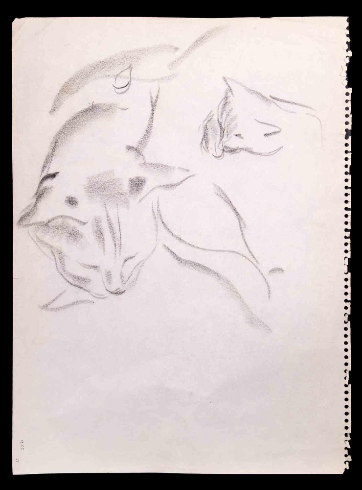 Giselle Halff, Sleeping Cat, Original Pencil Drawing, 1965