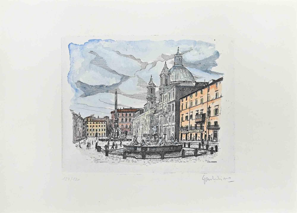 Giuseppe Malandrino, Navona Square, 1970s, Etching