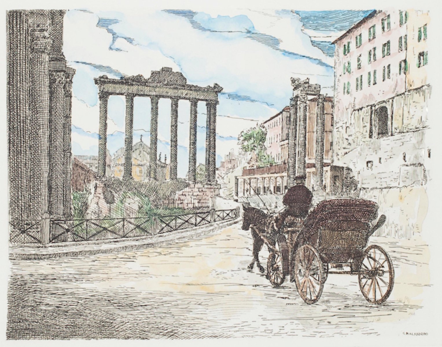 Giuseppe Malandrino, Roman Landscape, Etching, 1970s