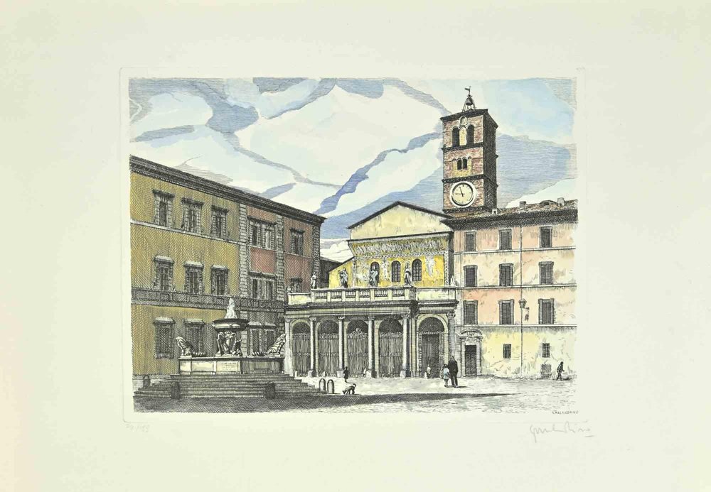 Giuseppe Malandrino, Santa Maria Maggiore di Trastevere, Etching, 1970s
