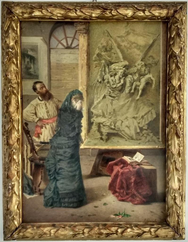 Giuseppe Puricelli Guerra - Untitled - interior - Original Oil Painting - 1860