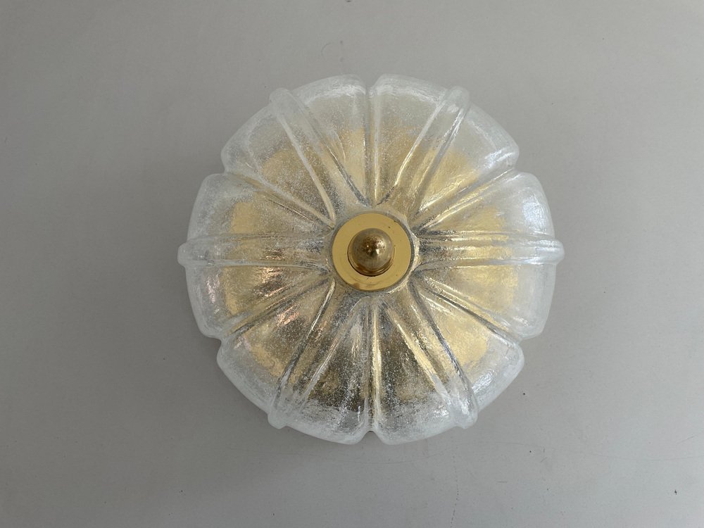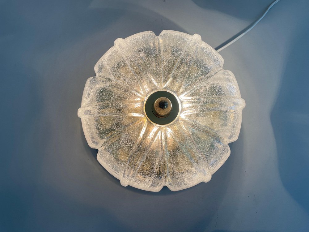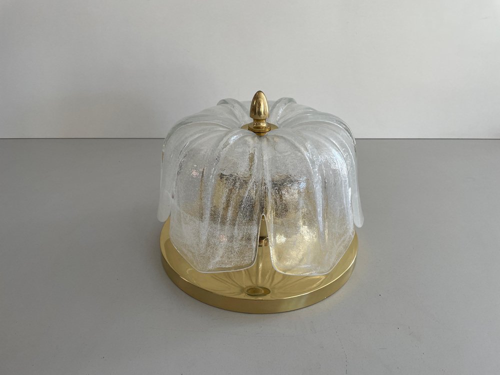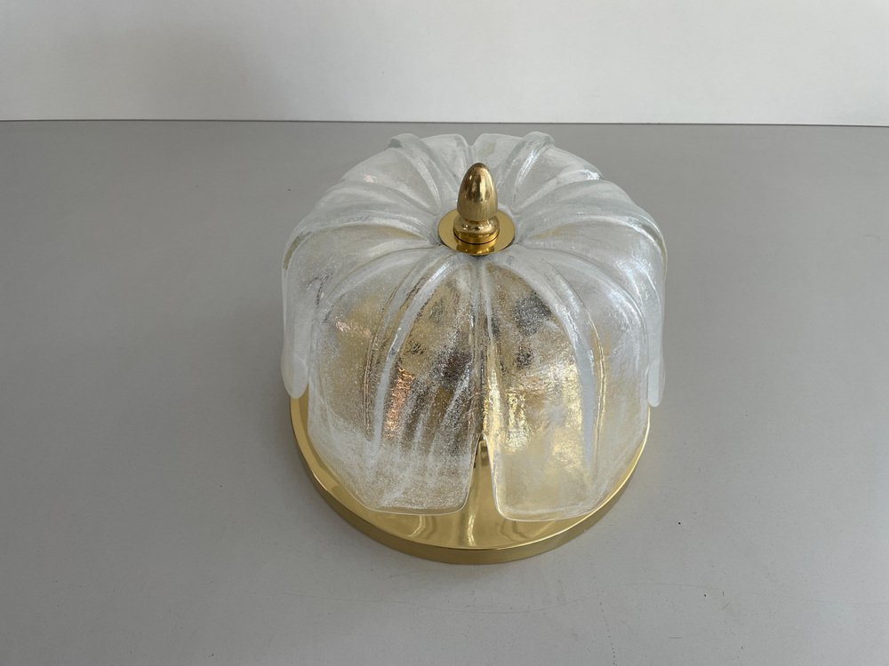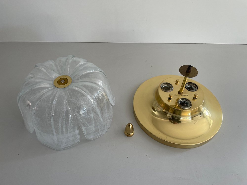 Glass and Brass Flower Flush Mount attributed to Limburg, Germany, 1960s