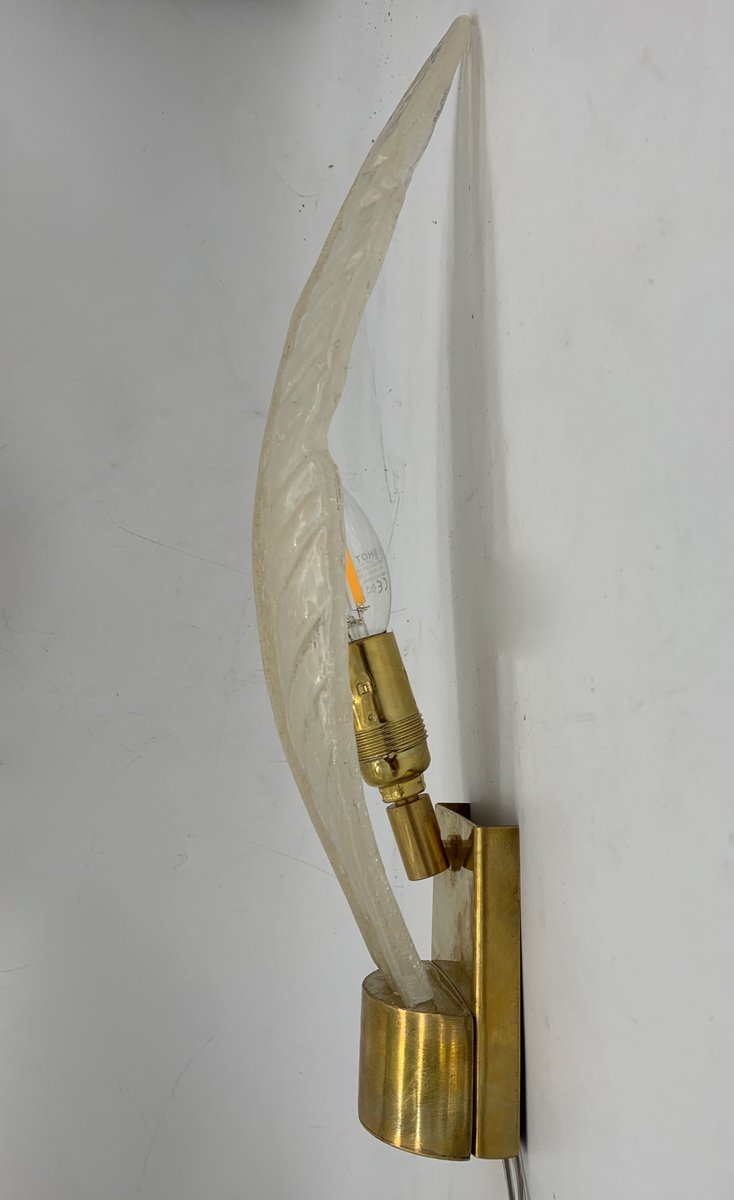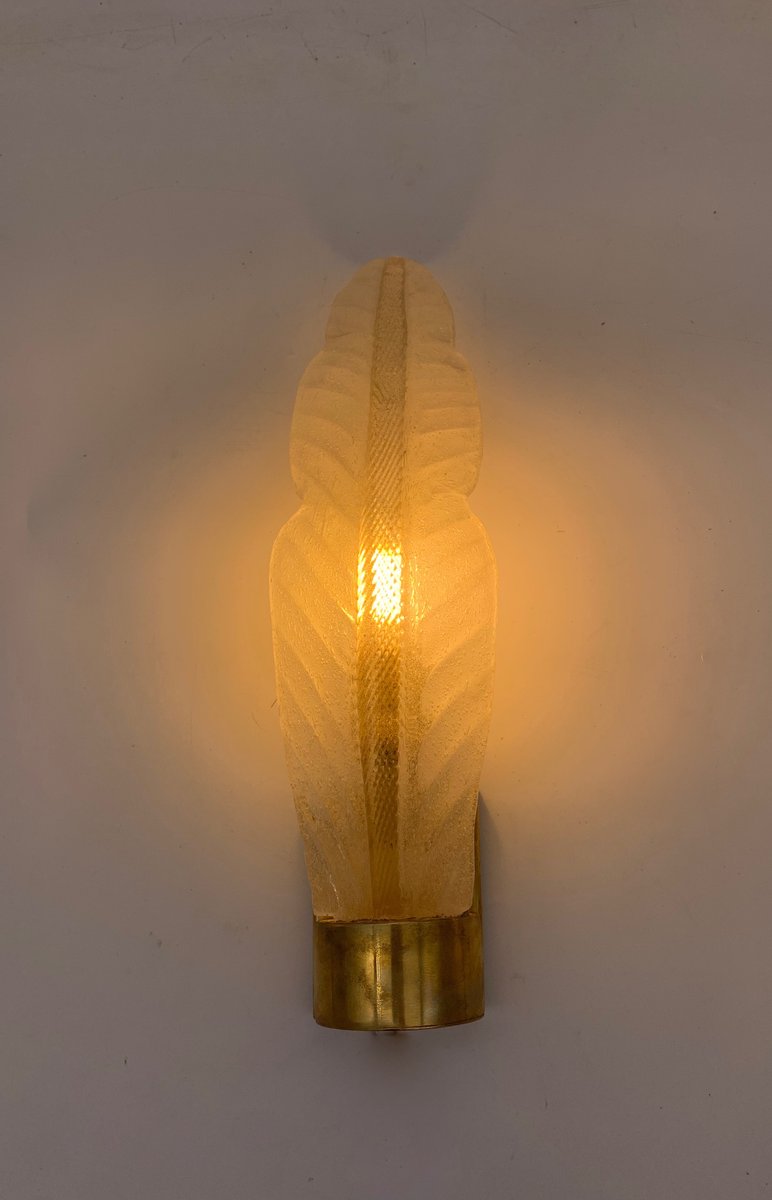 Glass and Gilt Leaf Wall Lamp attributed to Barovier, 1960