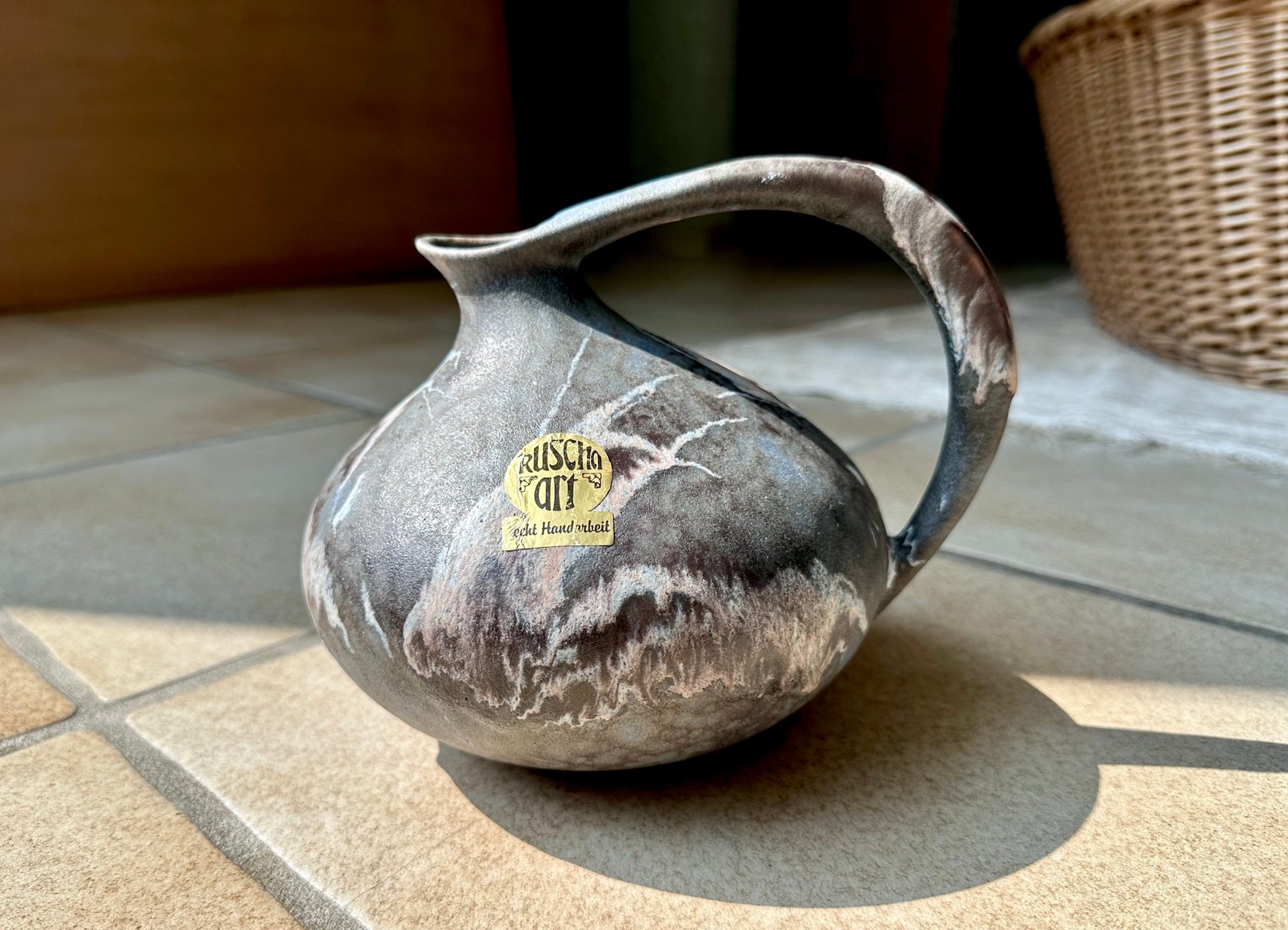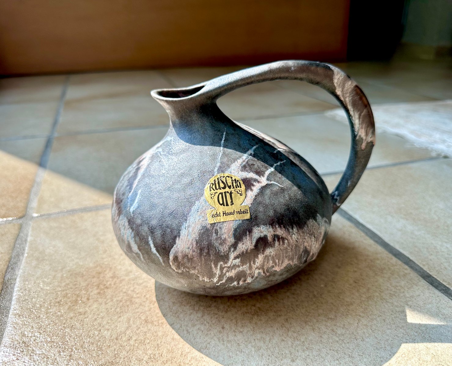 Glazed Ceramic Model No. 313 Art Jug Vase with Marbled Finish by Kurt Tschörner for Ruscha, West-Germany, 1960s