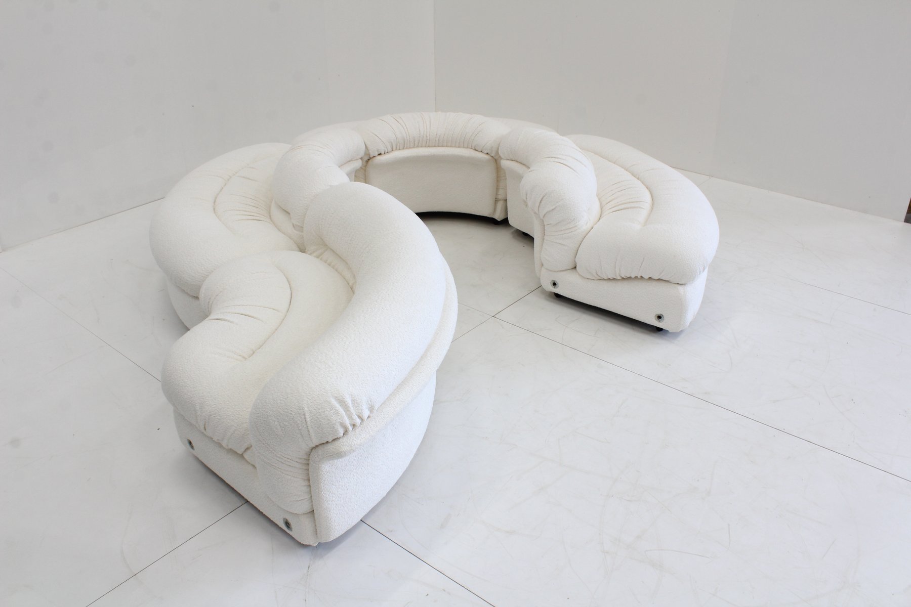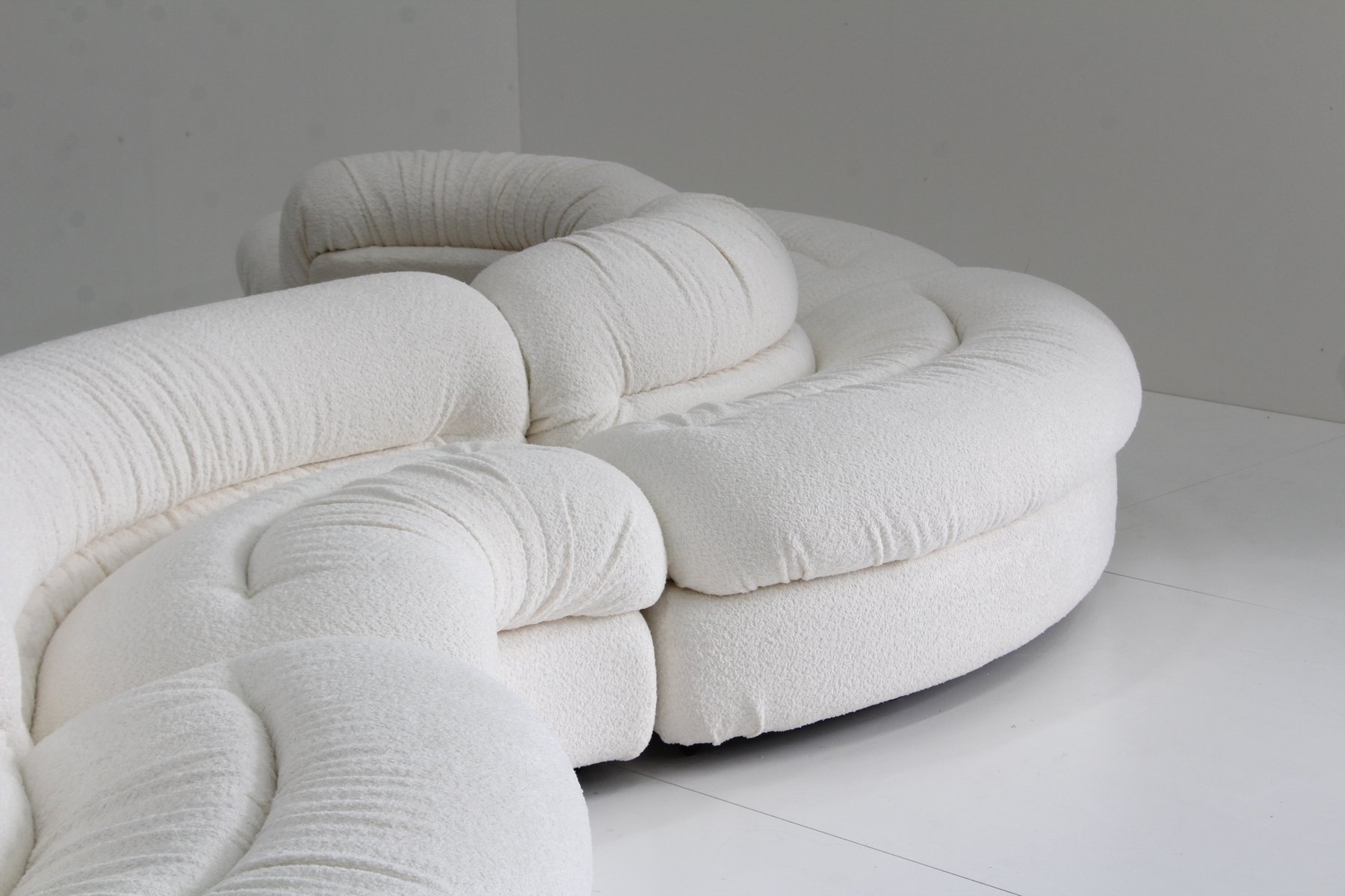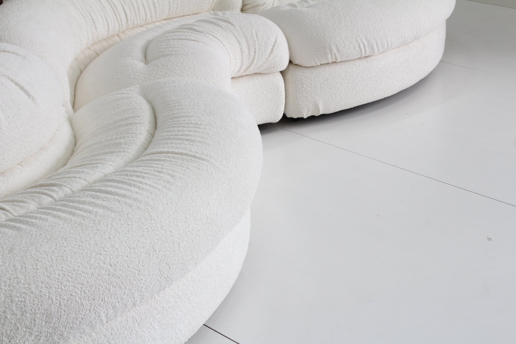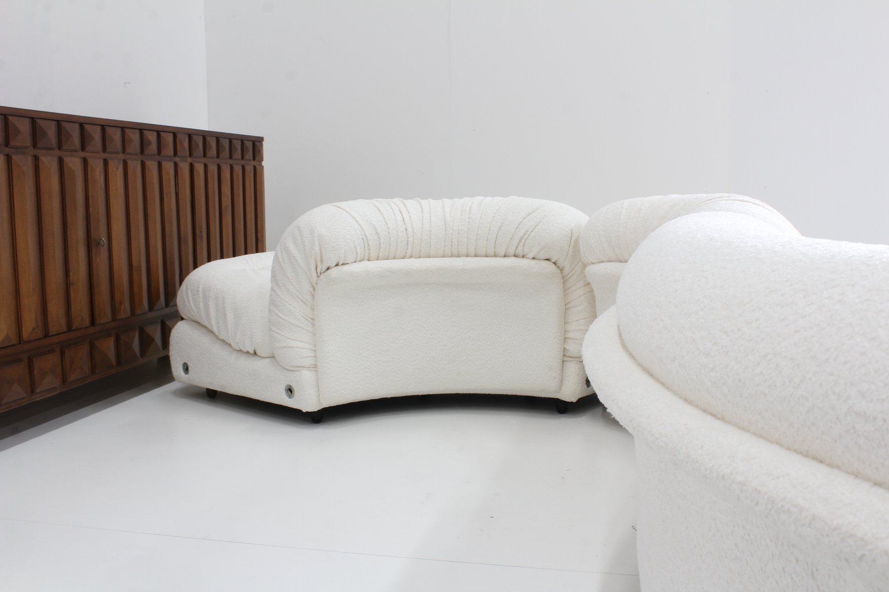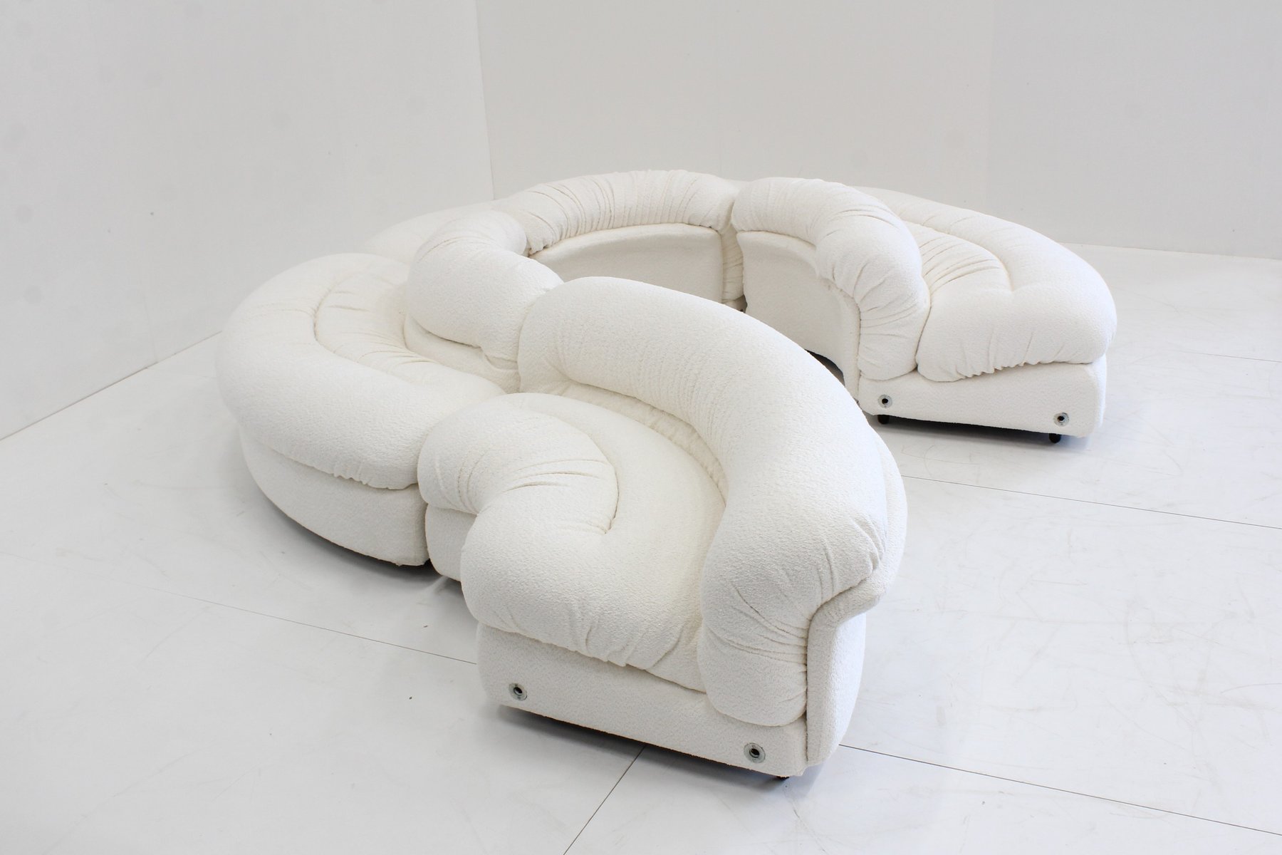 Grandangolo Curved Modular Sofa in White Boucle by Ammannati Vitelli for Rossi Di Albizzate, 1960s, Set of 4