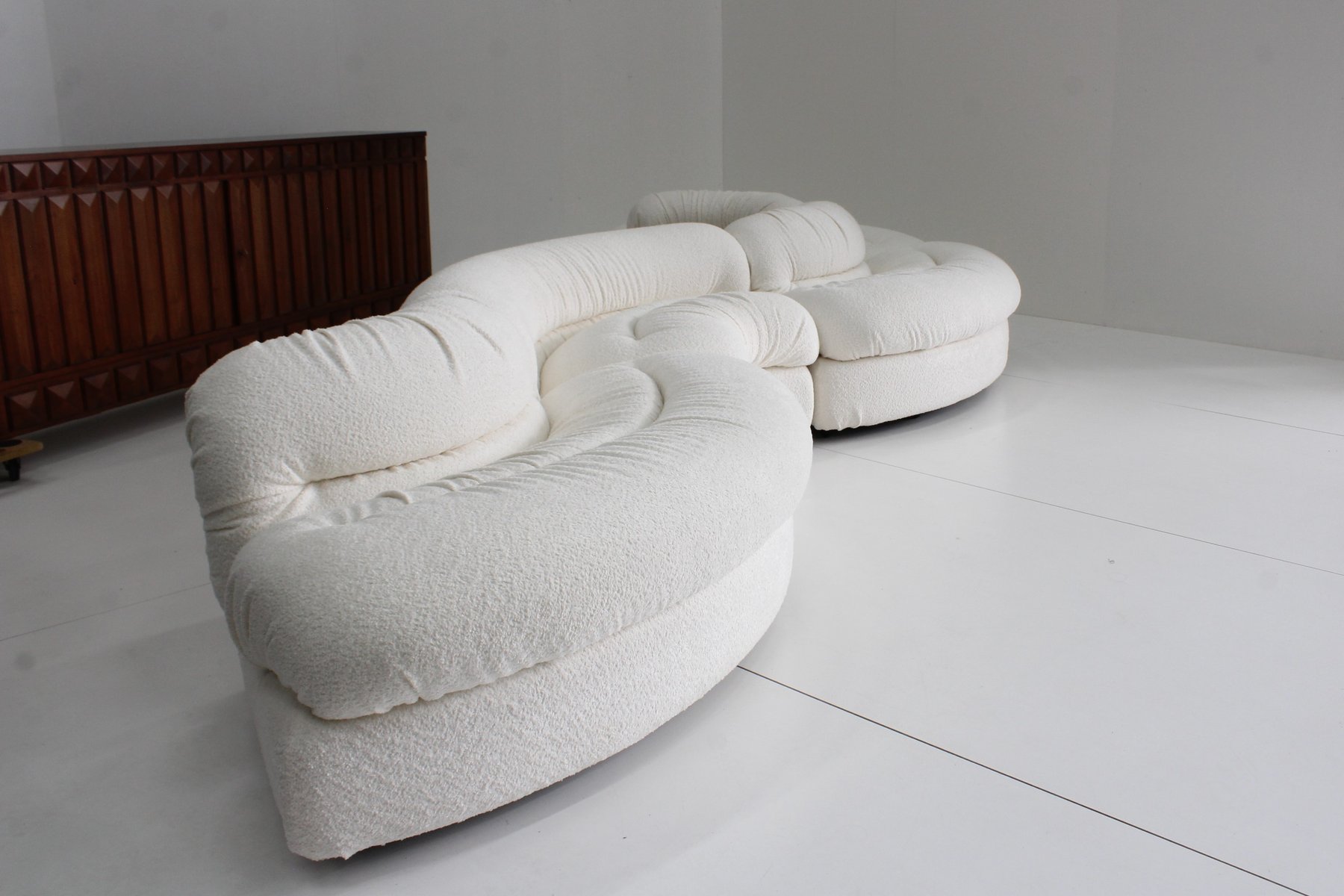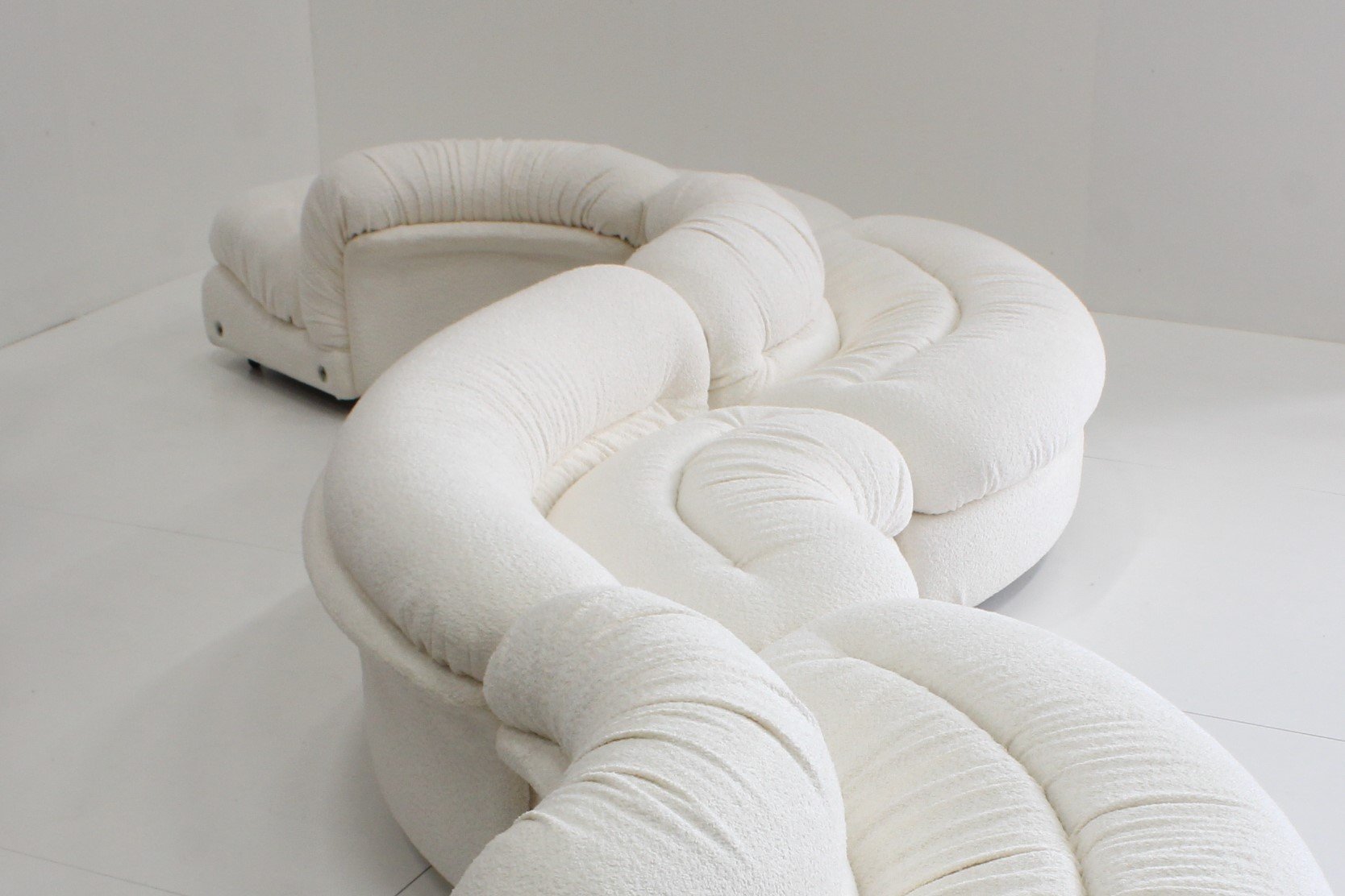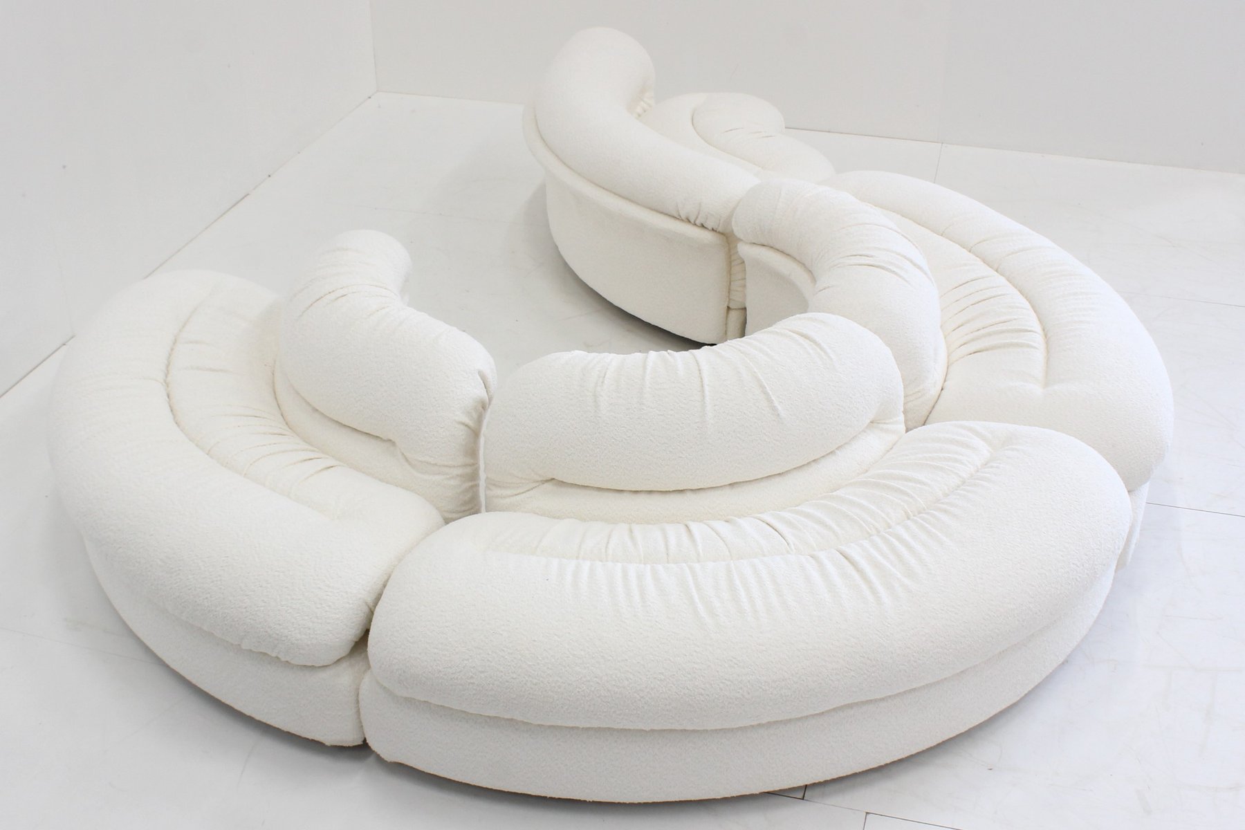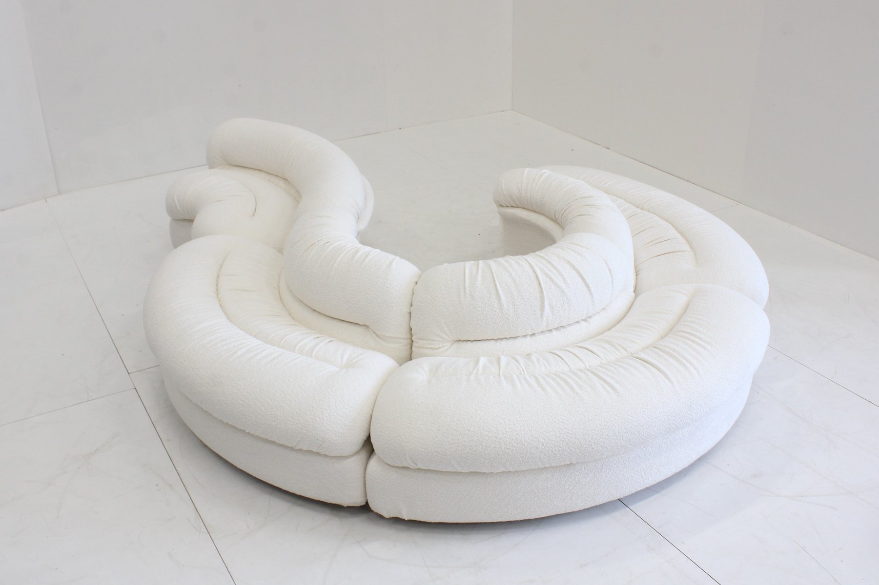 Grandangolo Curved Modular Sofa in White Boucle by Ammannati Vitelli for Rossi Di Albizzate, 1960s, Set of 4