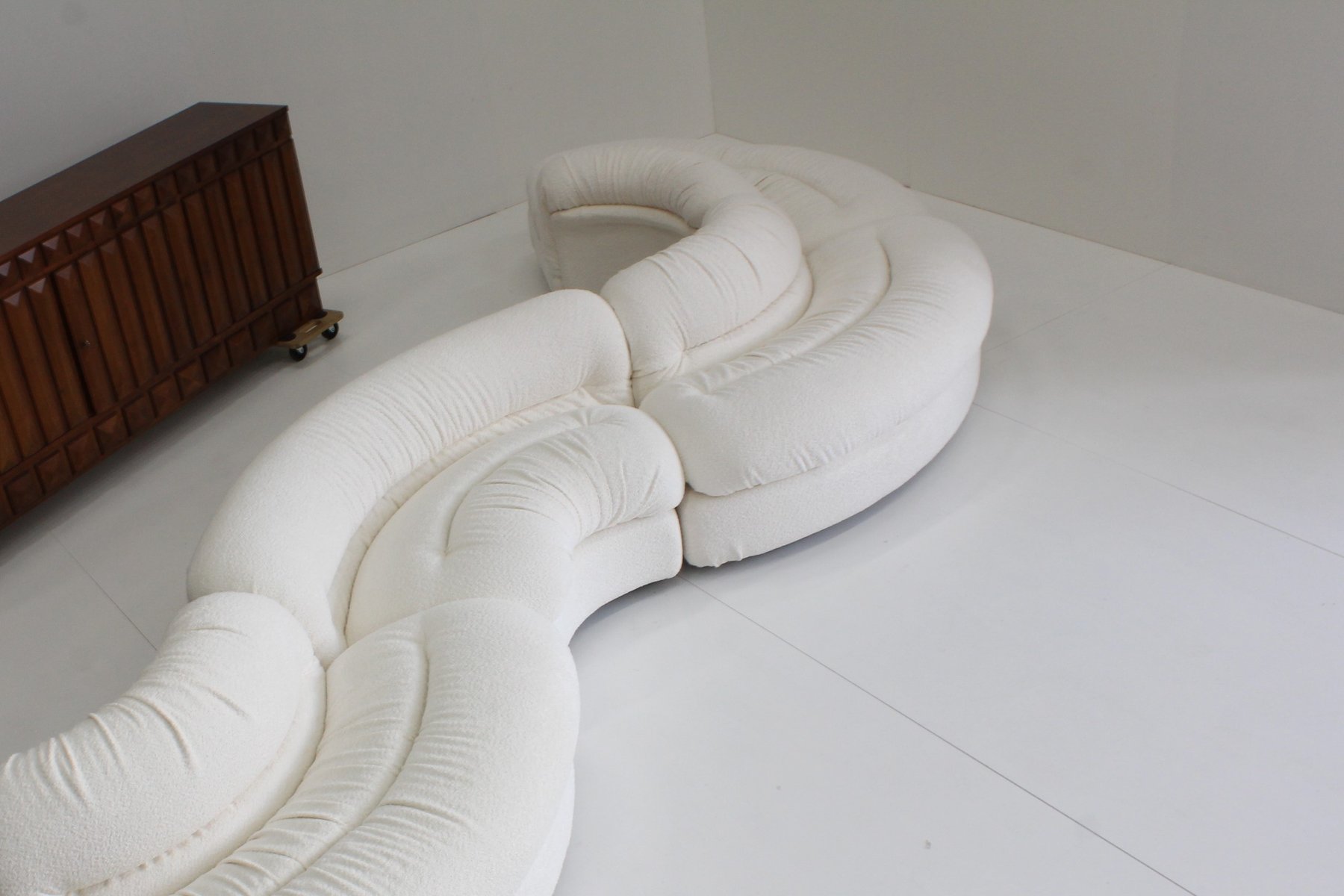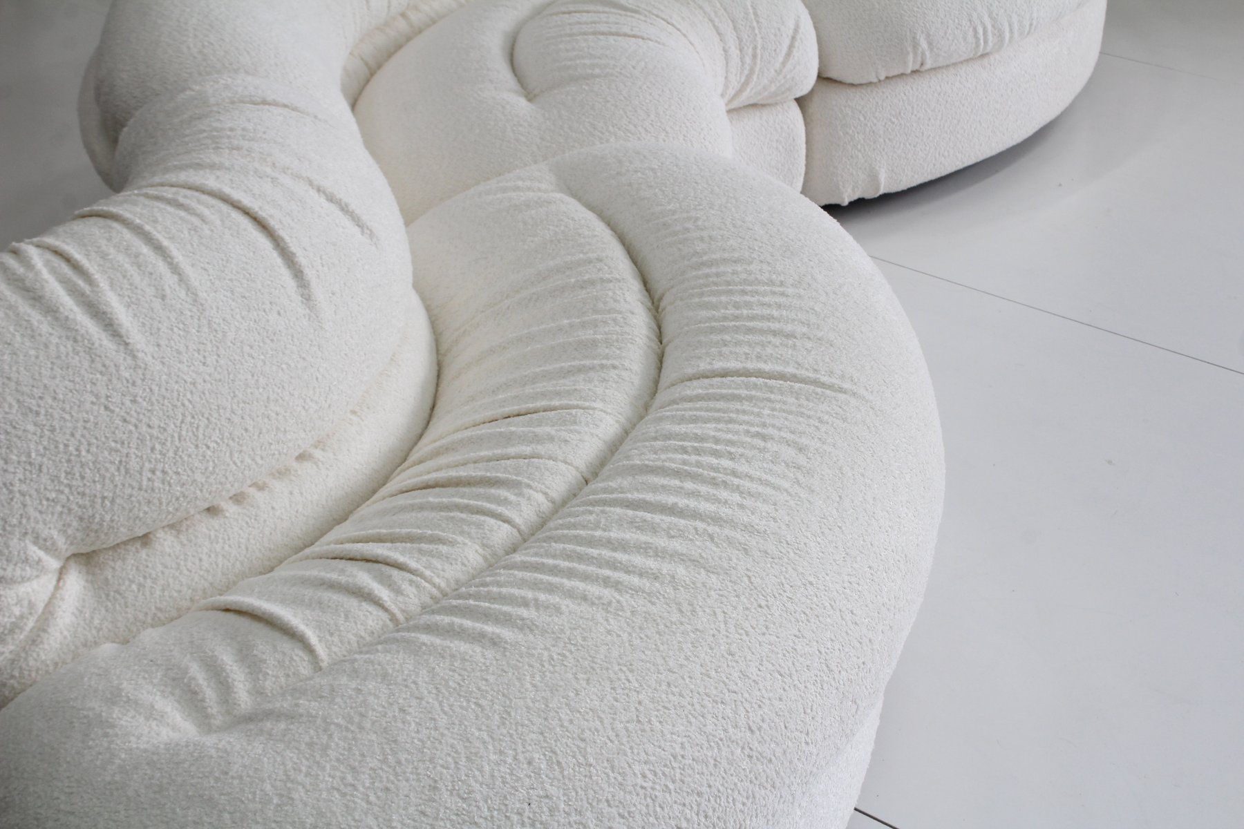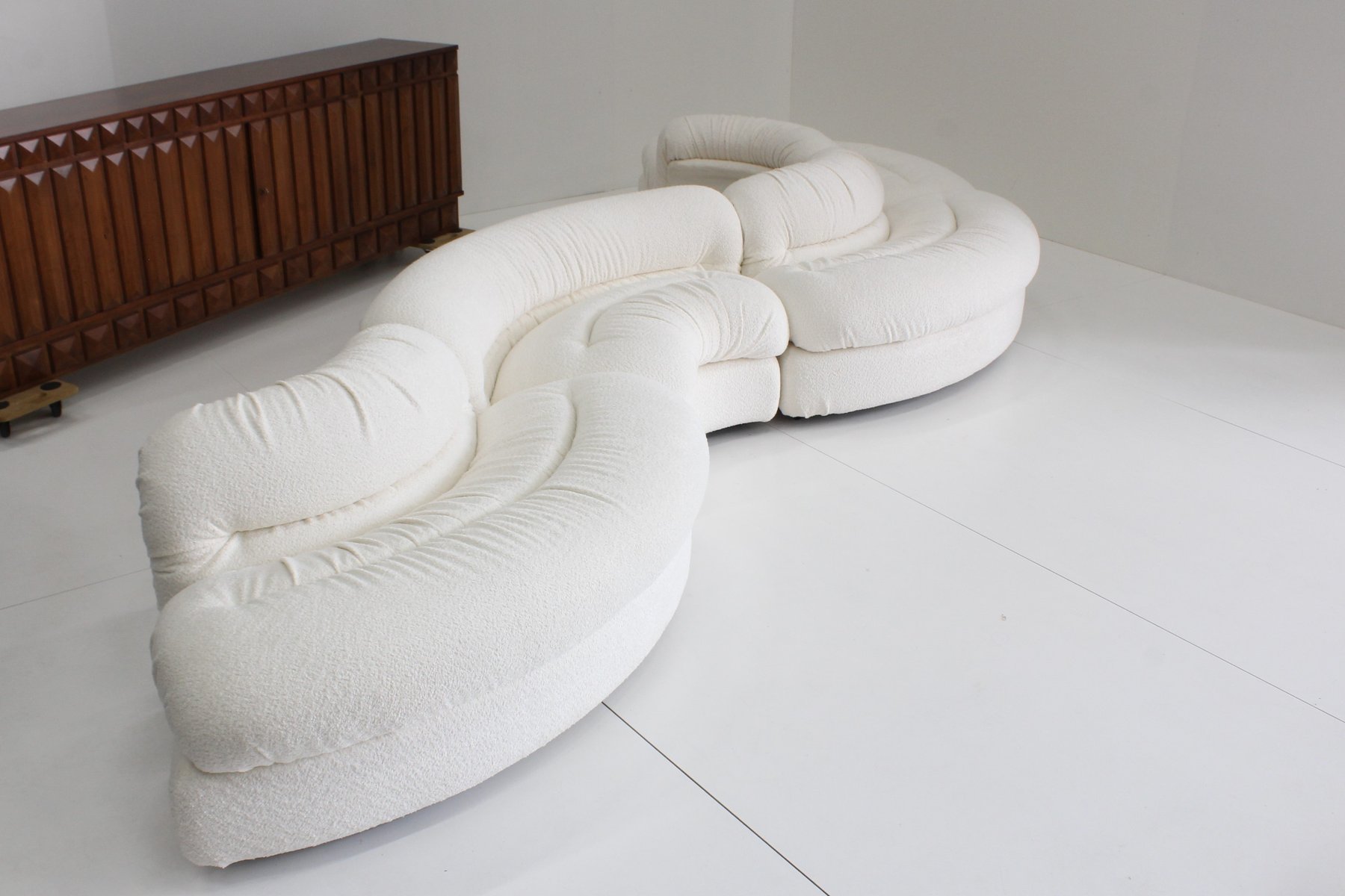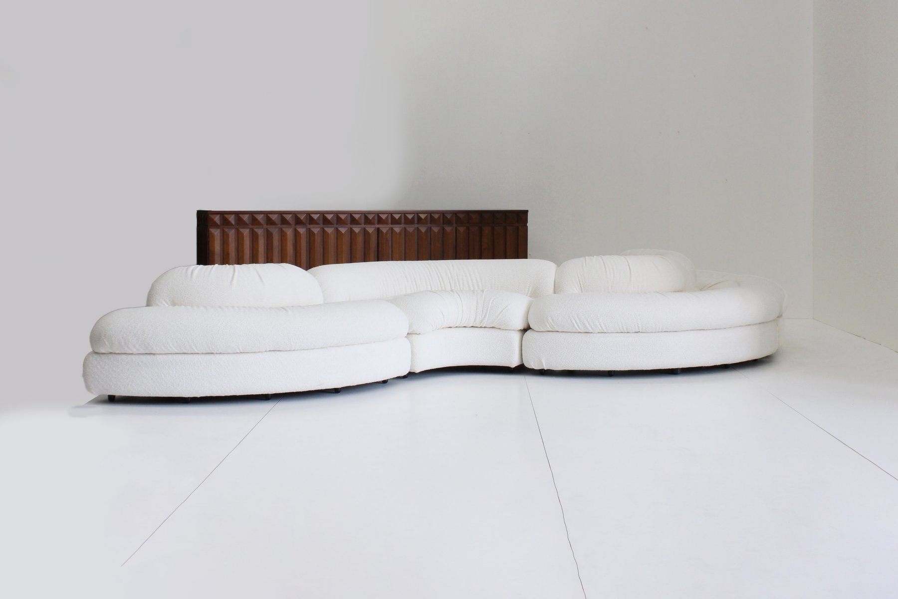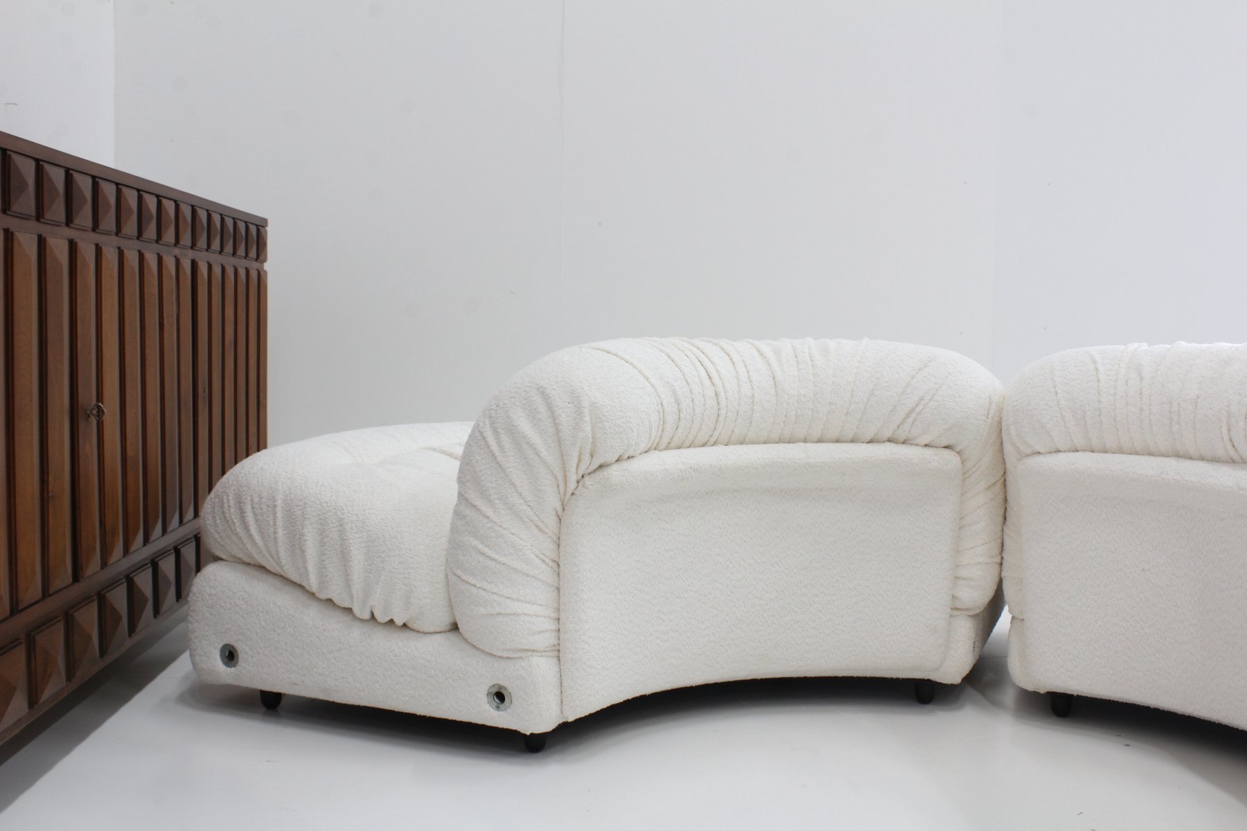 Grandangolo Curved Modular Sofa in White Boucle by Ammannati Vitelli for Rossi Di Albizzate, 1960s, Set of 4