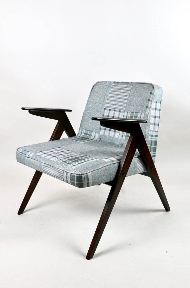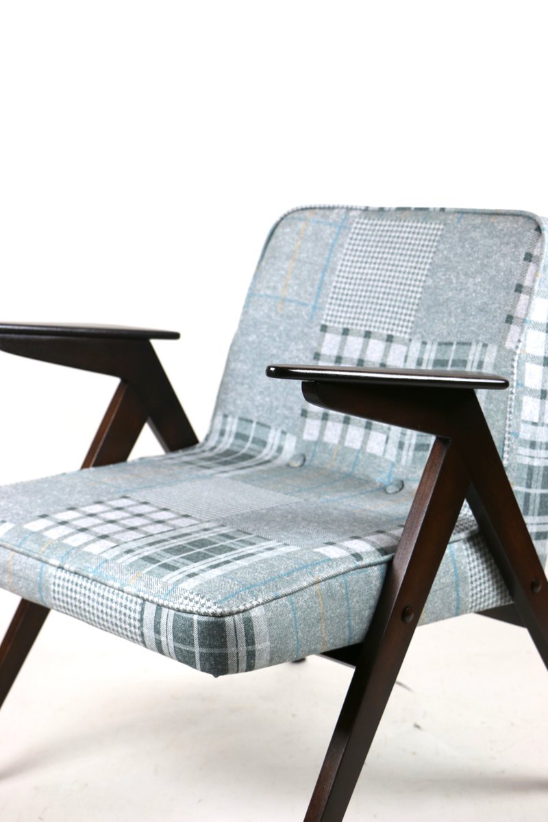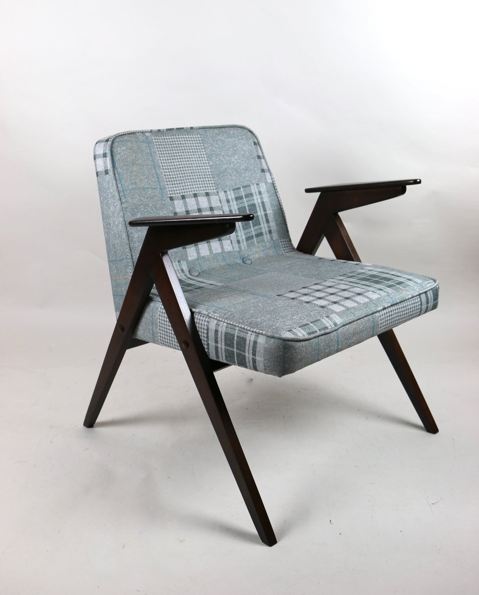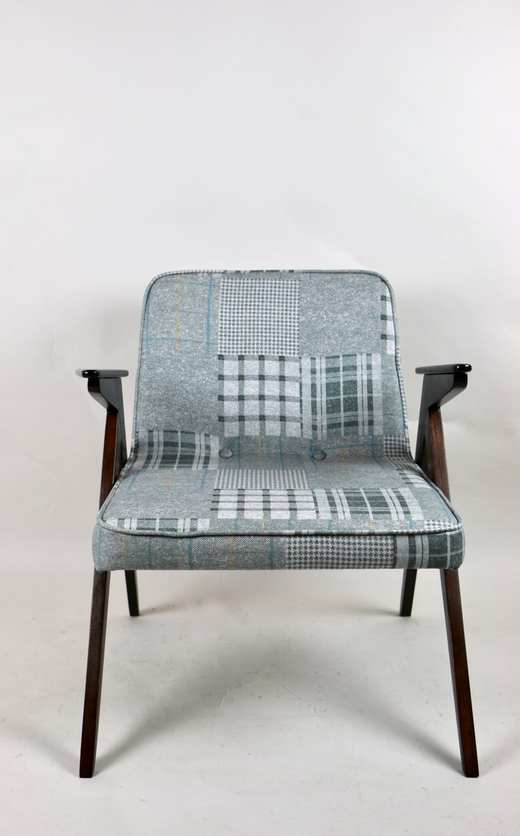 Grey-Blue Chequered Bunny Armchair by Józef Chierowski, 1970s