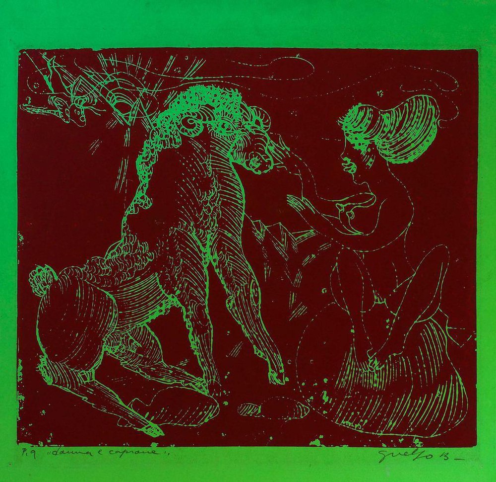 Guelfo Bianchini, Woman and Horse, Etching, 1970s