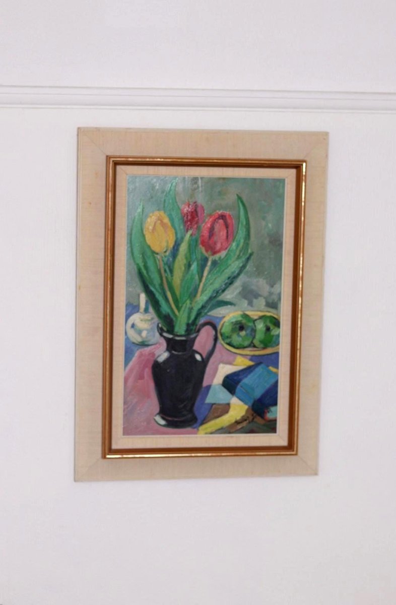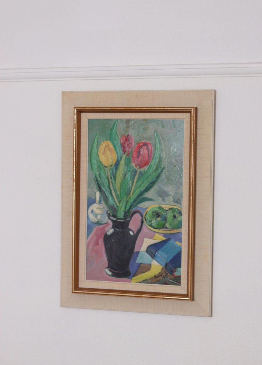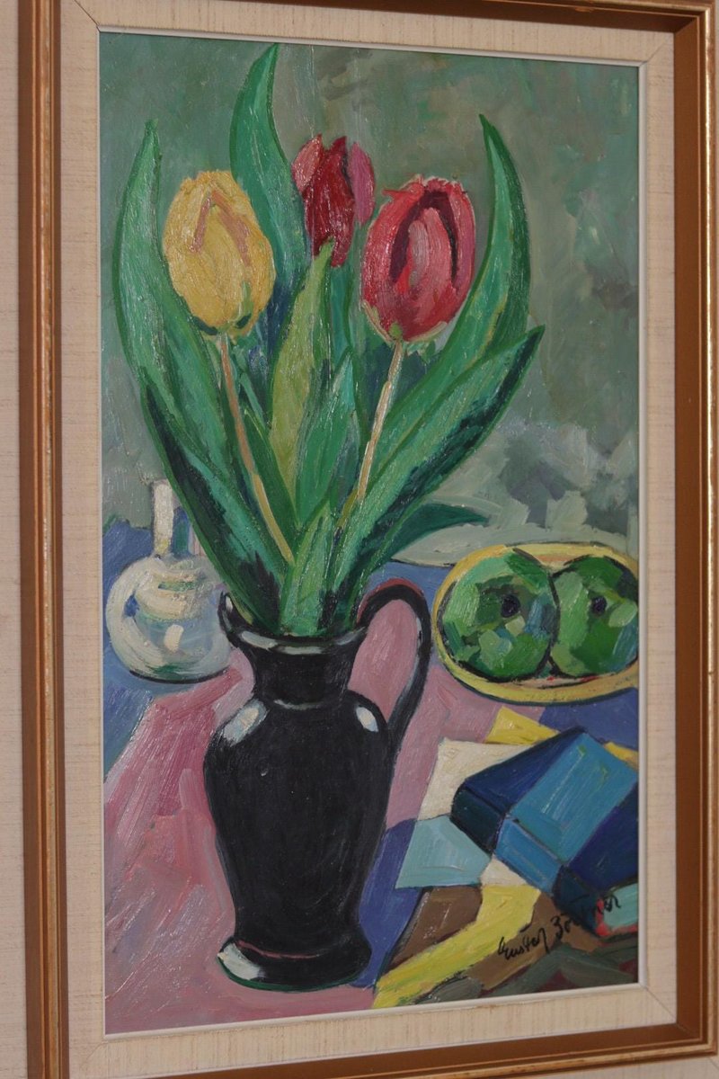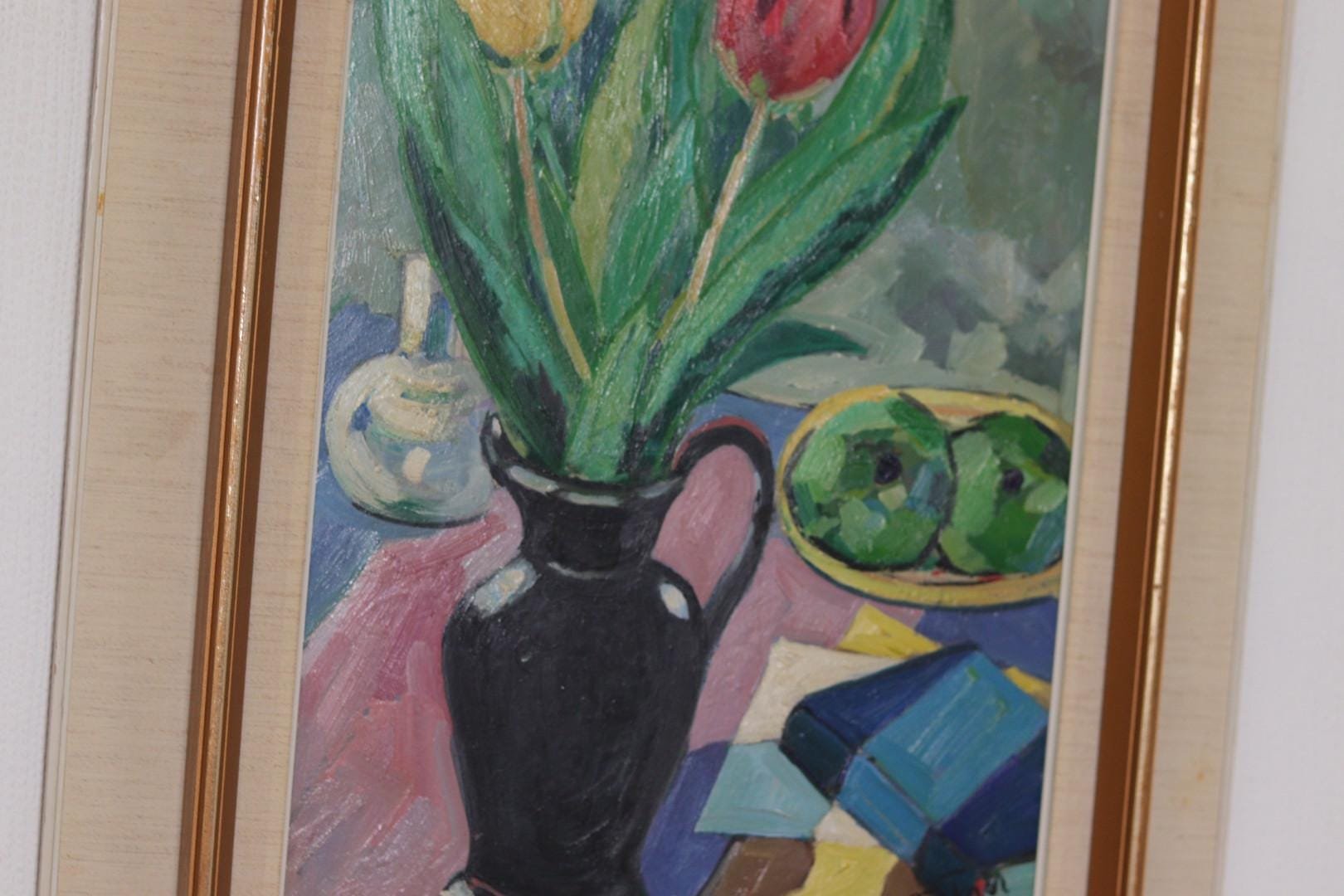 Gustaf Börtner, Tulips and Fruit, 1950s, Oil on Panel, Framed