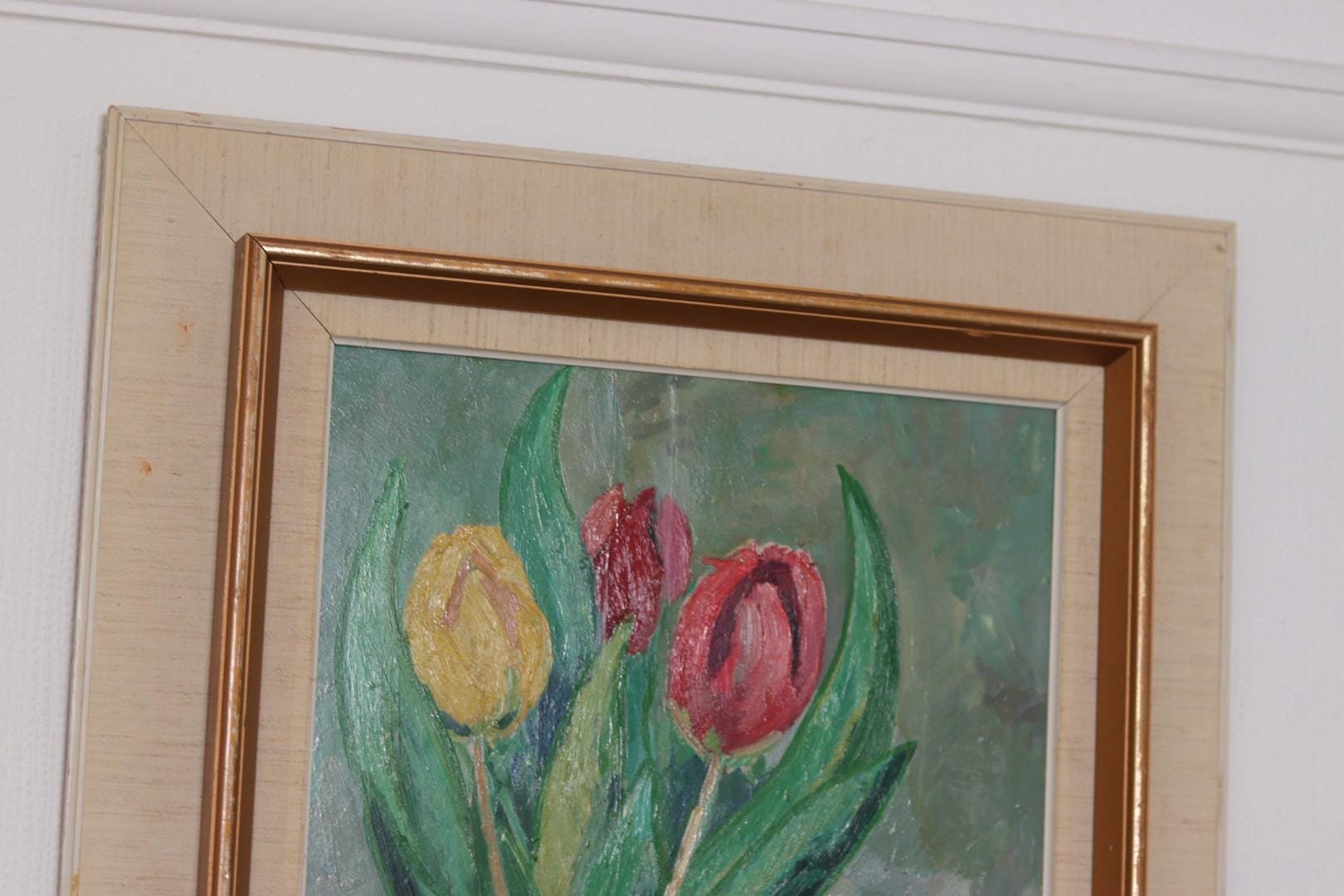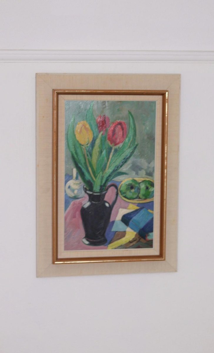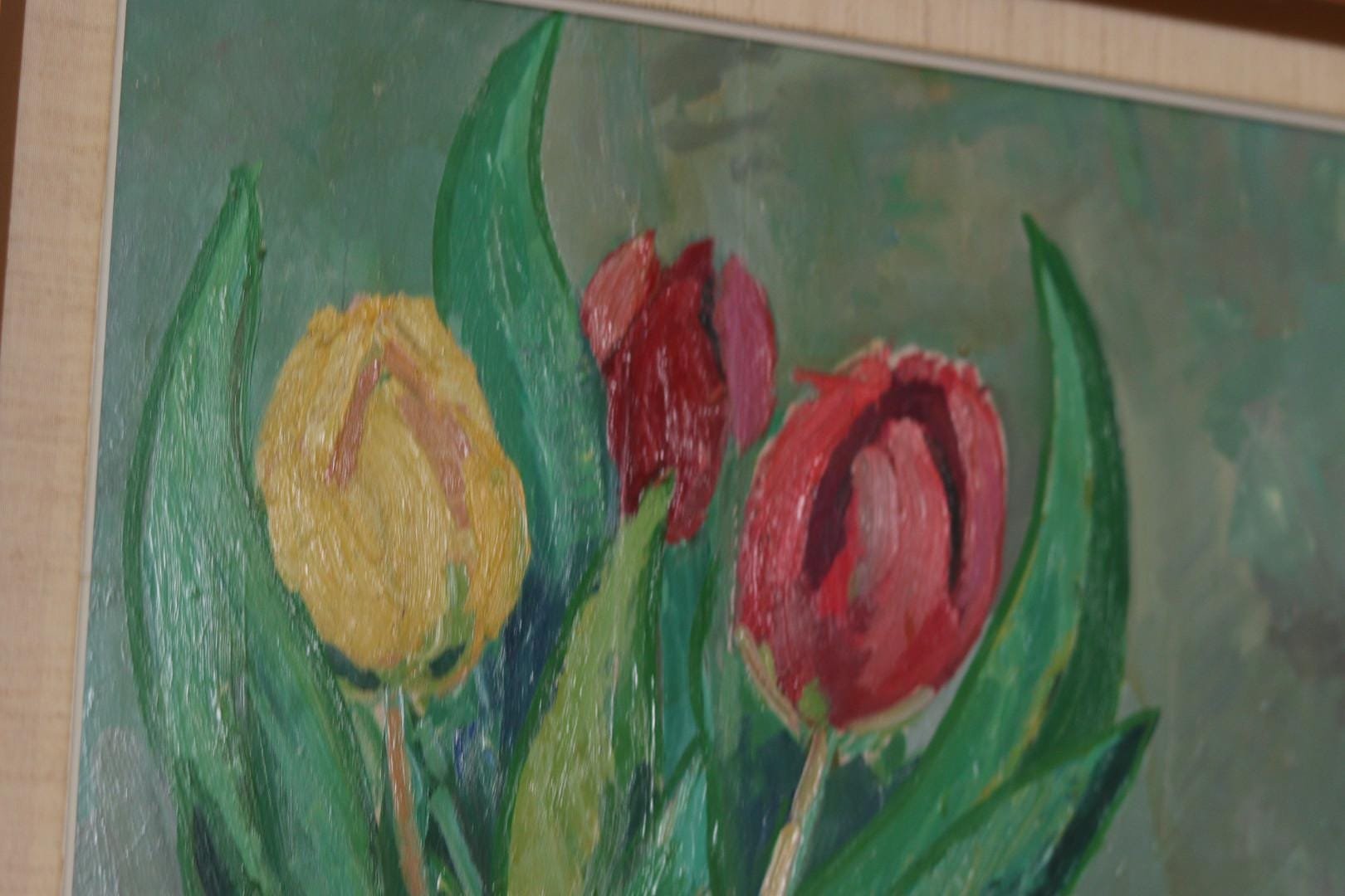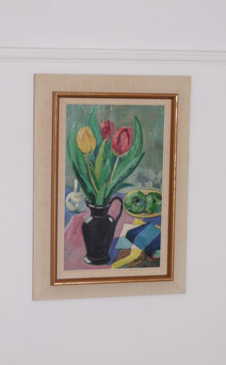 Gustaf Börtner, Tulips and Fruit, 1950s, Oil on Panel, Framed