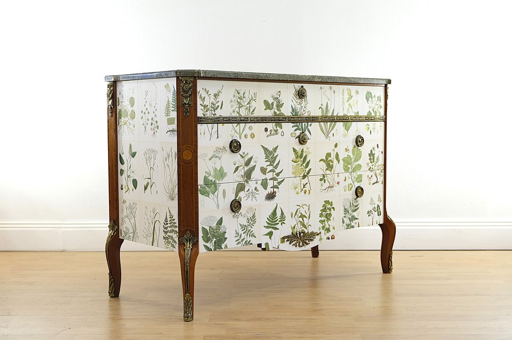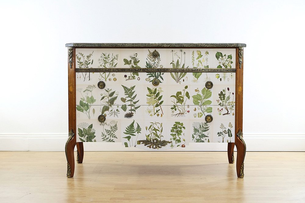 Gustavian Chest with Nordens Flora by C.A.M Lindman, Sweden, 1940s