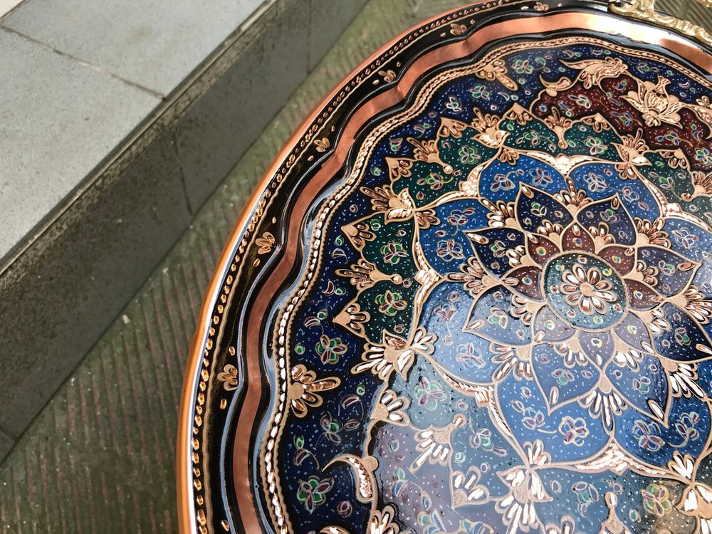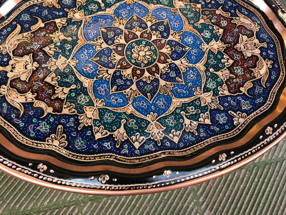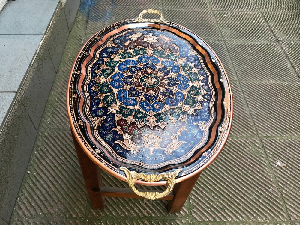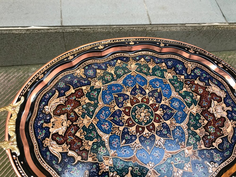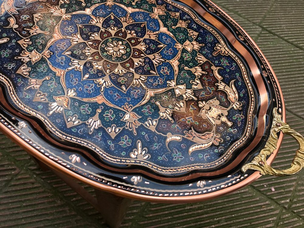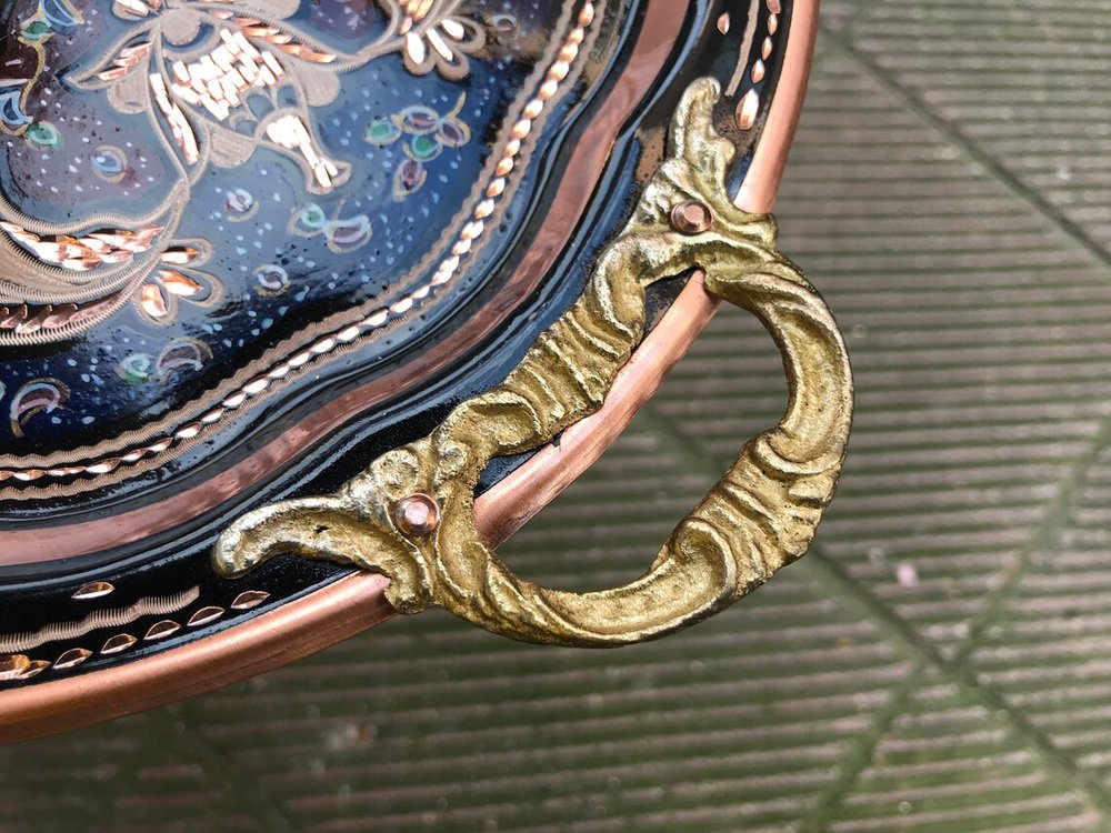 Hand Carved Copper Kitchen Tray with Handles
