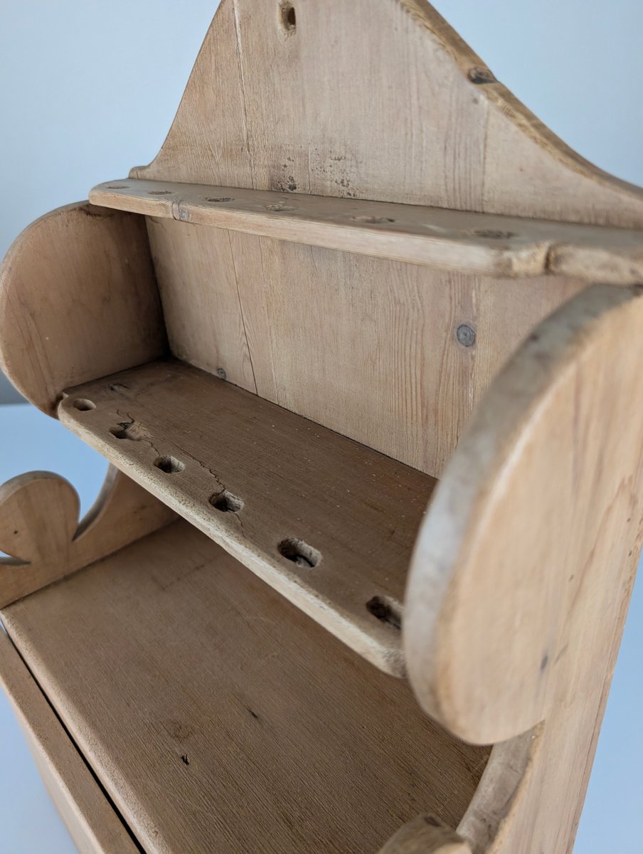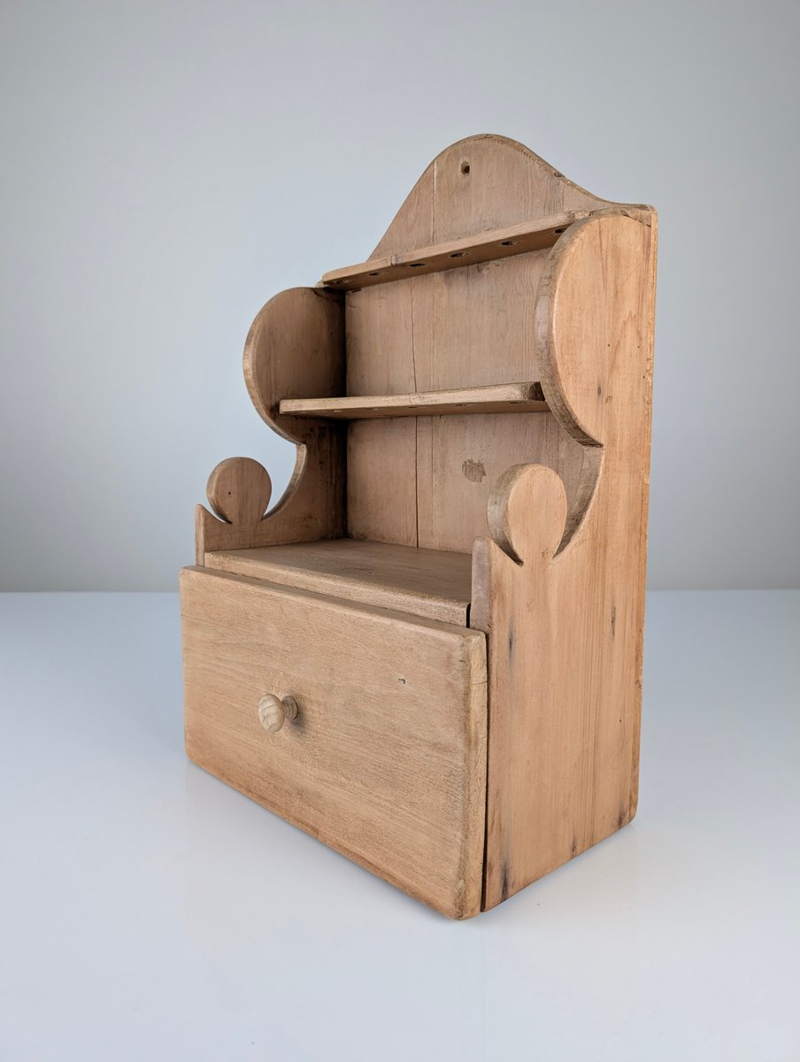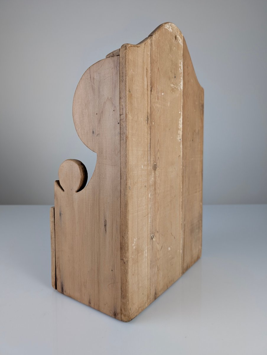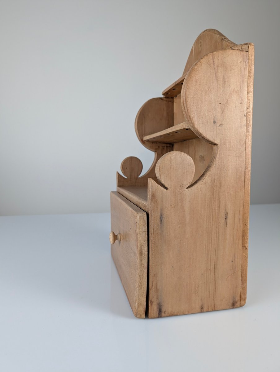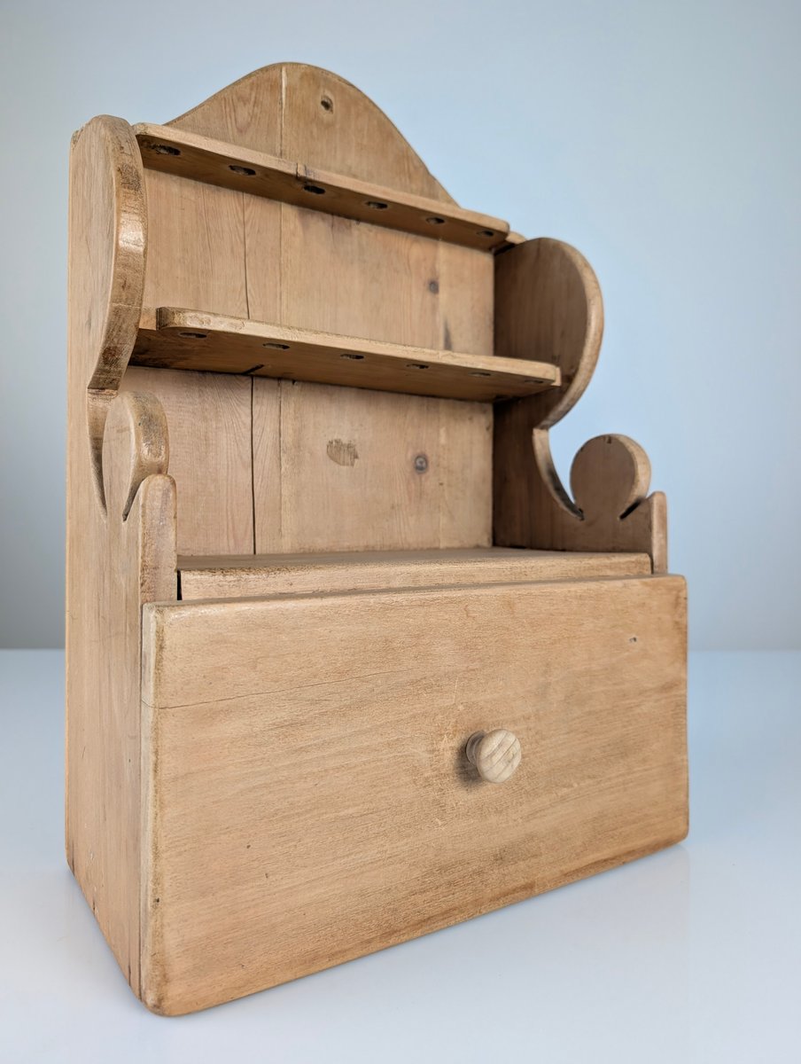 Hand-Carved Folk Art Pine Cutlery Rack with Drawer, 1950s