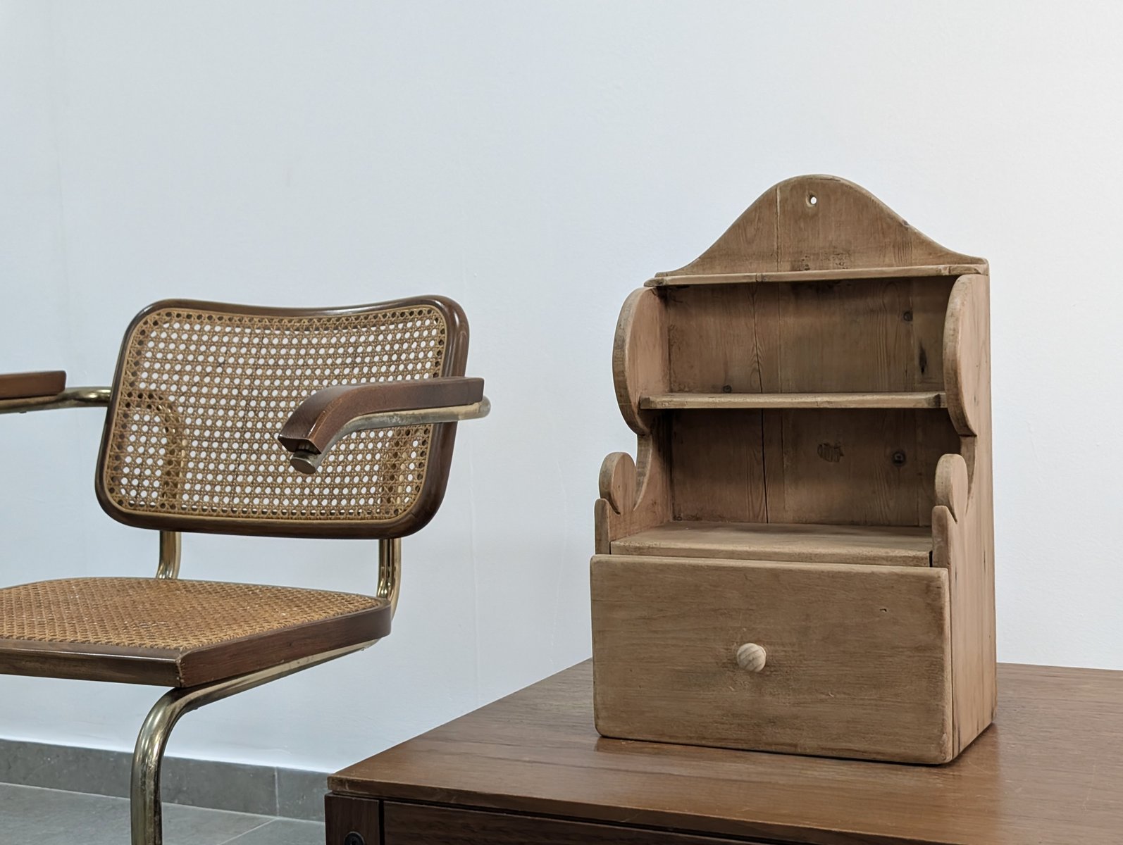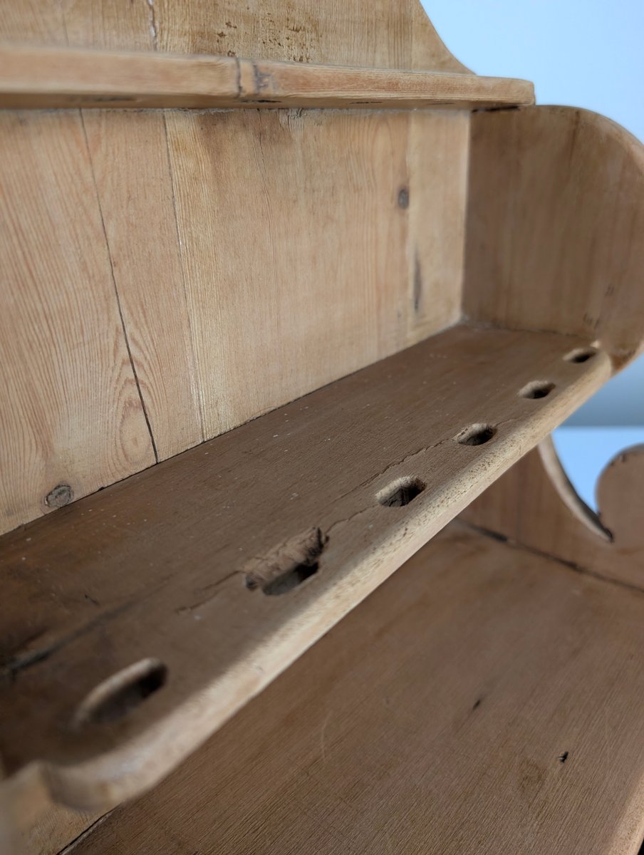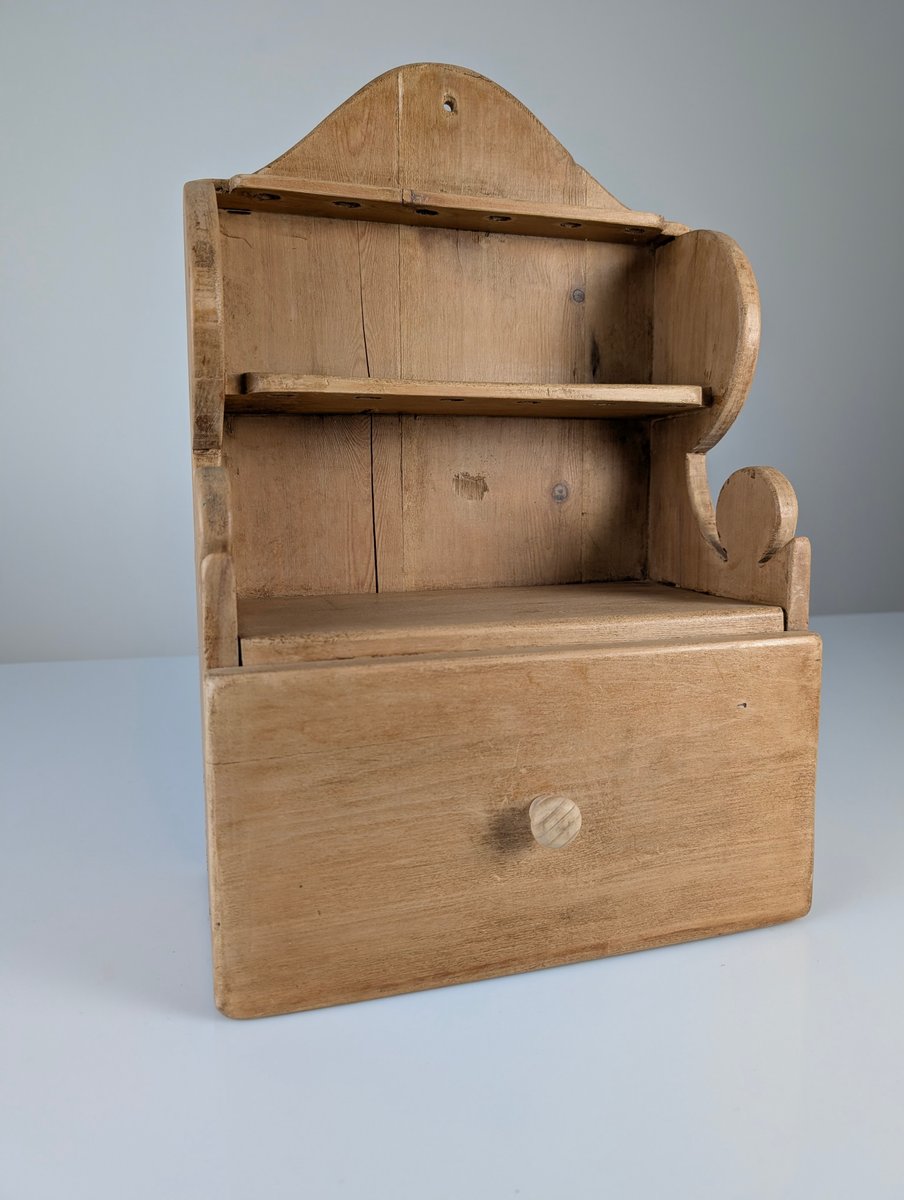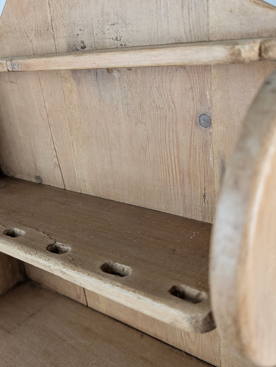 Hand-Carved Folk Art Pine Cutlery Rack with Drawer, 1950s