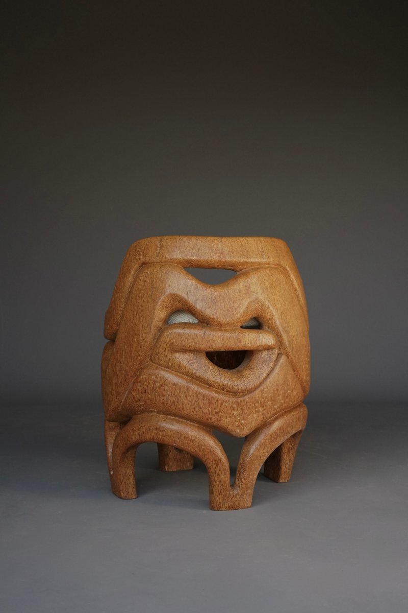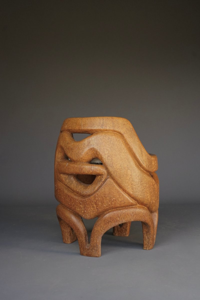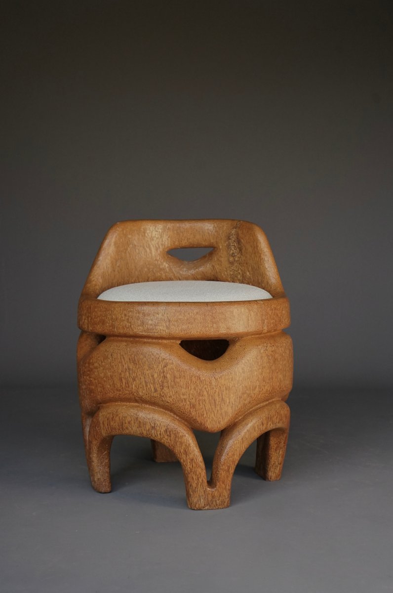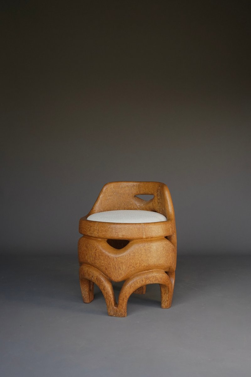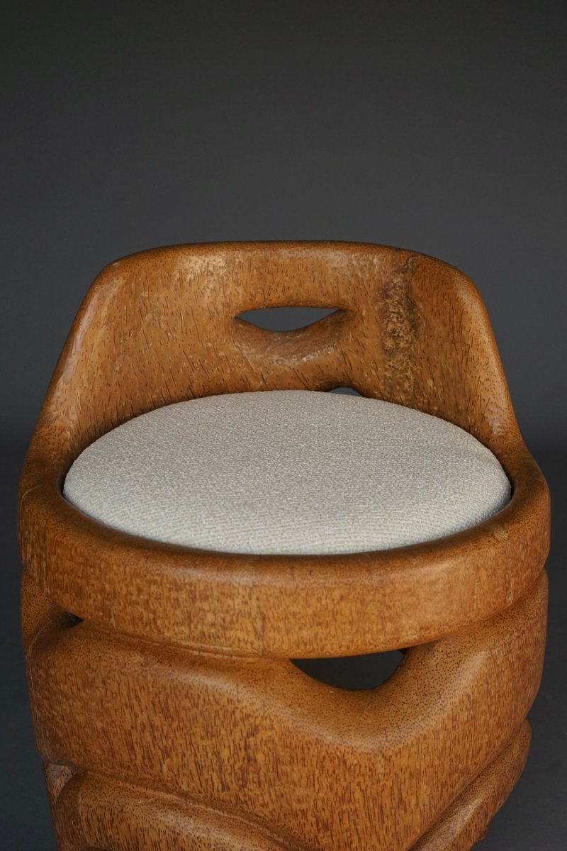 Hand-Carved Palm Wood Side Chair, 1970s