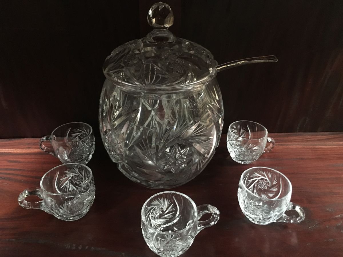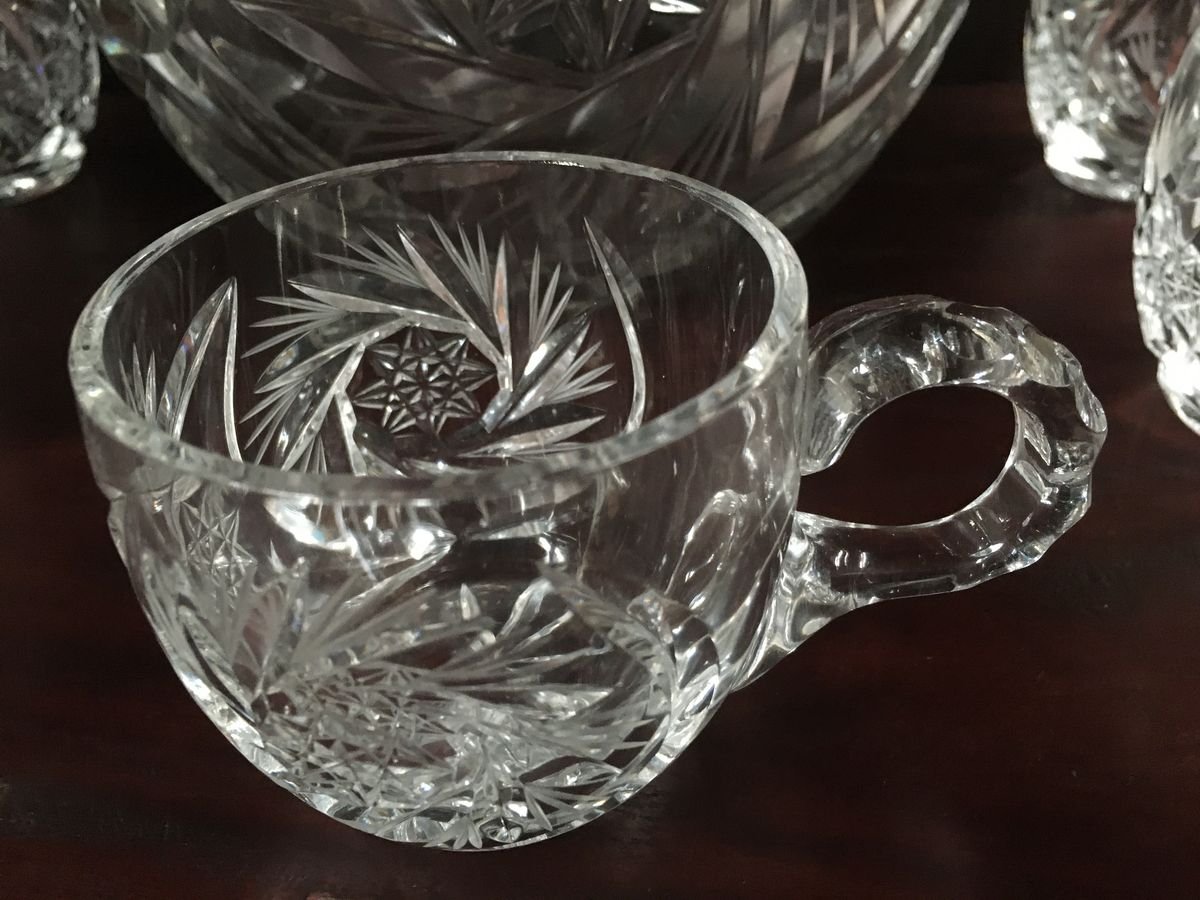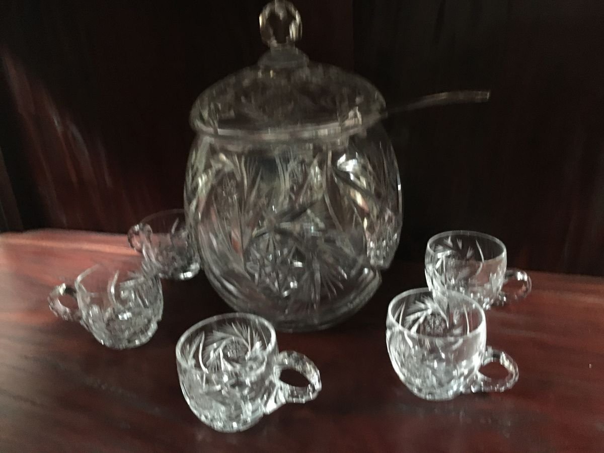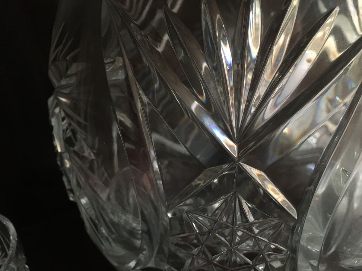 Hand-Cut Crystal Vase Set with Lid and 5 Cups, 1970s, Set of 8