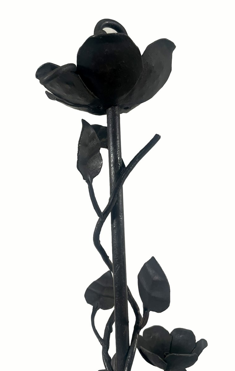 Handcrafted Wrought Iron Floral Candle Chandelier, 1990s