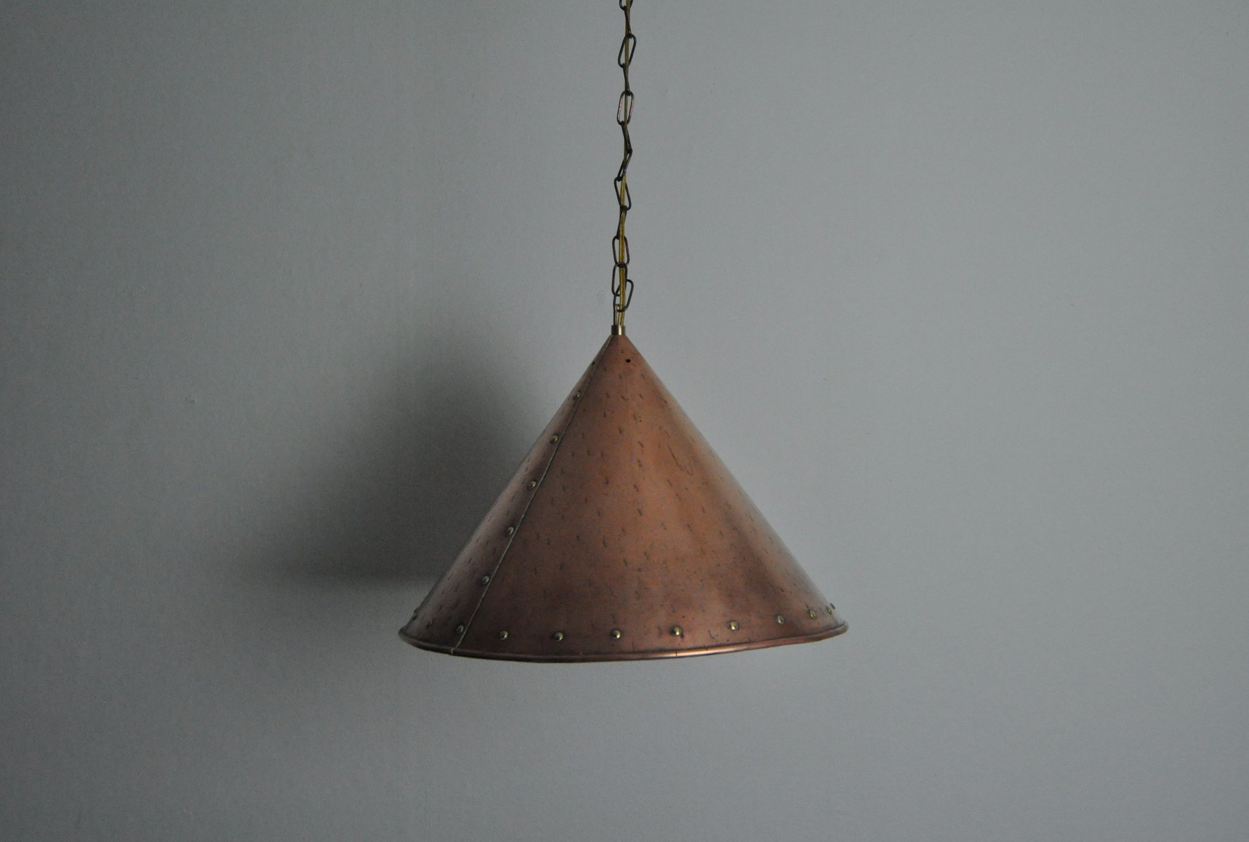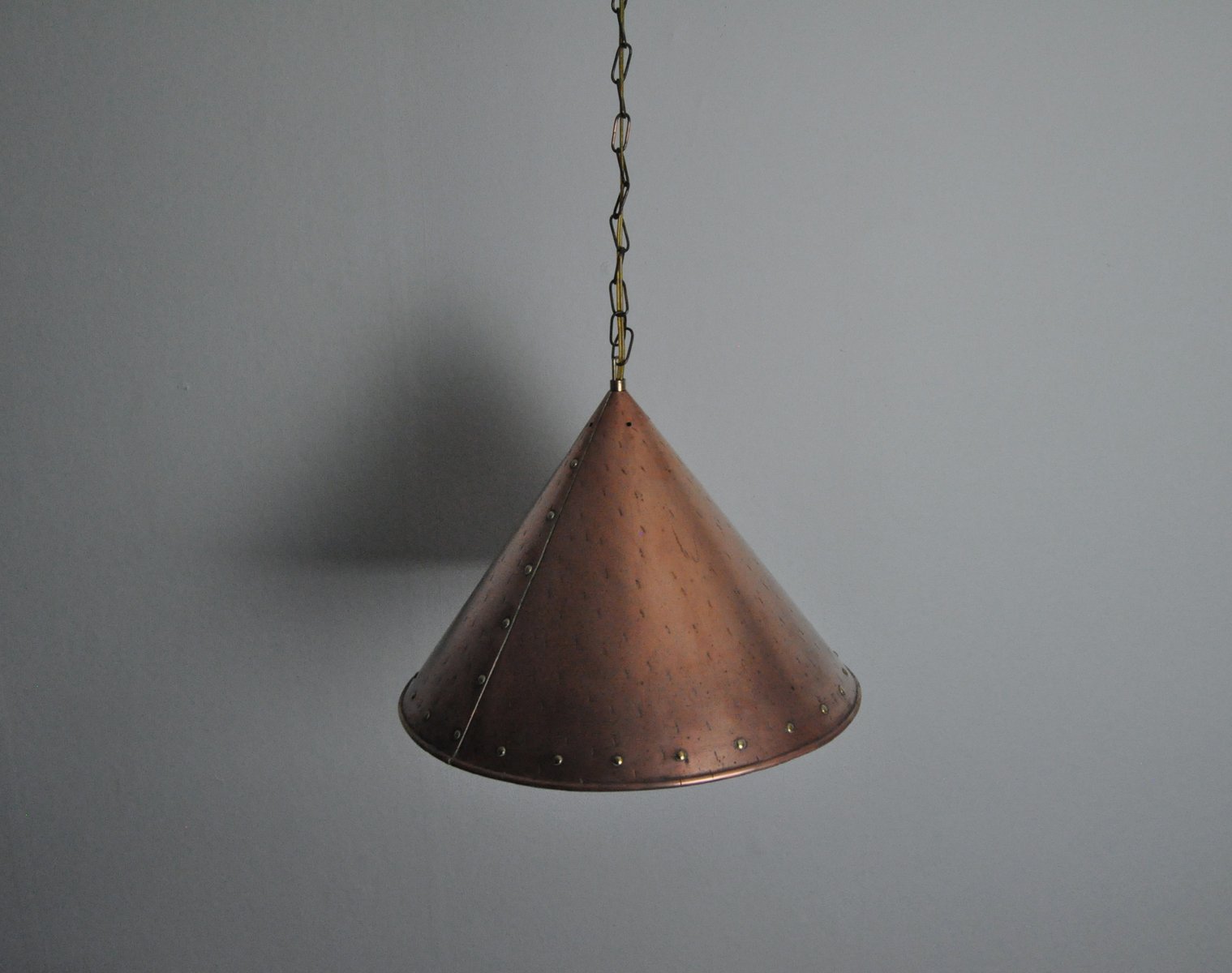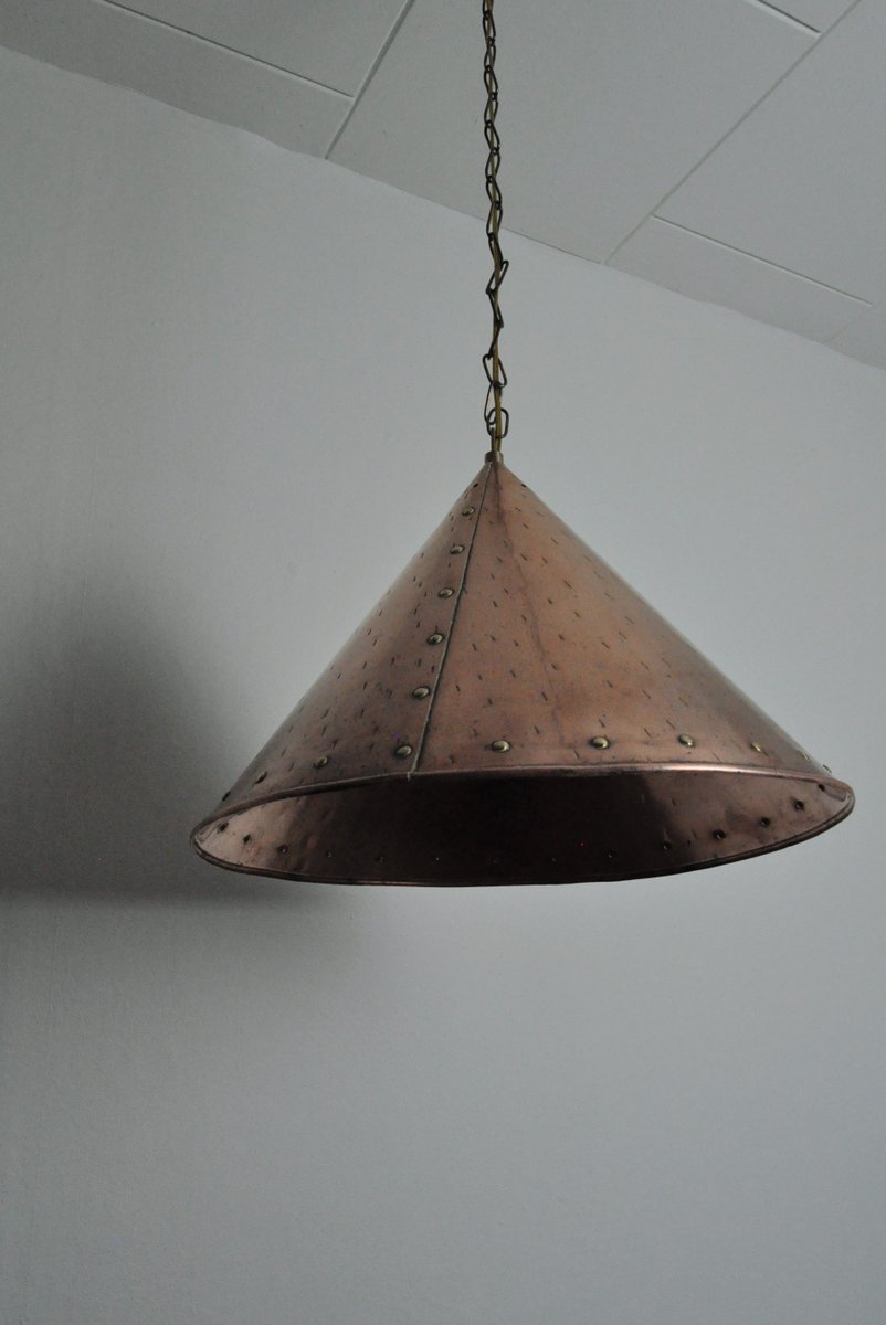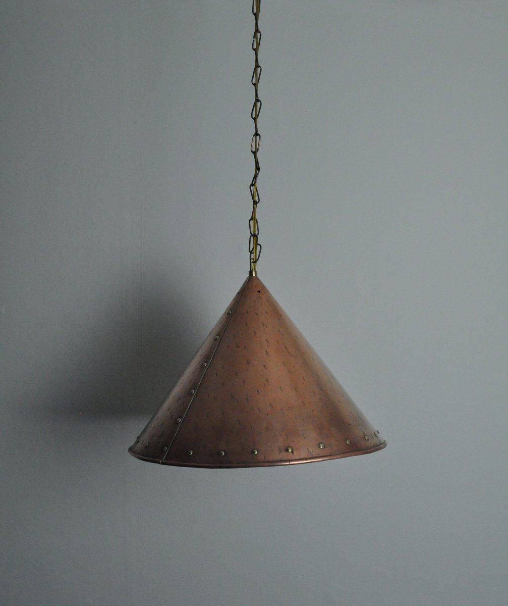 Handmade Cone-Shaped Copper Pendant, Denmark, 1970s