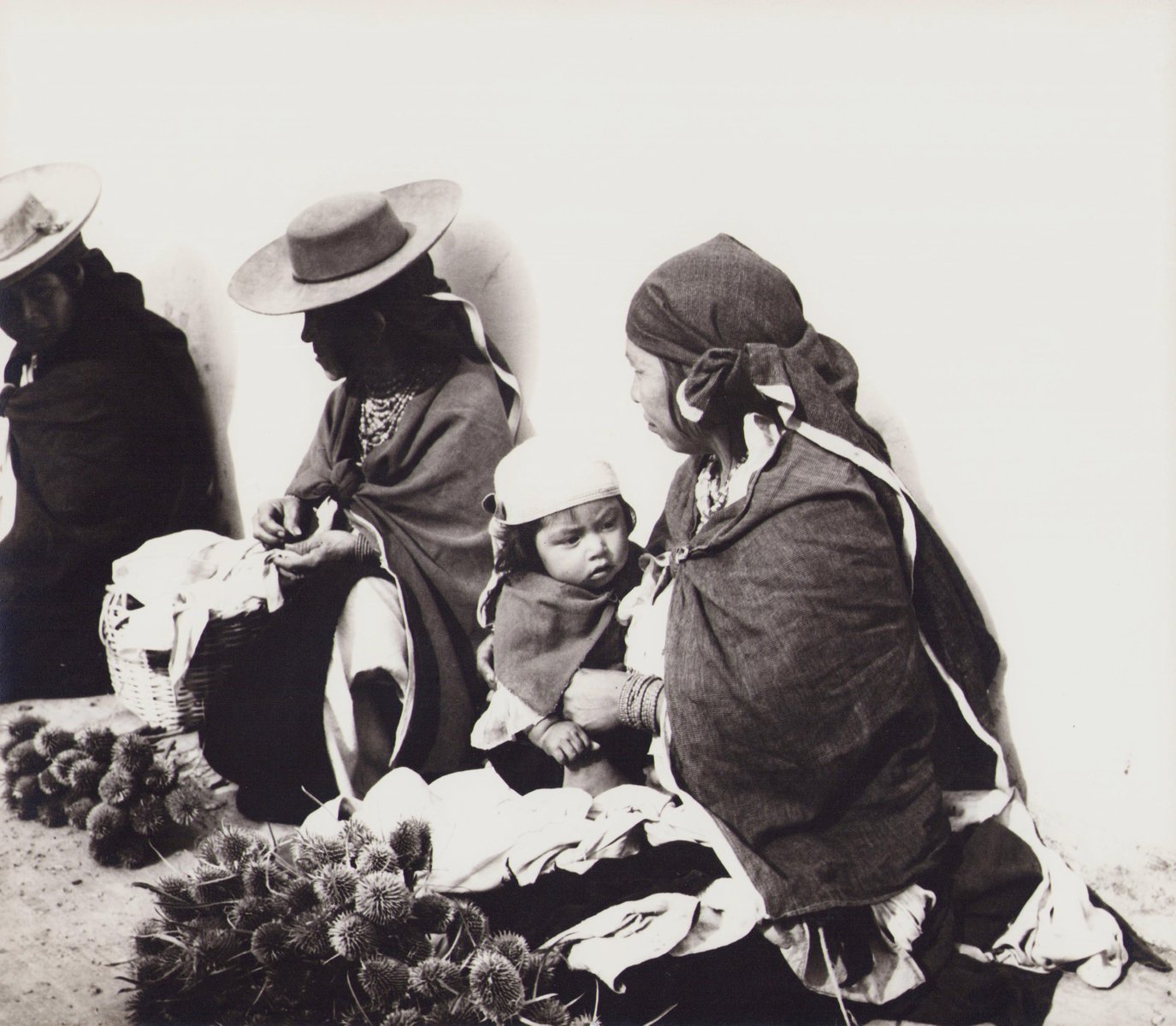 Hanna Seidel (1925 to 2005) lived and worked in Argentina for many years. She was a world traveller, journeying to South America in the 1950s and to Central America, Japan, India, and the USSR in the 1960s.In the invitation to an exhibition of her works in 2003, one reads: "Hanna Seidel, observing the world through her camera lens, could capture everyday situtations in a unique manner."A touring exhibition containing 100 selected photographs entitled "from Rio Grande to Cape Horn" was organised by the Commerzbank and Lufthansa in 1965 and had its opening in the Cologne branch of the bank, Unter Sachsenhausen. At the time, the press described the works as being of "enchanting beauty and dignity."The exhibition of 1965 was curated by Hanna Seidel. Vintageprints offered for collectors come from this selection, each work is unique and exists only once, created as a unique print for the exhibition. Title: Ecuador, Seller, Black and White Photography, 1960s, 23,2 x 26,4 cm Keywords: Hanna Seidel, photography, black and white, vintage, southamerica, Ecuador, 1960s, 1970s, 70s, 60s, people, culture, thistle, seller, child, mother, life