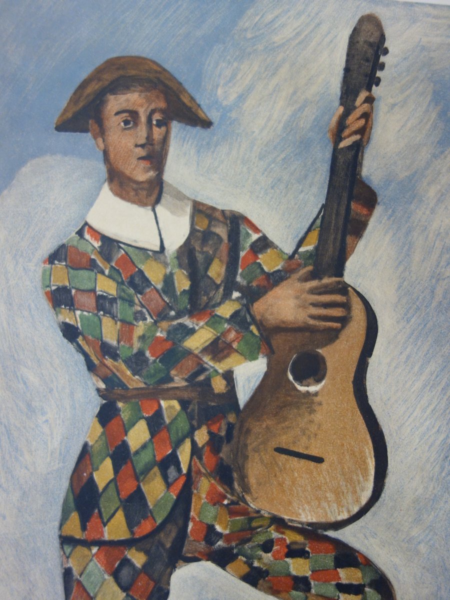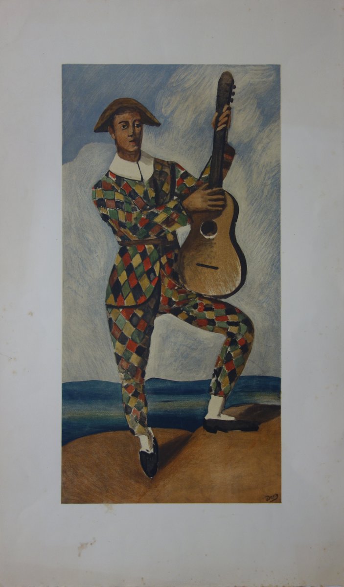 Harlequin on Guitar Lithograph by André Derain