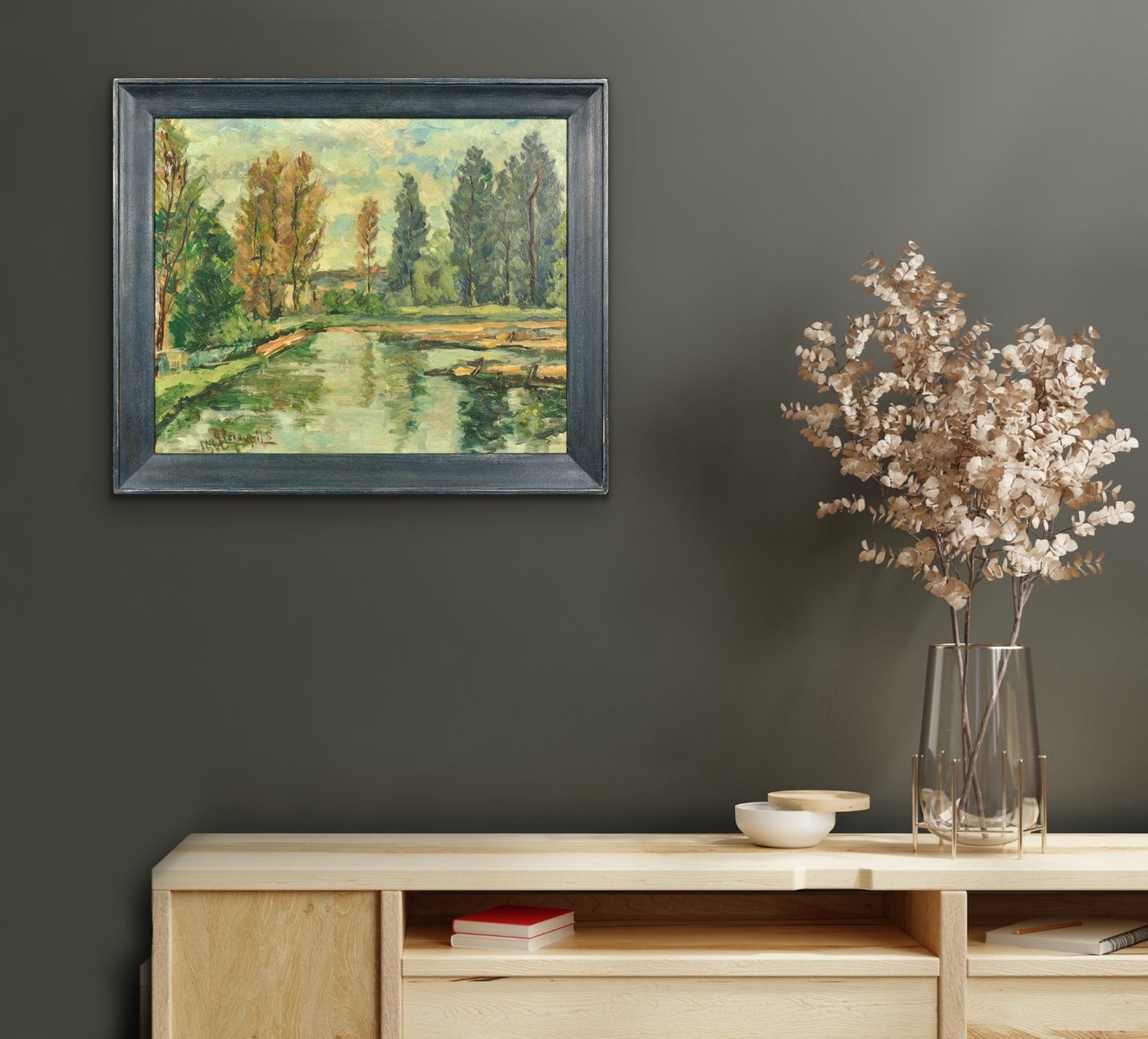 Henri Joseph Pauwels, Wooded Landscape, 1966, Oil Painting, Framed