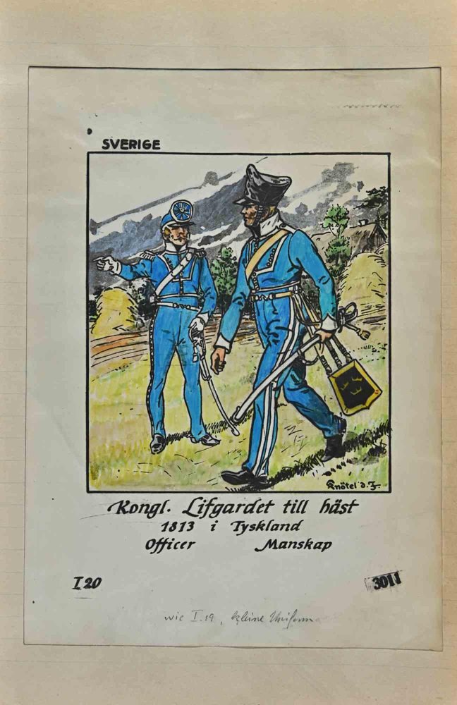 Herbert Knotel, Kongl. Lifgardet till Hast, Ink & Watercolor Drawing, 1940s