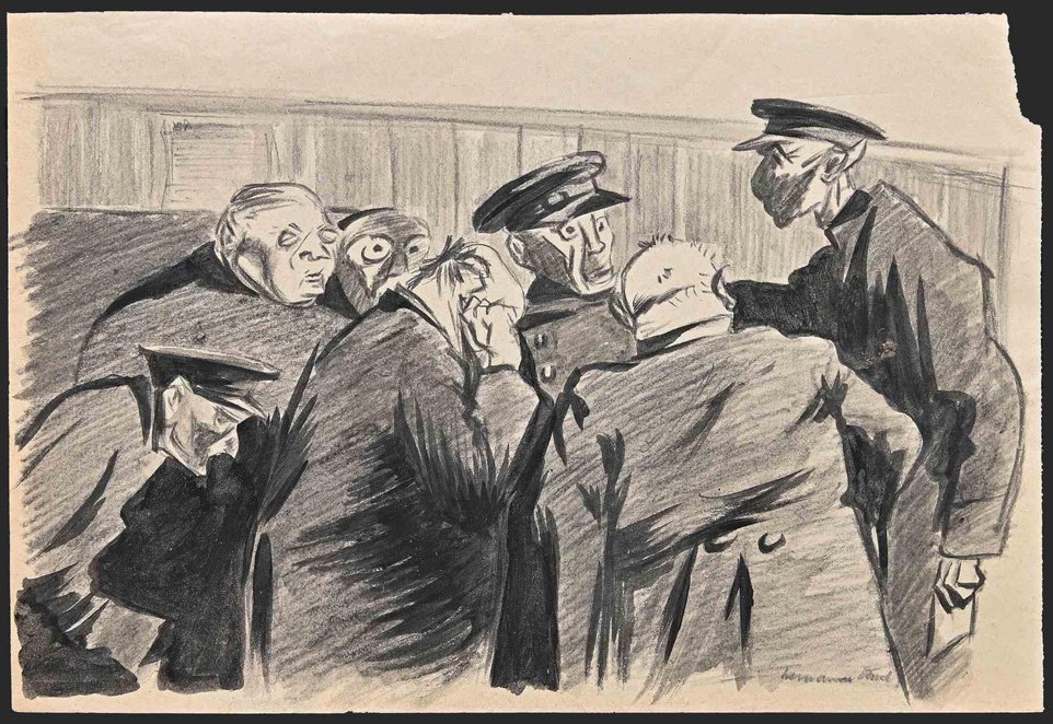 Hermann Paul, Policemen, Original Drawing, Early 20th-Century