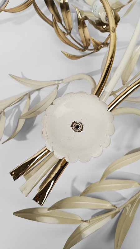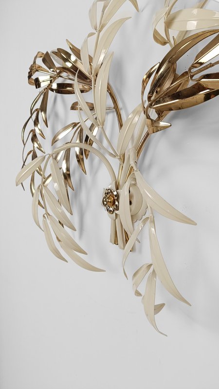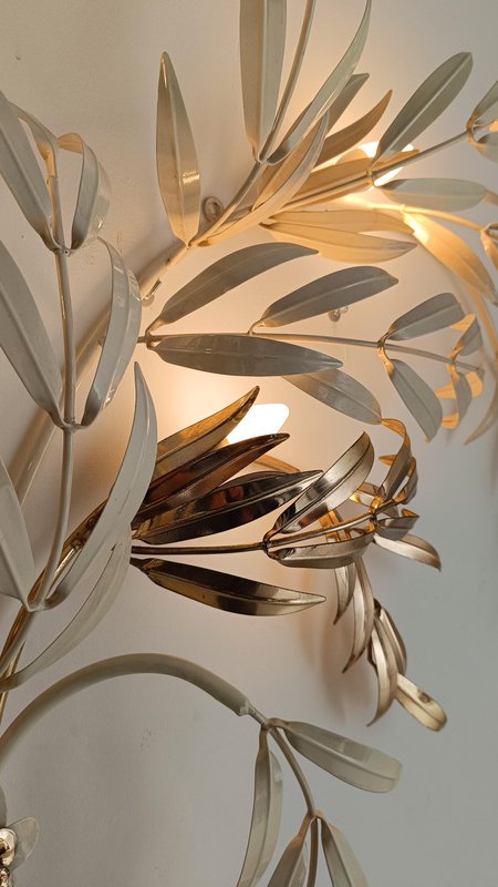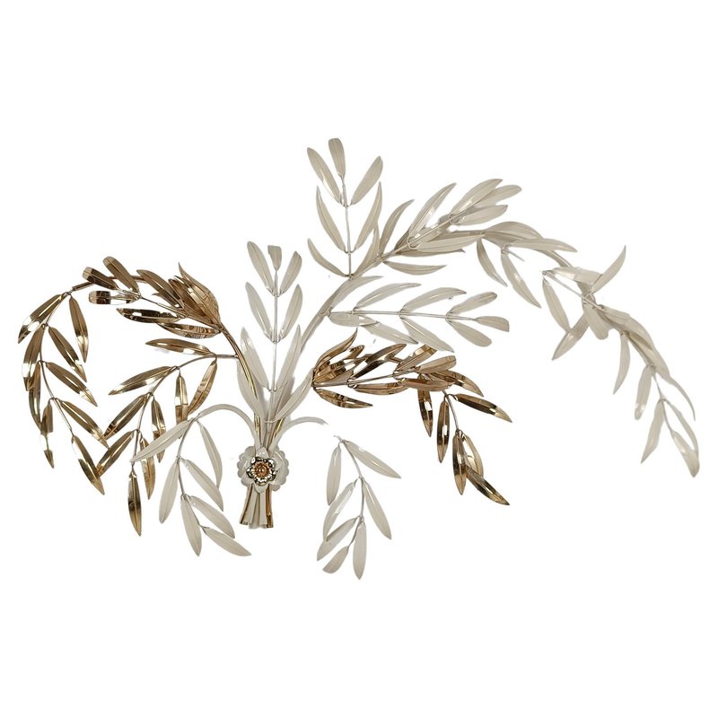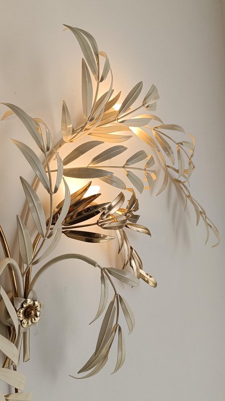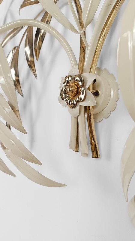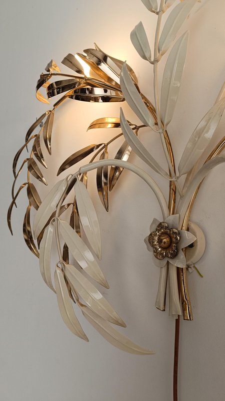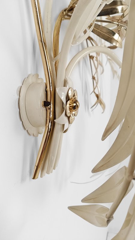 Hollywood Regency Wall Light Sconce in White & Gilt Metal Leaf by Hans Kögl, 1970s