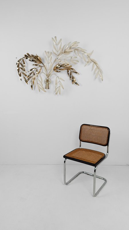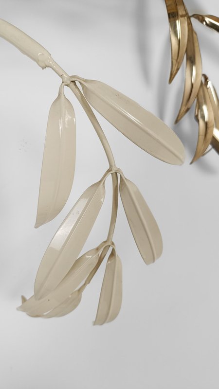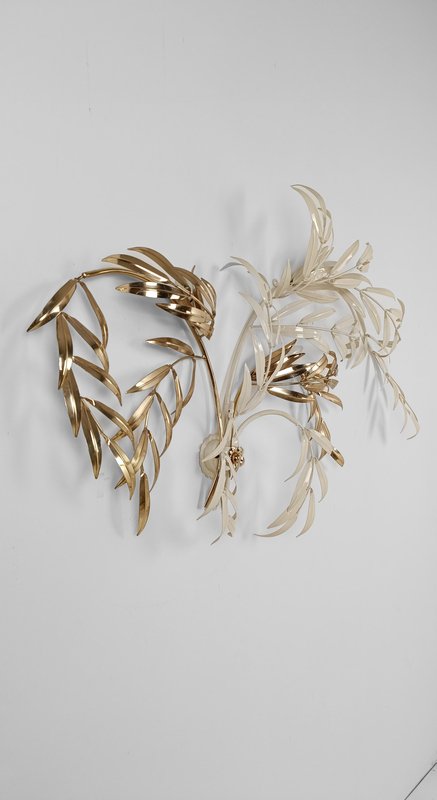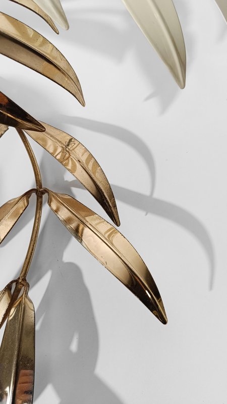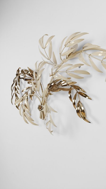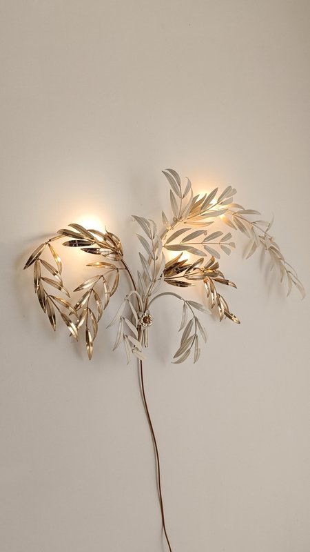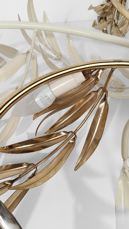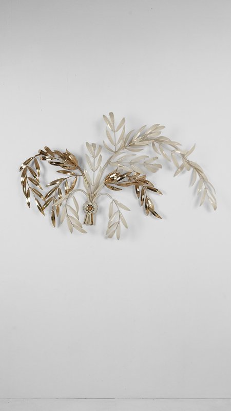 Hollywood Regency Wall Light Sconce in White & Gilt Metal Leaf by Hans Kögl, 1970s