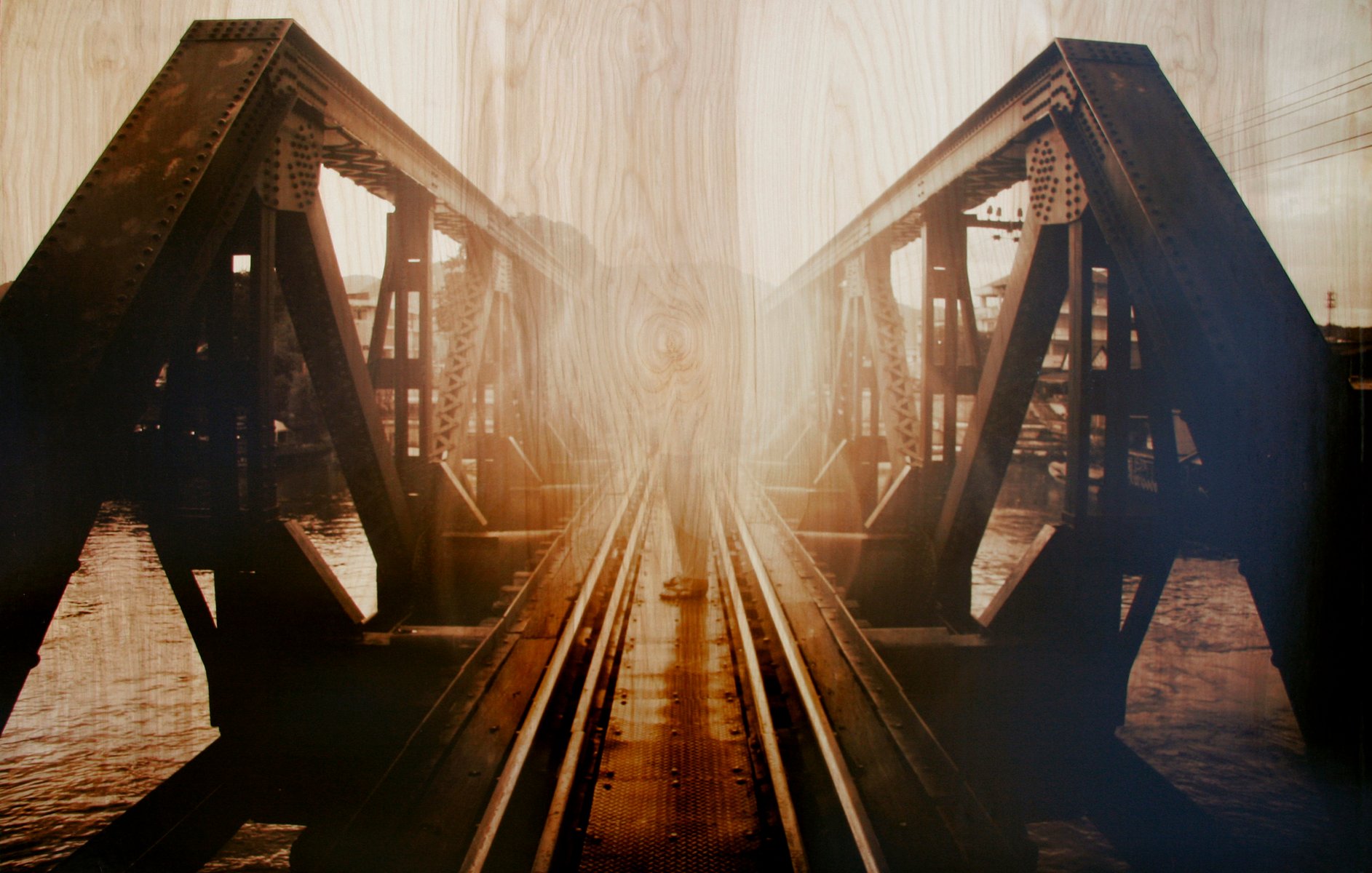 Hugo Urrutia, Crossing Bridges, 2019, Mixed Media Photograph on Wood