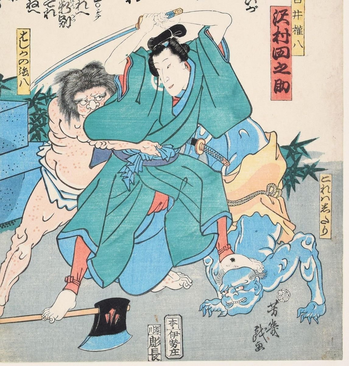 Ikeisai Yoshichika - Warriors - Original Woodcut - 1865