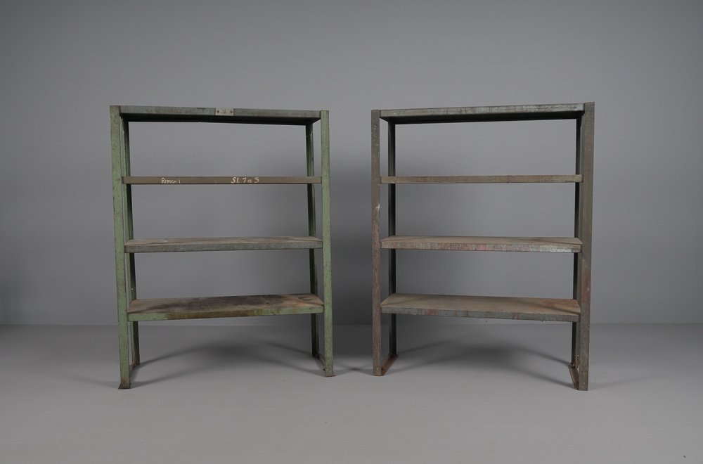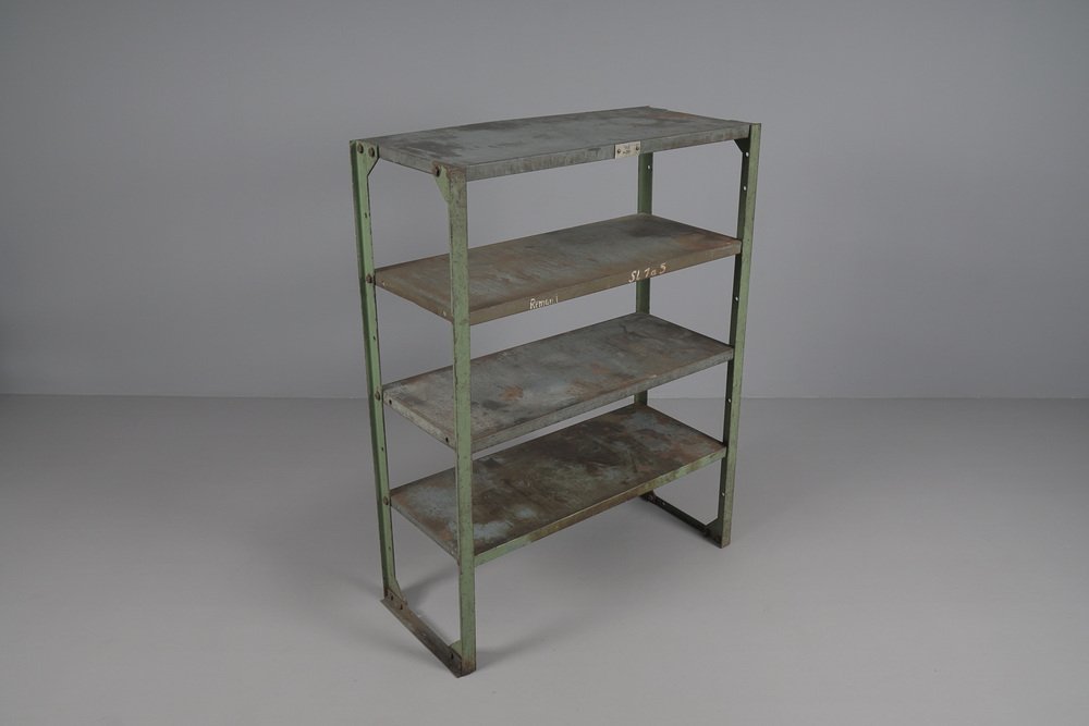 Industrial Art Deco Metal Shelf, 1950s