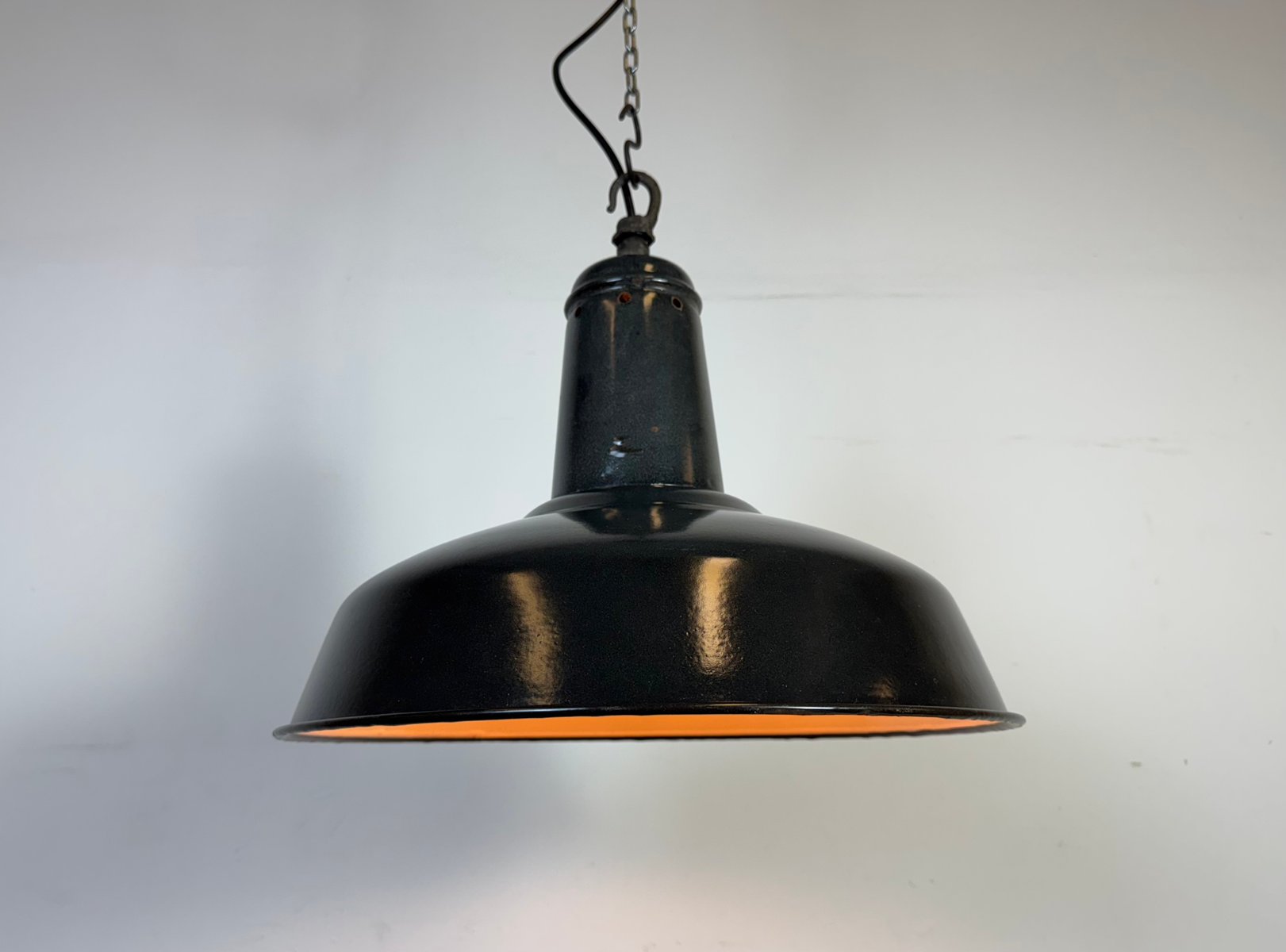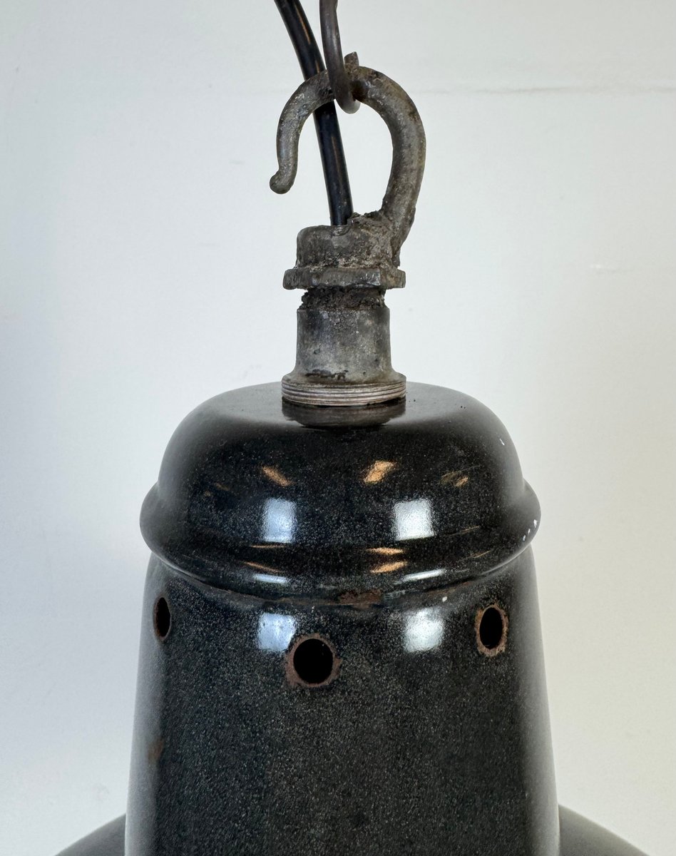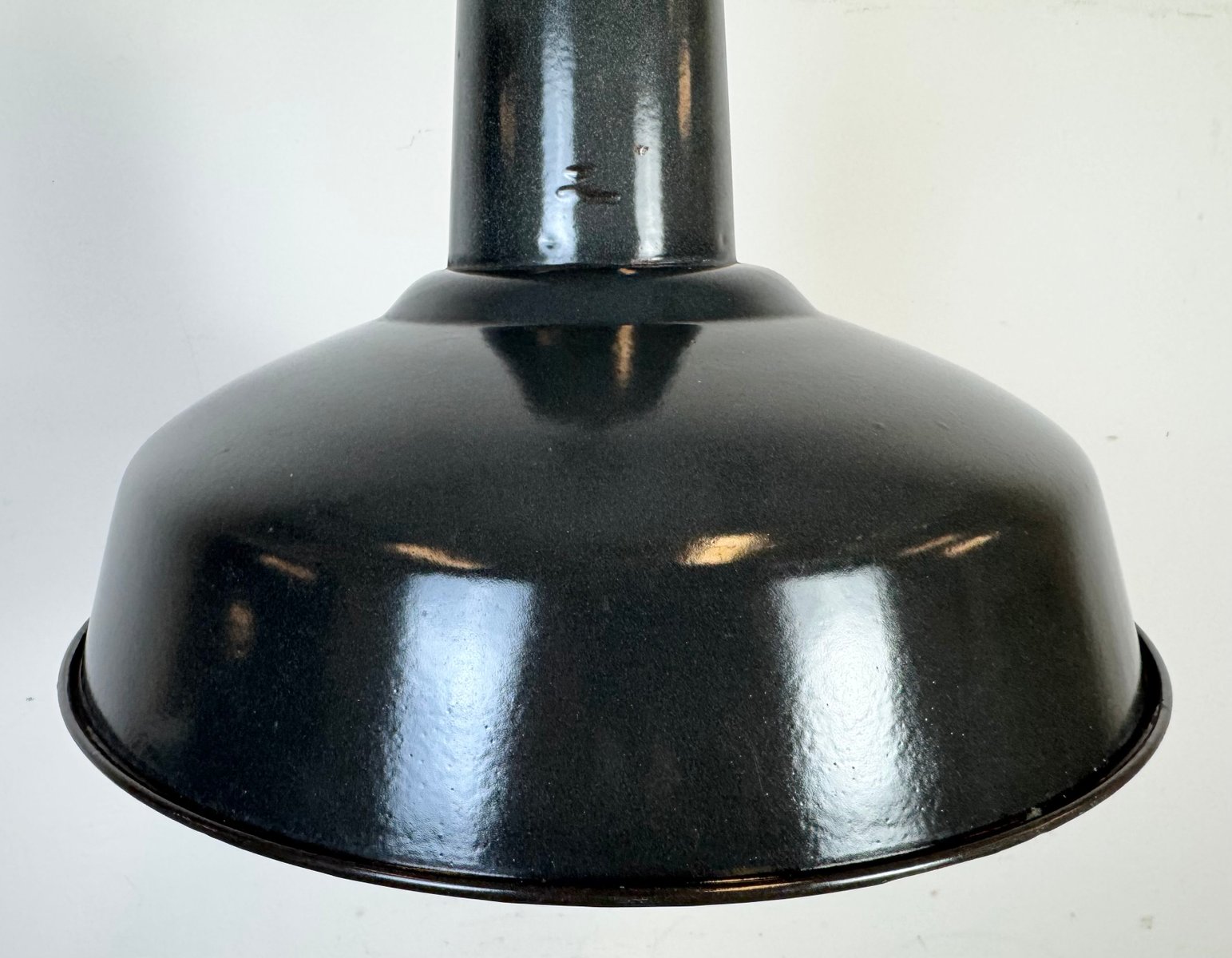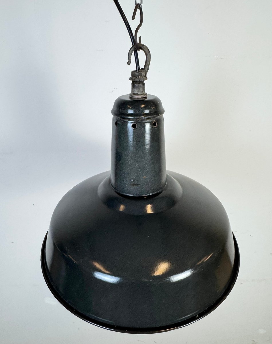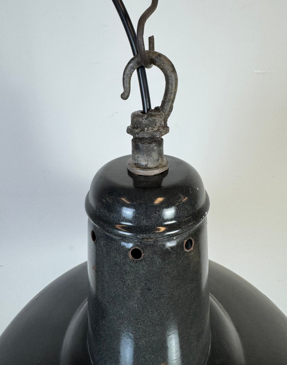 Industrial French Dark Grey Enamel Factory Pendant Lamp, 1960s