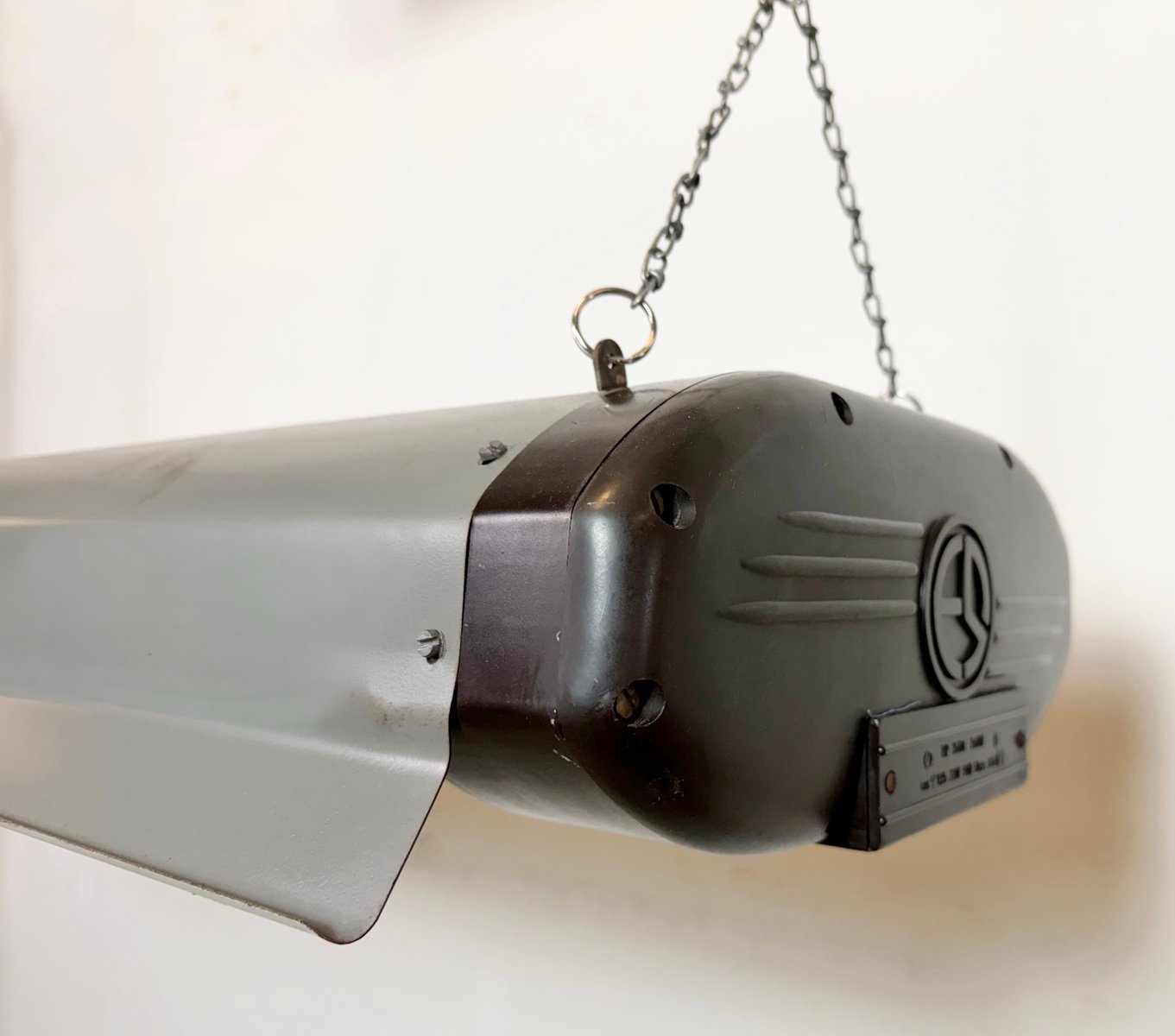Industrial Grey Hanging Tube Light from Elektrosvit, 1960s