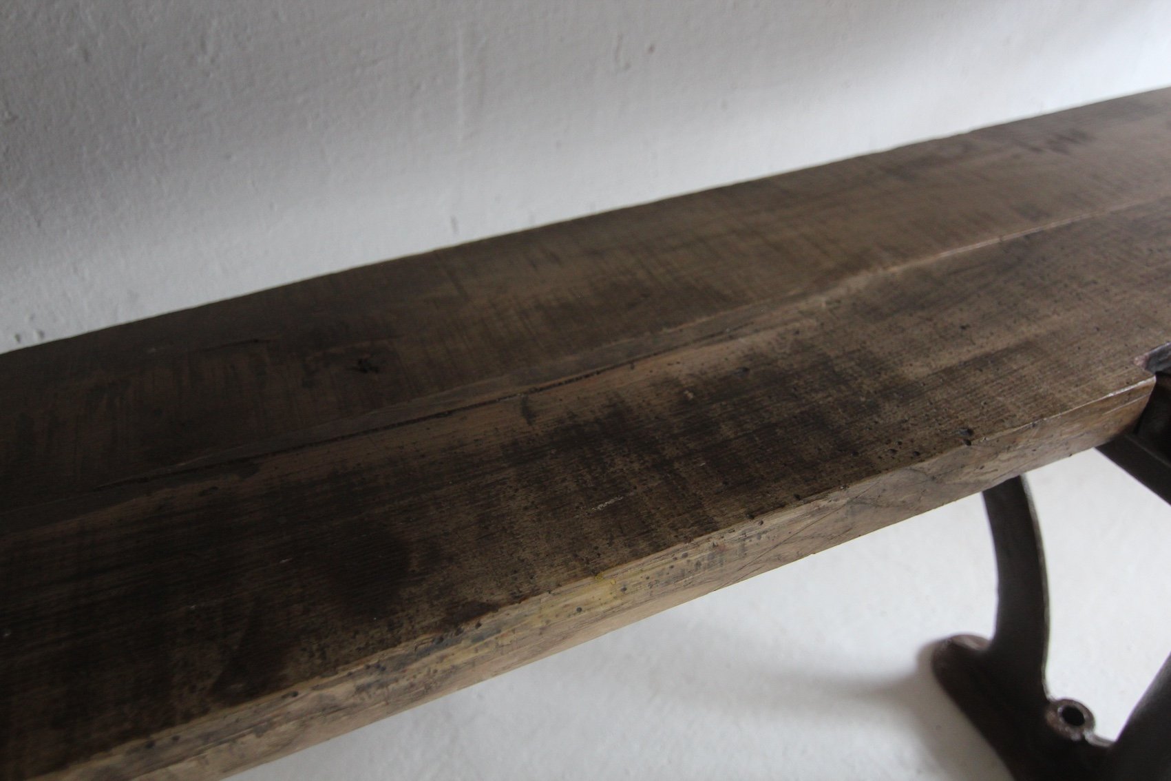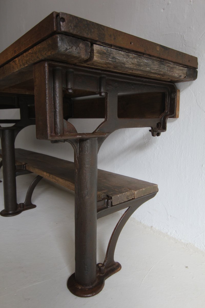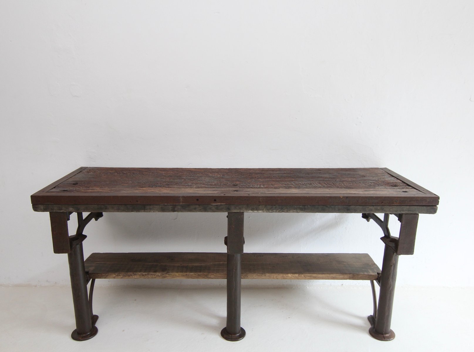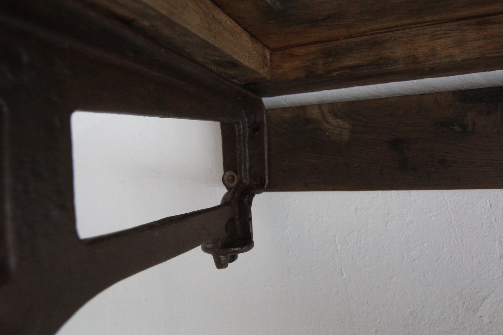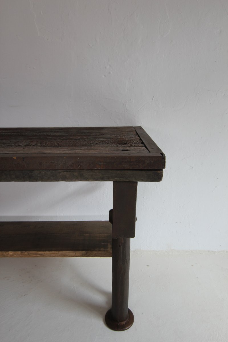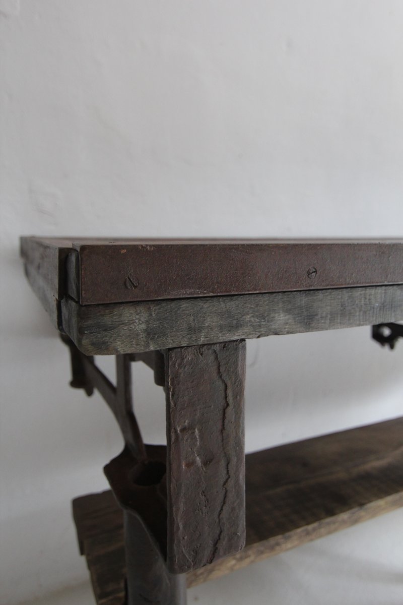 Industrial Wabi-Sabi Cast Iron and Wood Console Worktable, 1920s