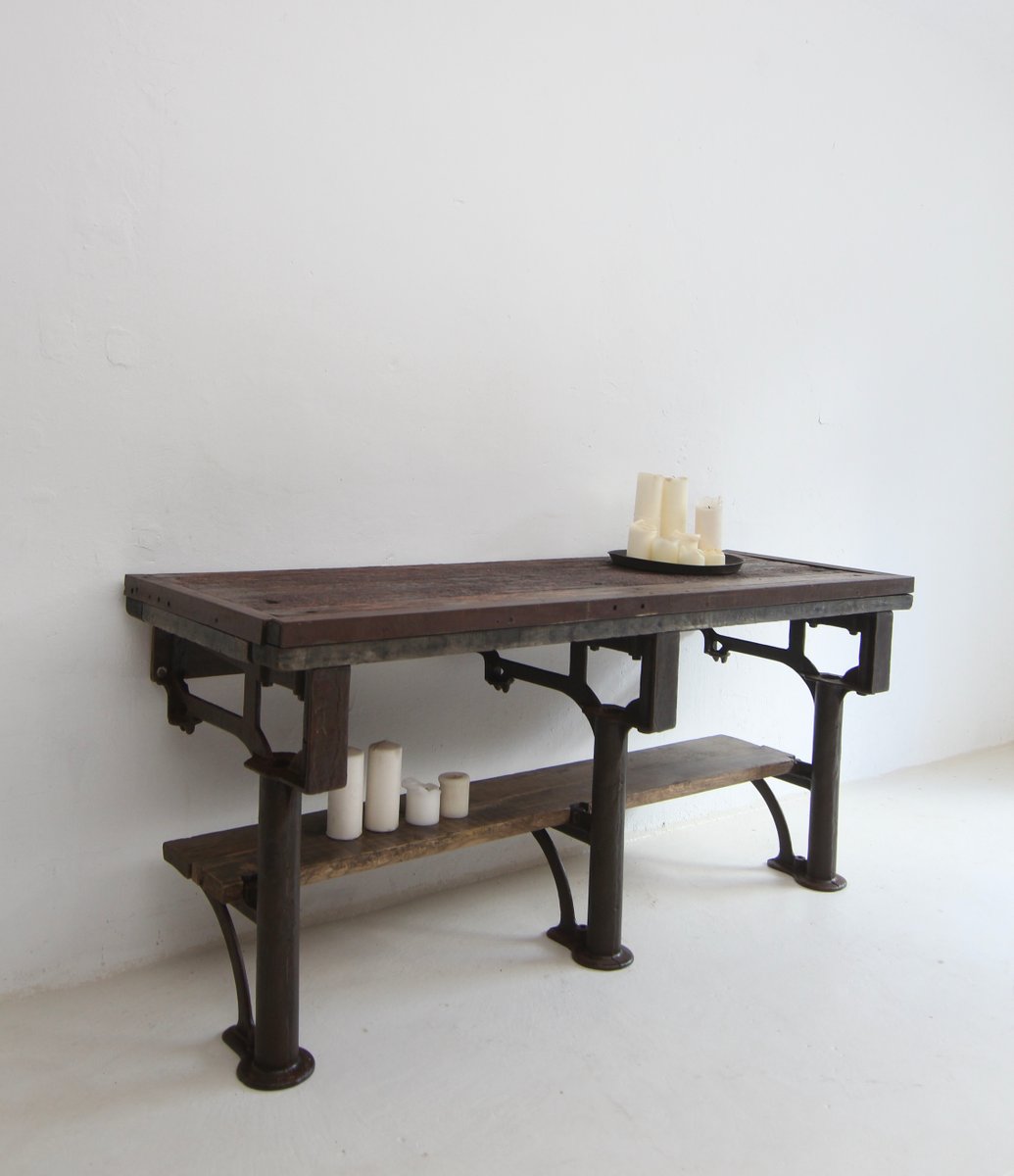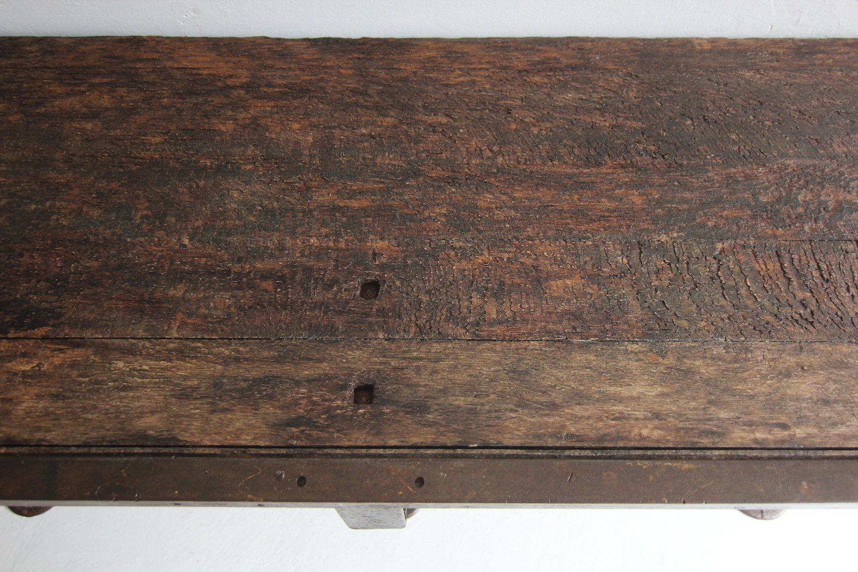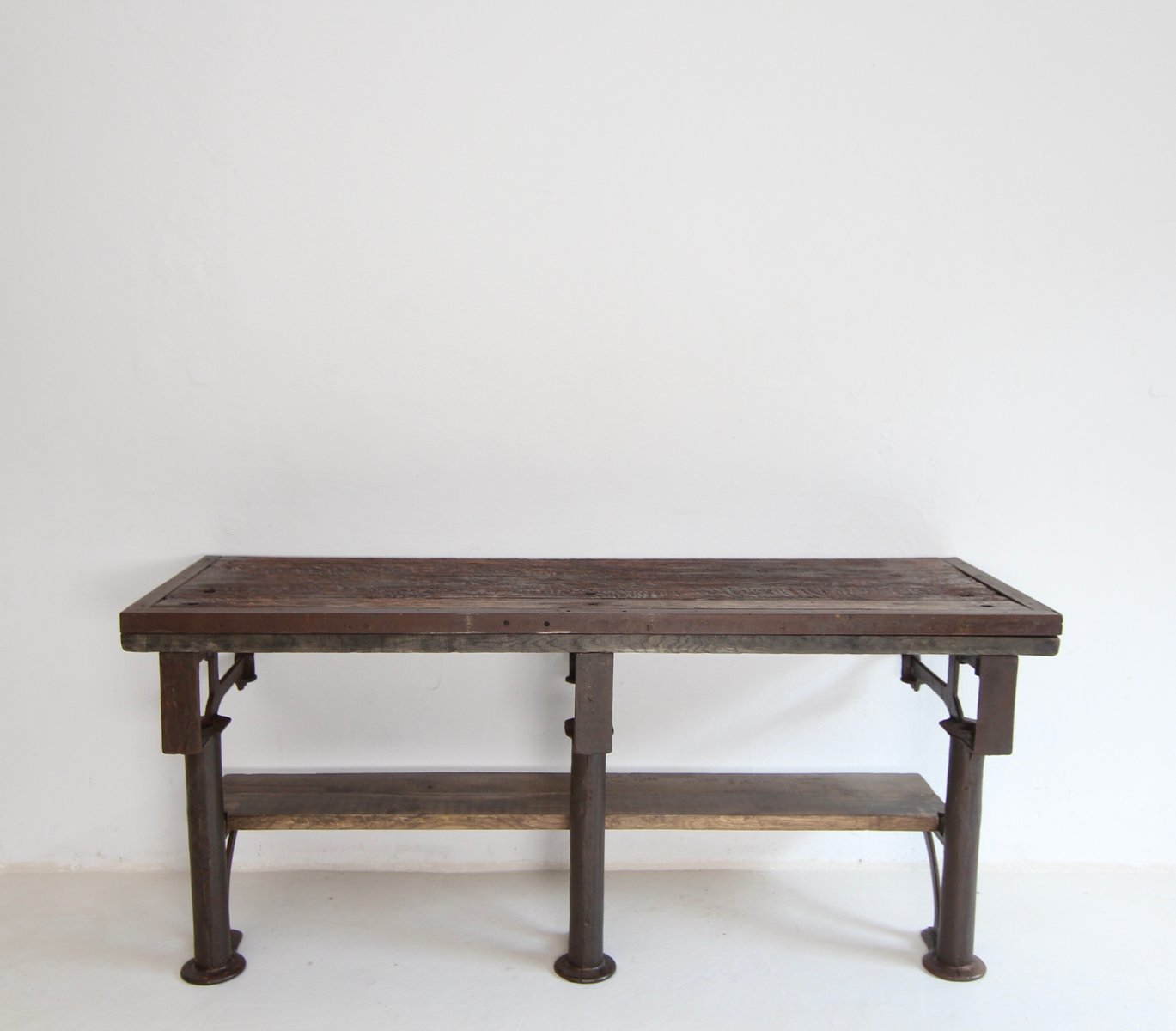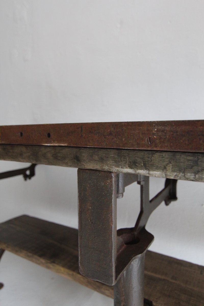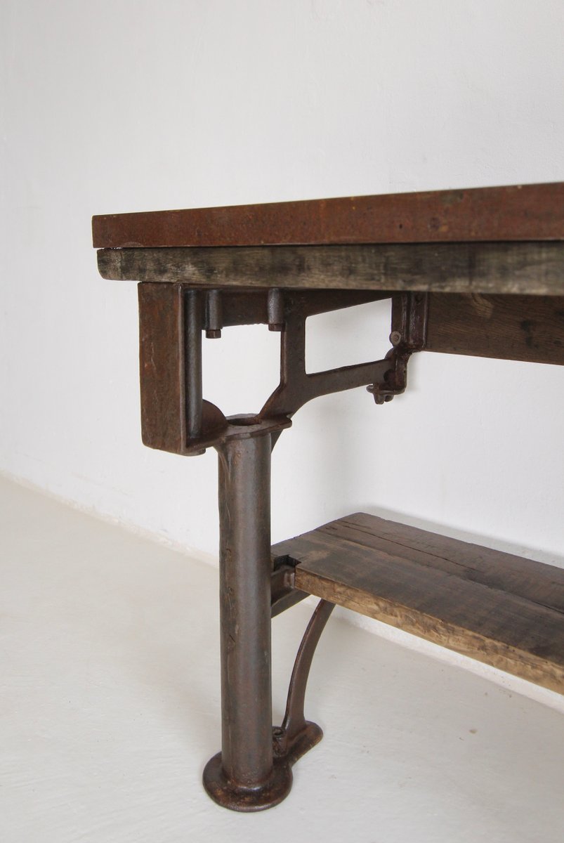 Industrial Wabi-Sabi Cast Iron and Wood Console Worktable, 1920s