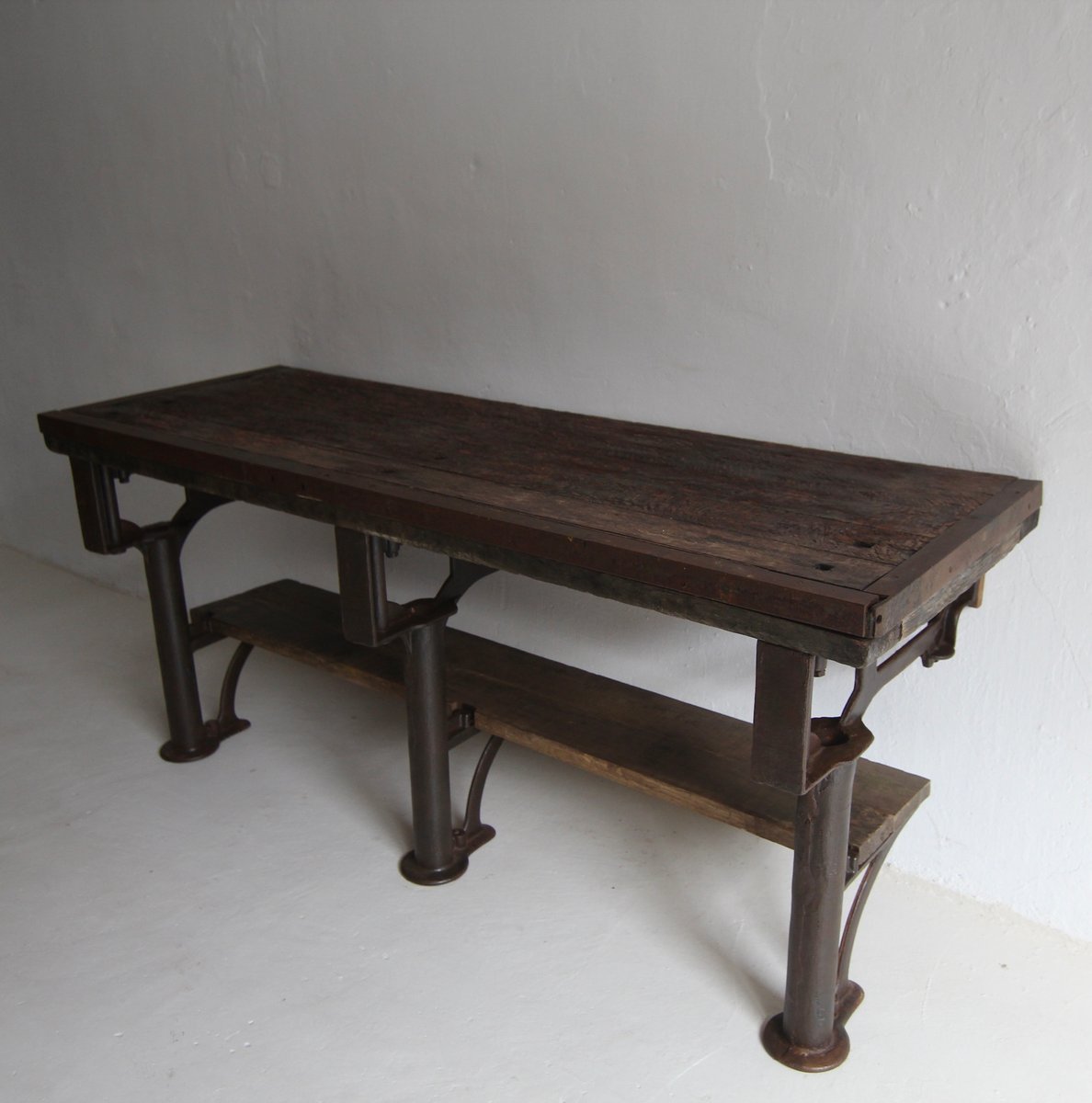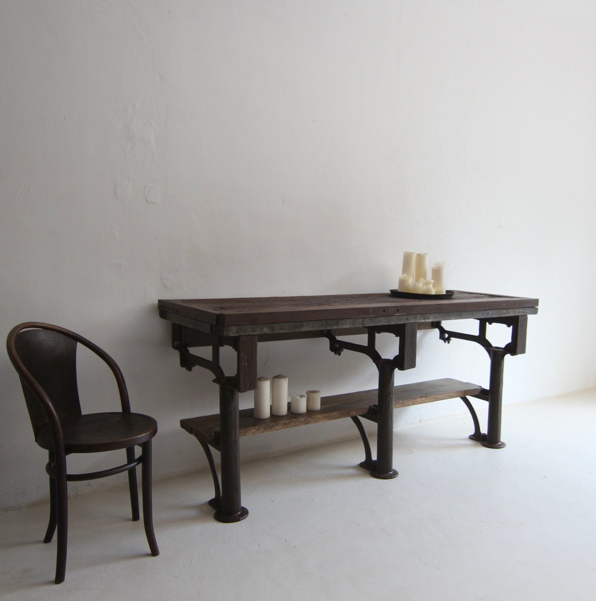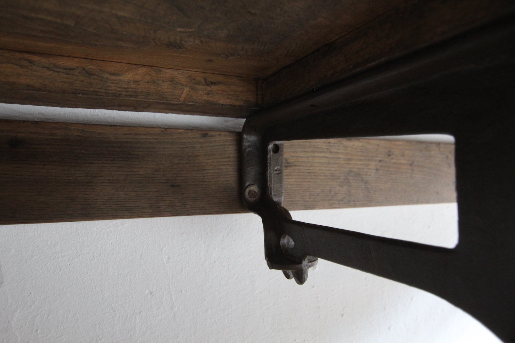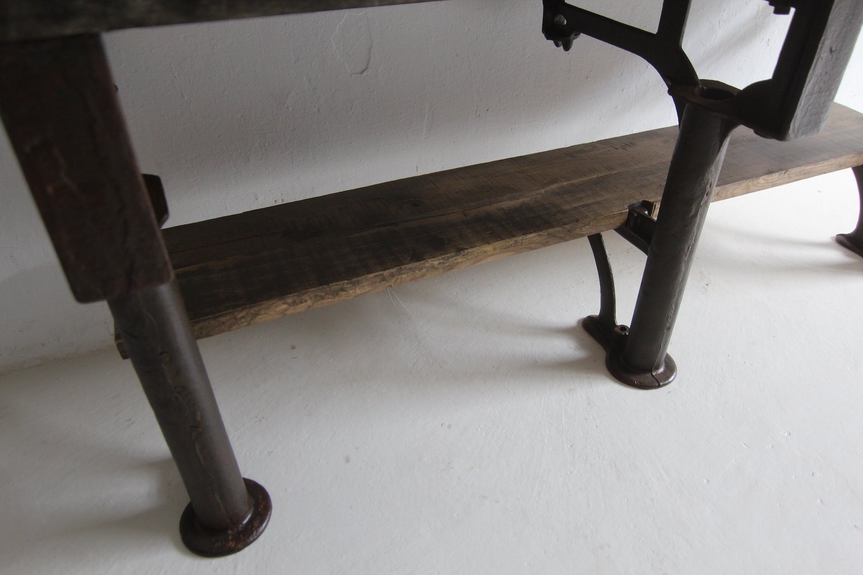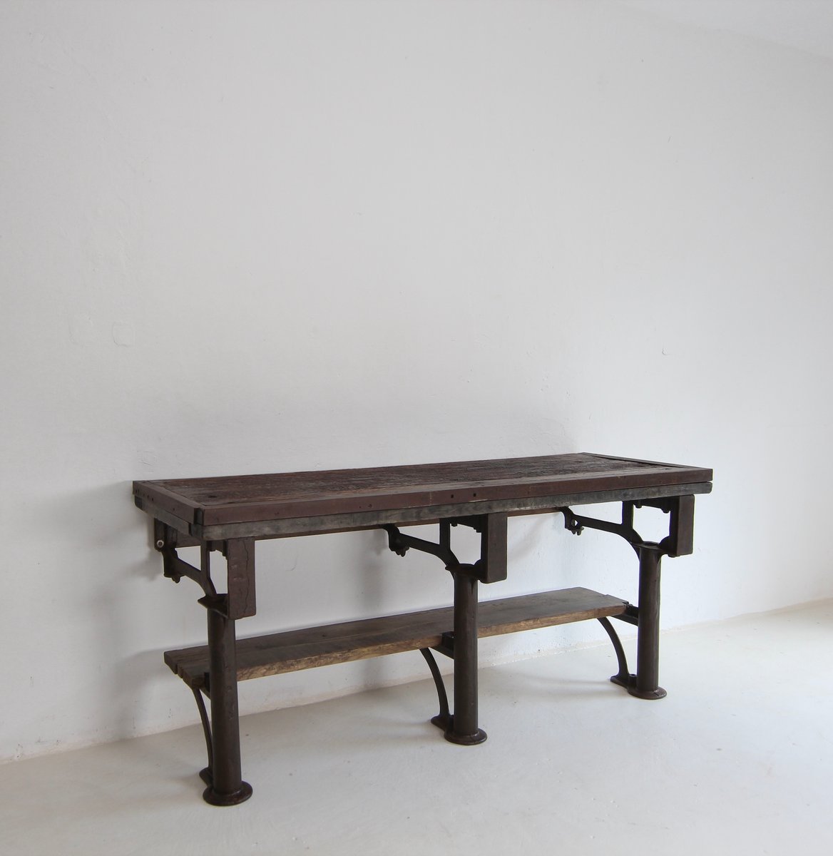 Industrial Wabi-Sabi Cast Iron and Wood Console Worktable, 1920s