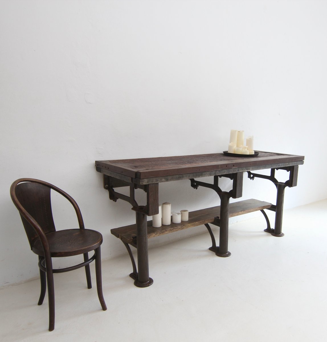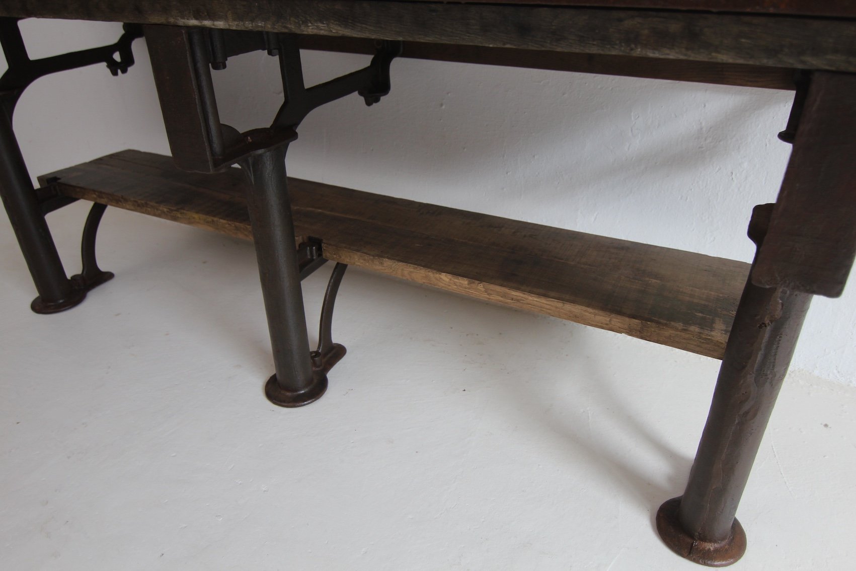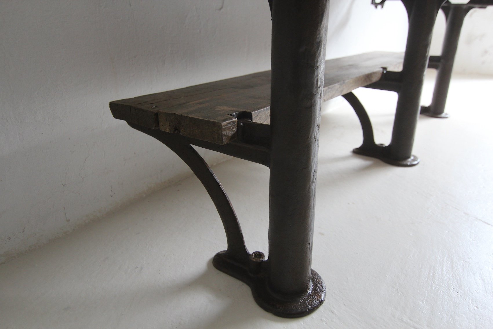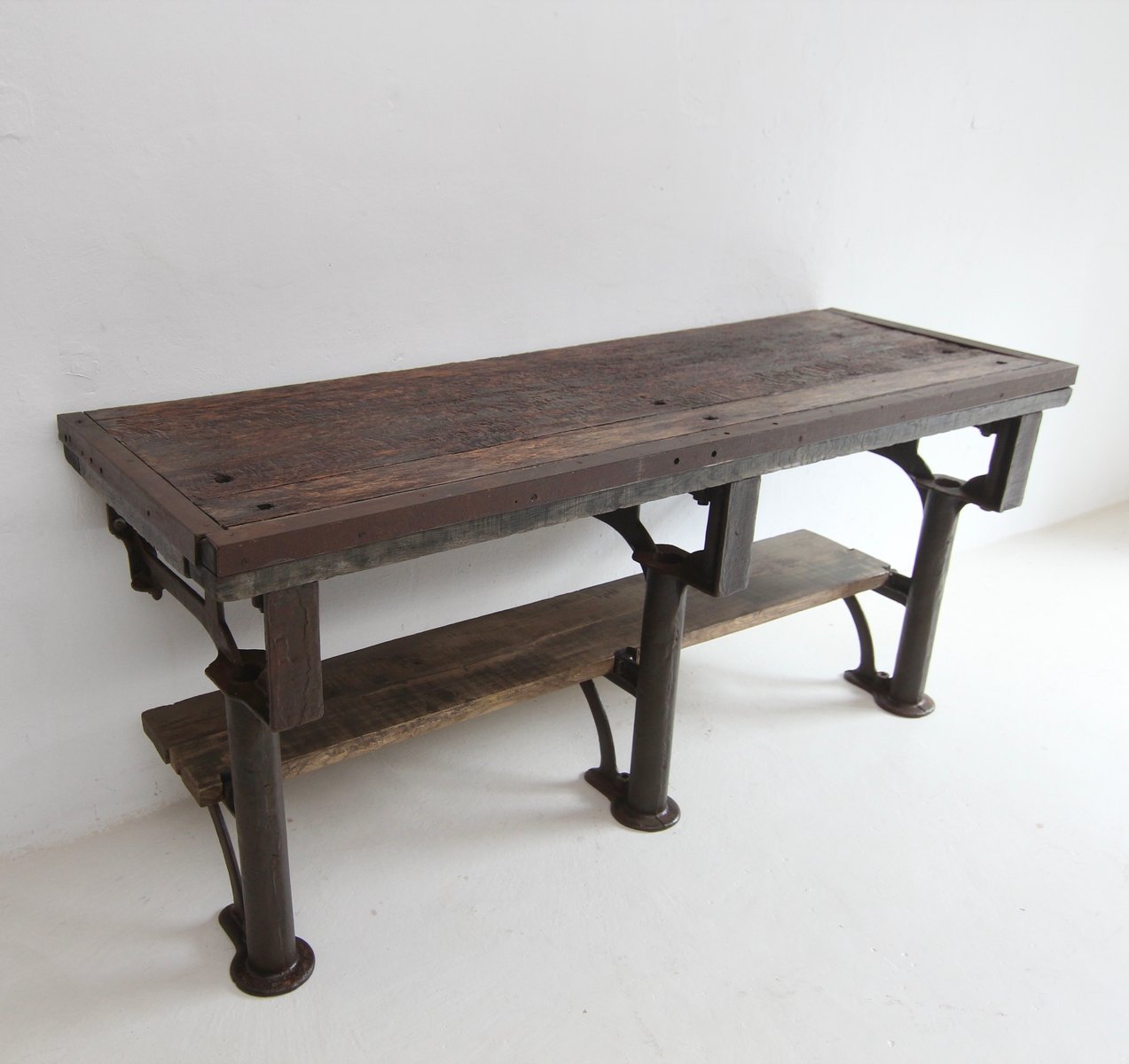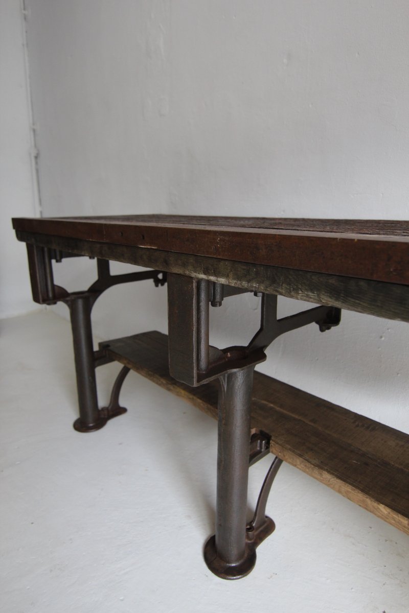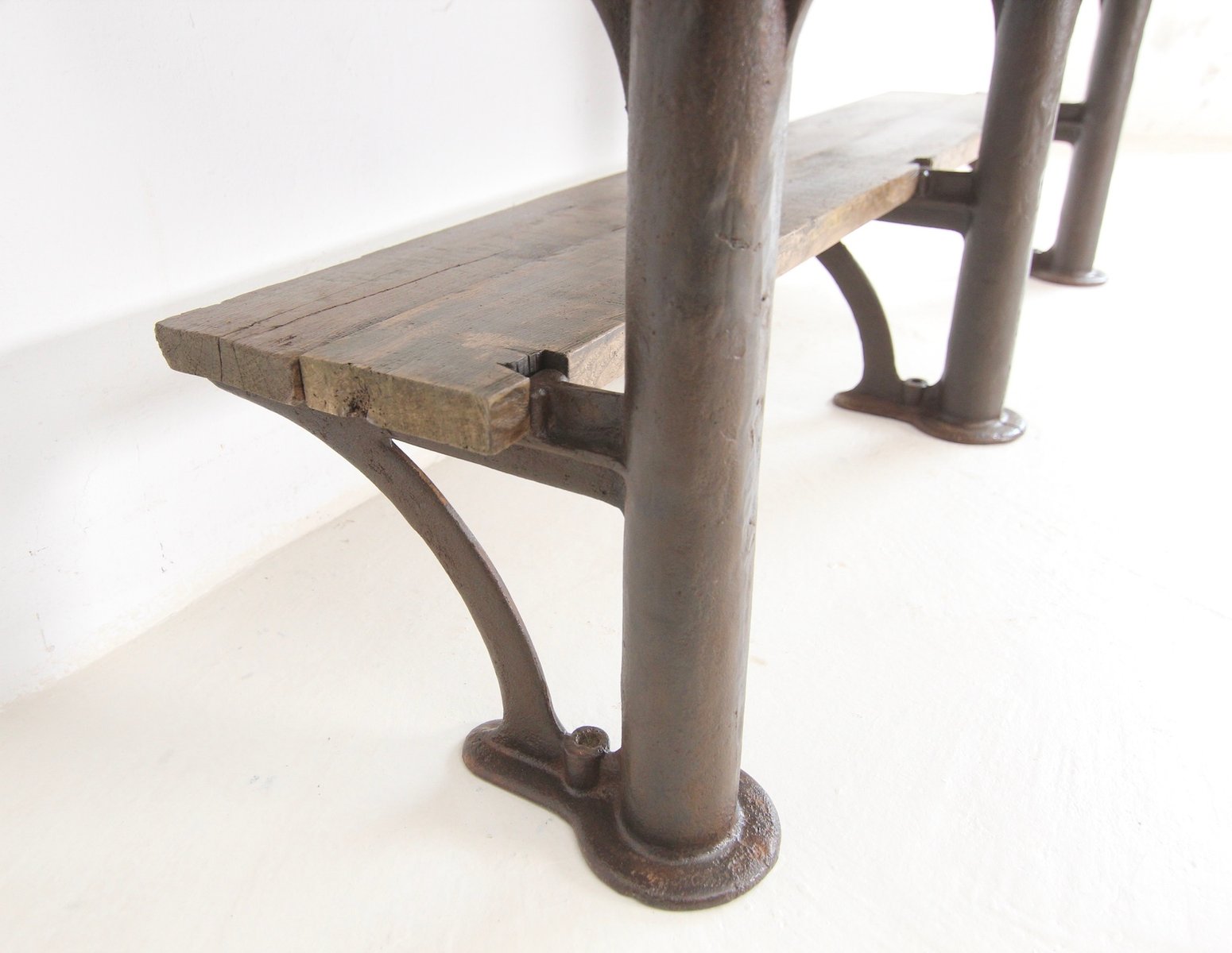 Industrial Wabi-Sabi Cast Iron and Wood Console Worktable, 1920s