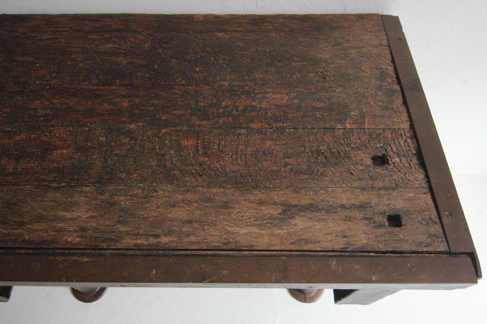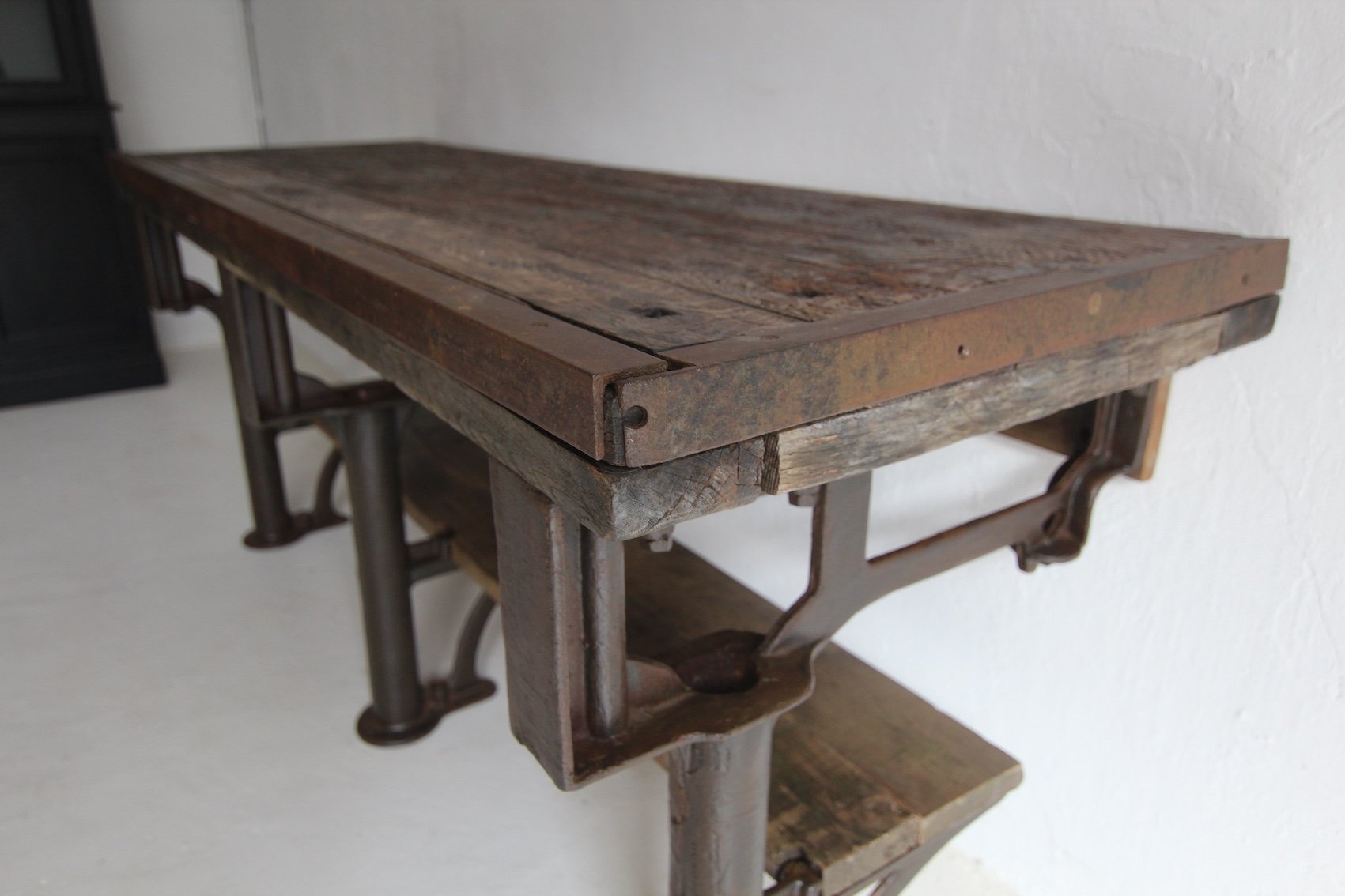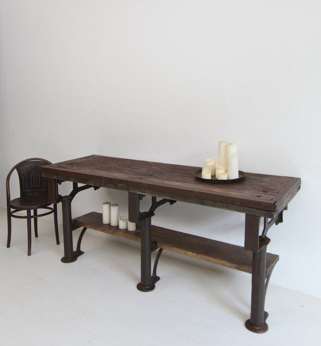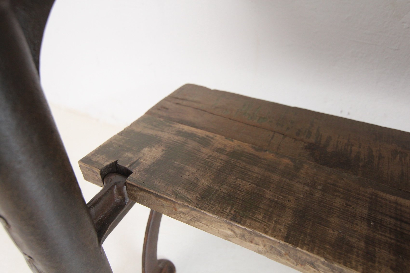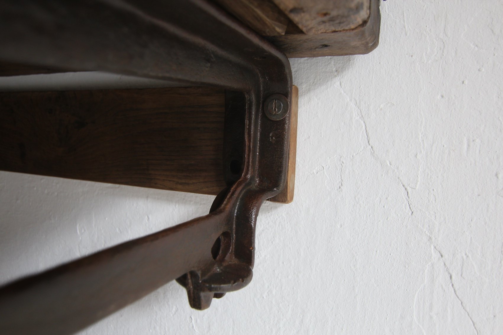 Industrial Wabi-Sabi Cast Iron and Wood Console Worktable, 1920s