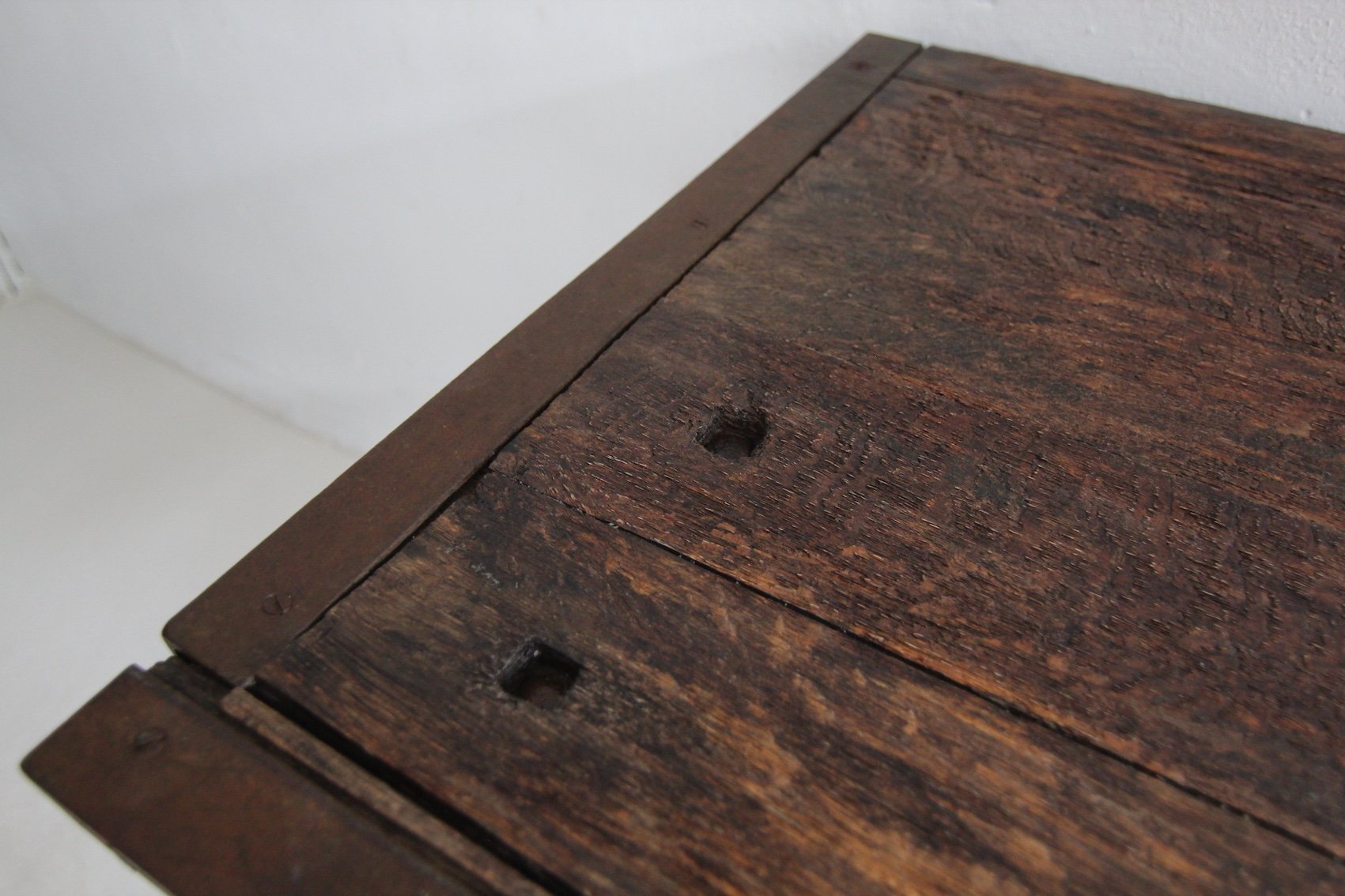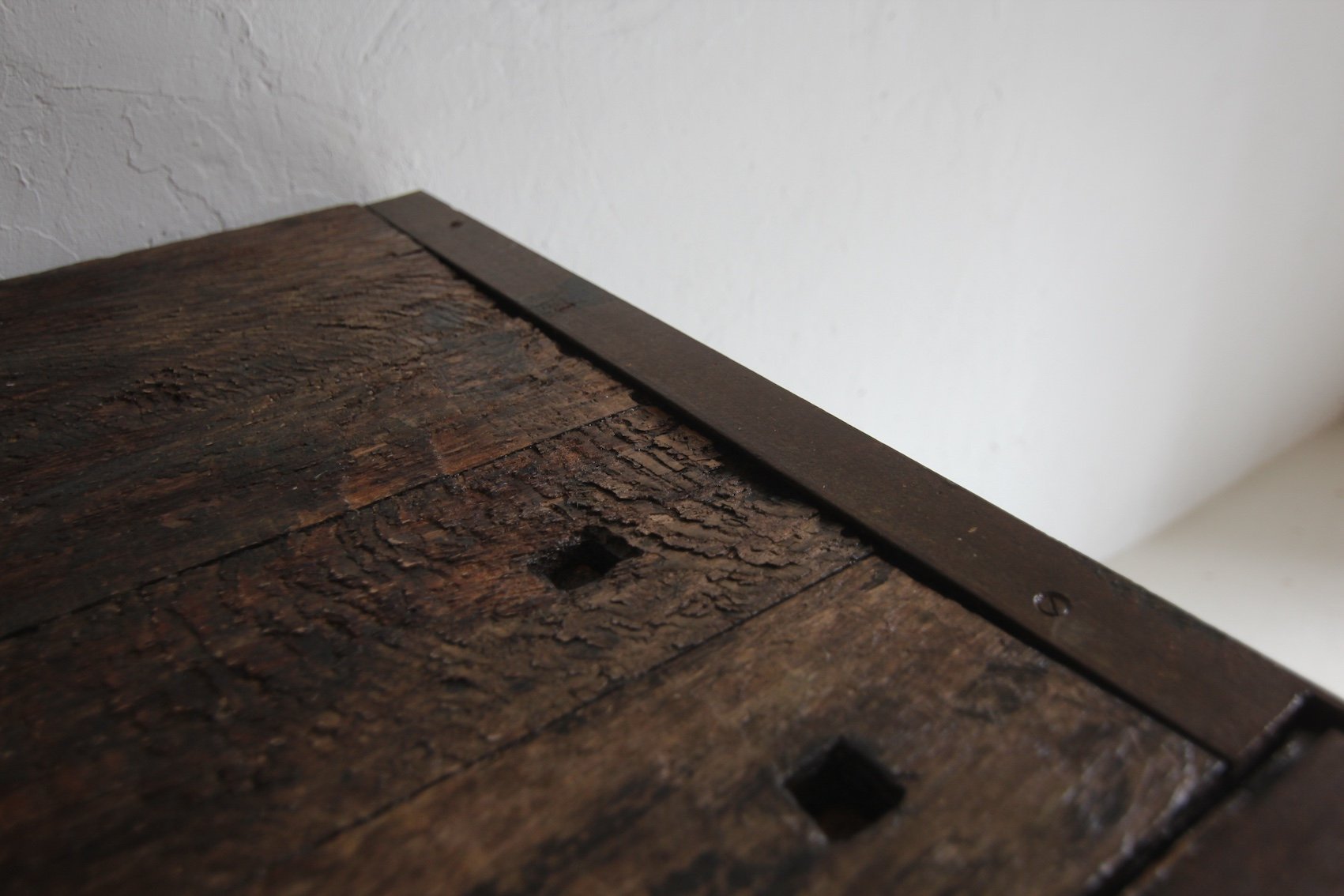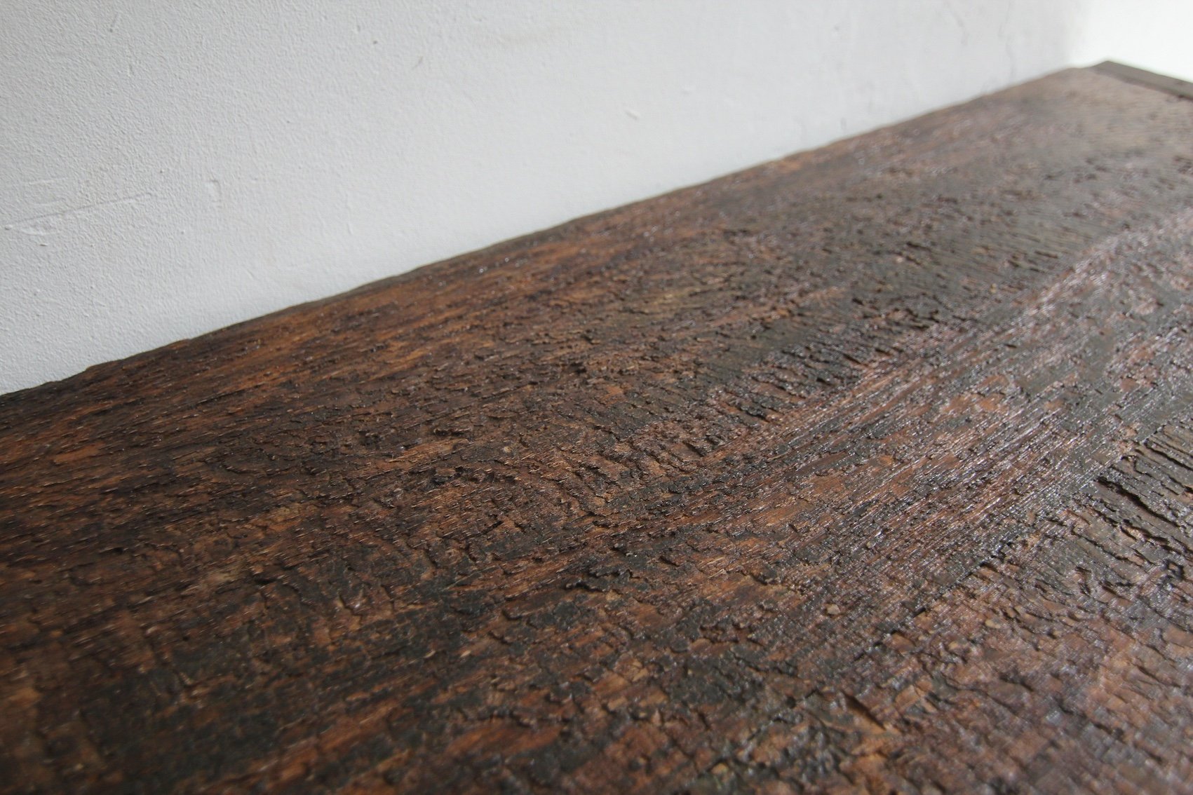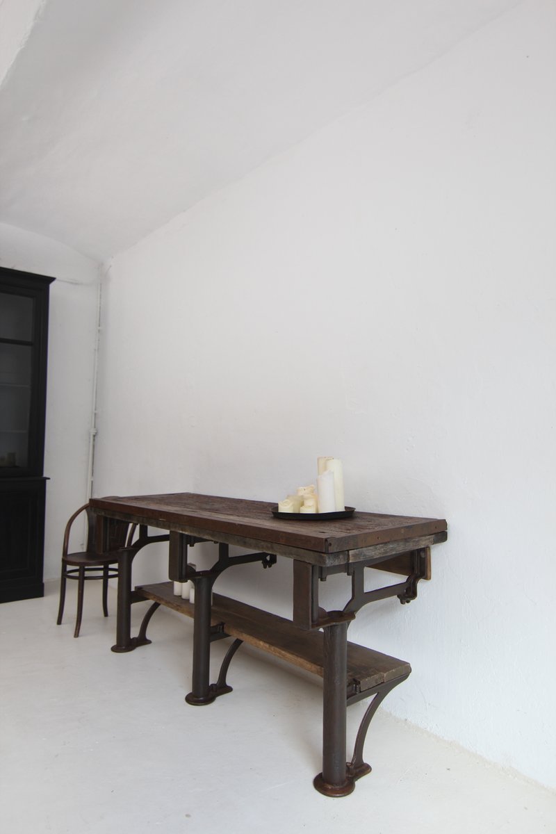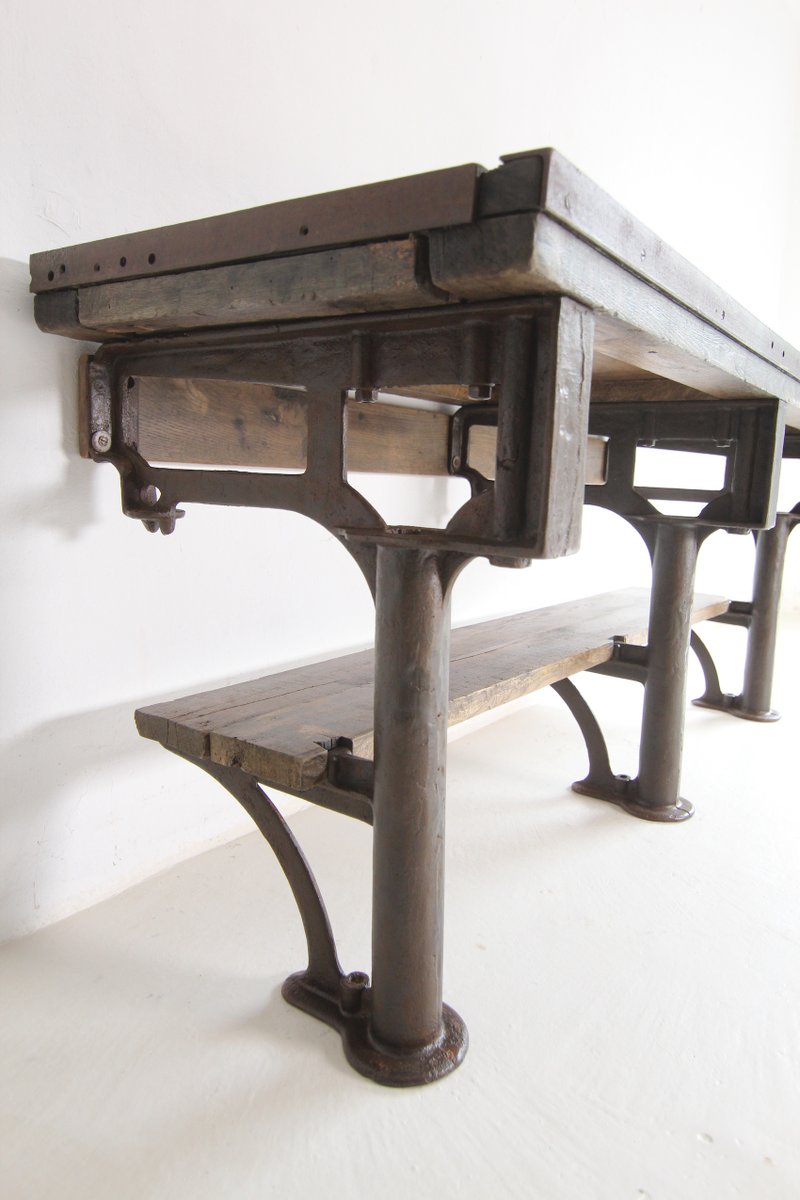 Industrial Wabi-Sabi Cast Iron and Wood Console Worktable, 1920s