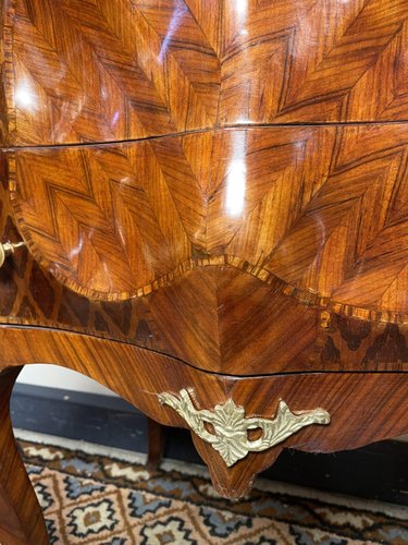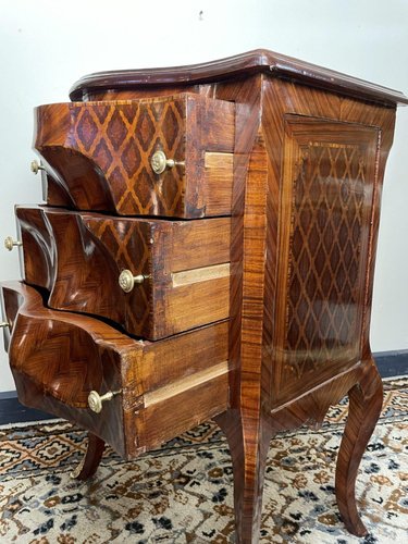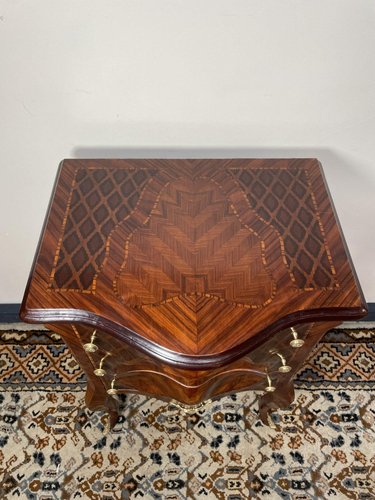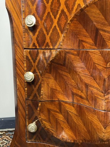 Invertedly Carved Chest of Drawers in Mahogany and Kingwood