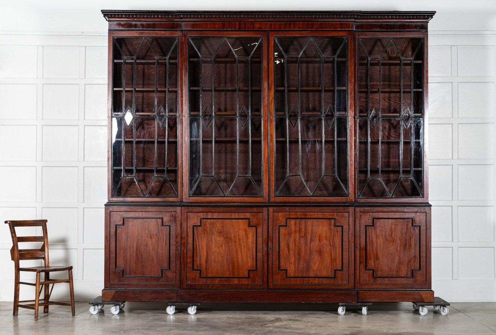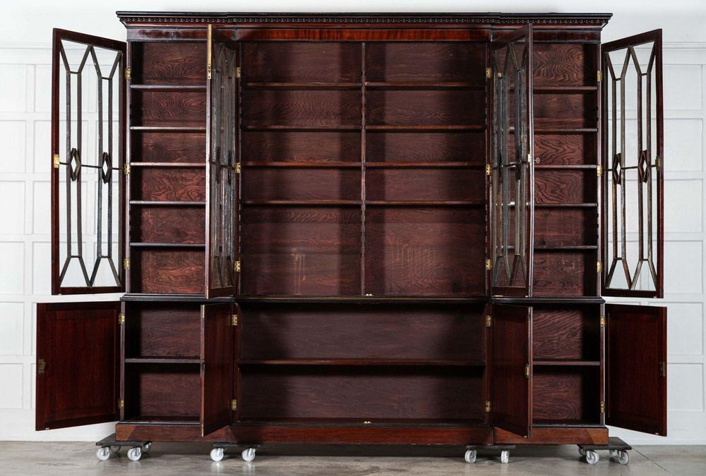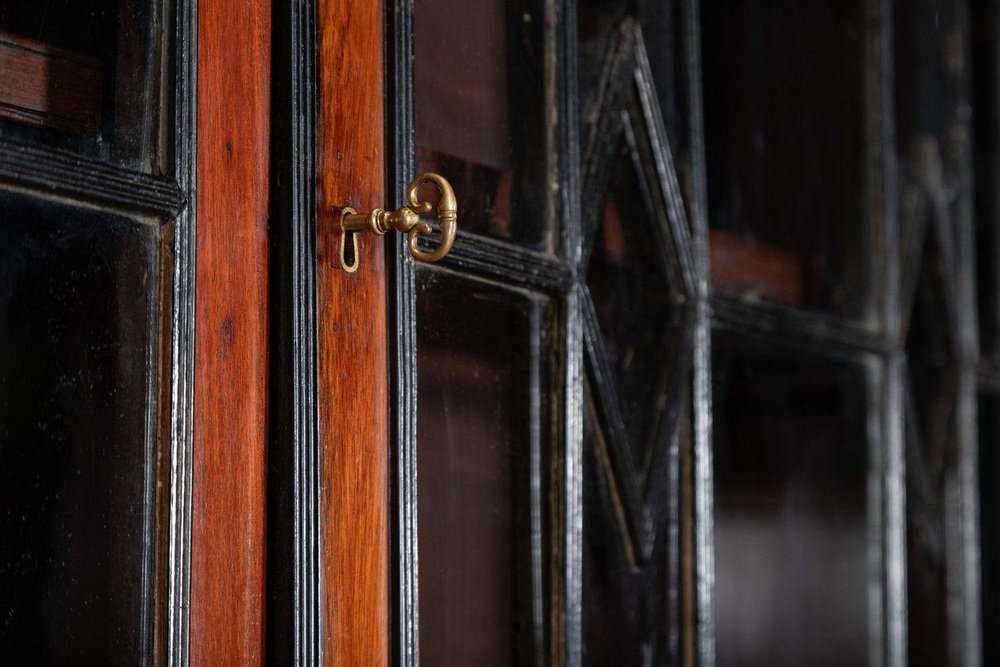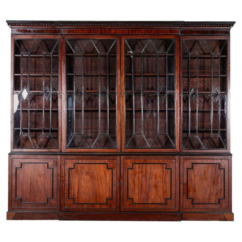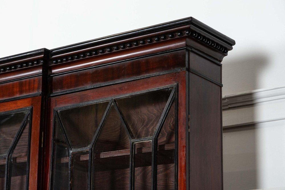 Irish Georgian Ebonised Mahogany and Astral Glazed Breakfront Bookcase, 1790s
