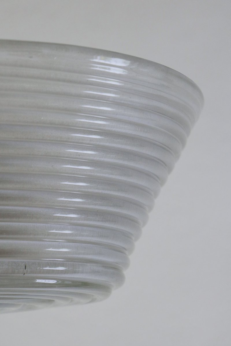 In 1920, Ercole Barovier (1889-1974), a son of Giuseppe's brother Benvenuto, joined the workshop, initiating what would become an almost 50-year artistic directorship that oversaw the design of nearly 23,000 glass products. An experimental designer more so than a craftsman, Ercole steered Artisti Barovier toward a more explicitly modernist output—a transition which showed its first legs at the 1930’s Biennale with his Primavera series of vases and animal sculptures. Extremely fragile, milky-white glass filled with interior hairline cracks and tiny bubbles, these pieces—whose manufacturing process has been lost to history—currently fetch high value on the vintage market (A Primavera glass pigeon, for example, sold recently at British auction house Christie's East for $80,000).