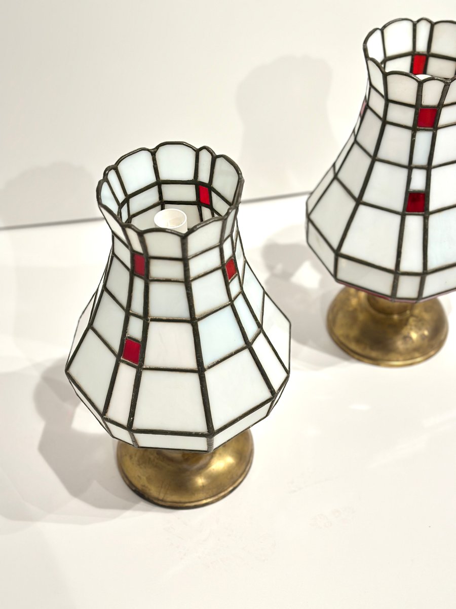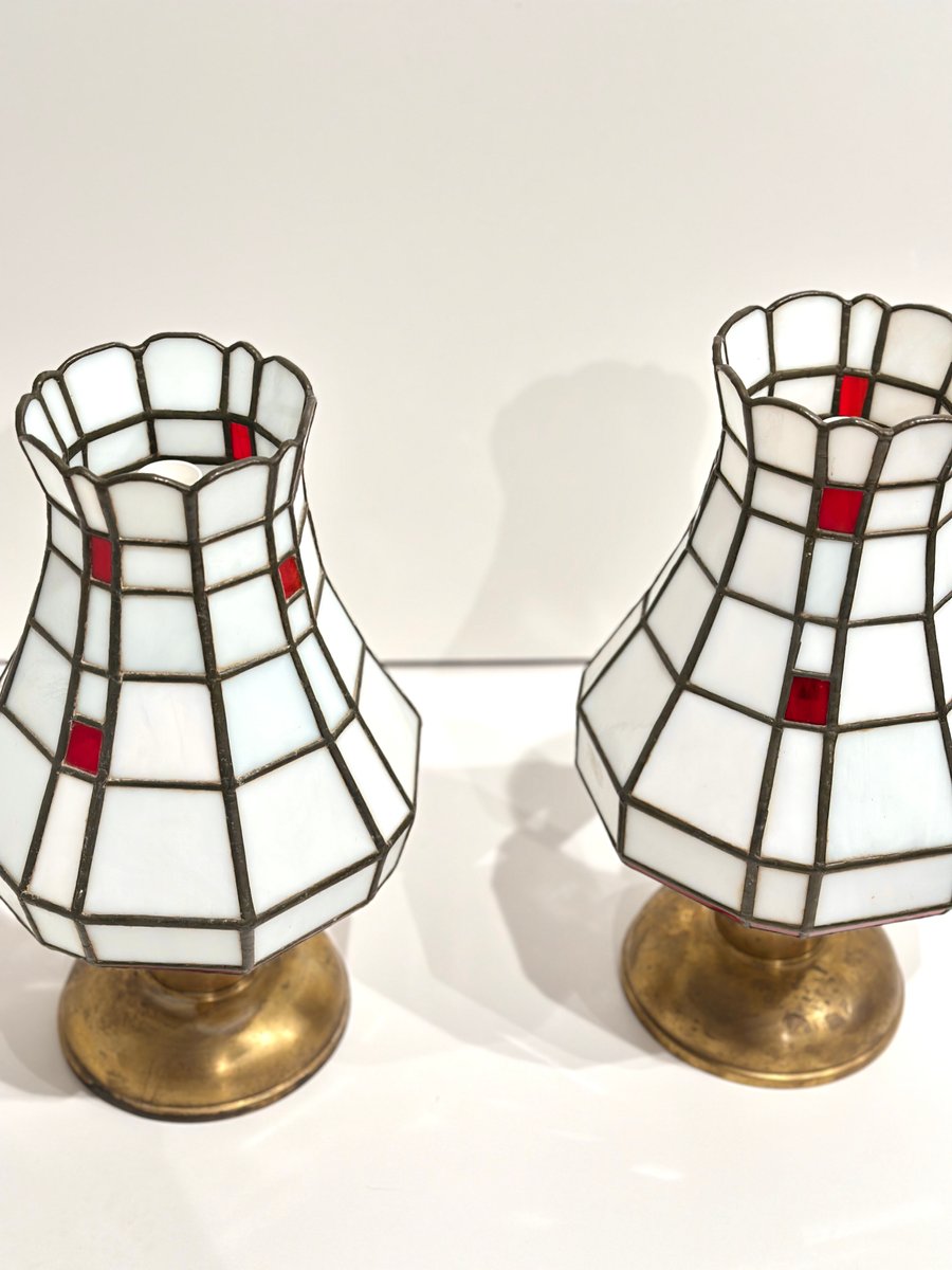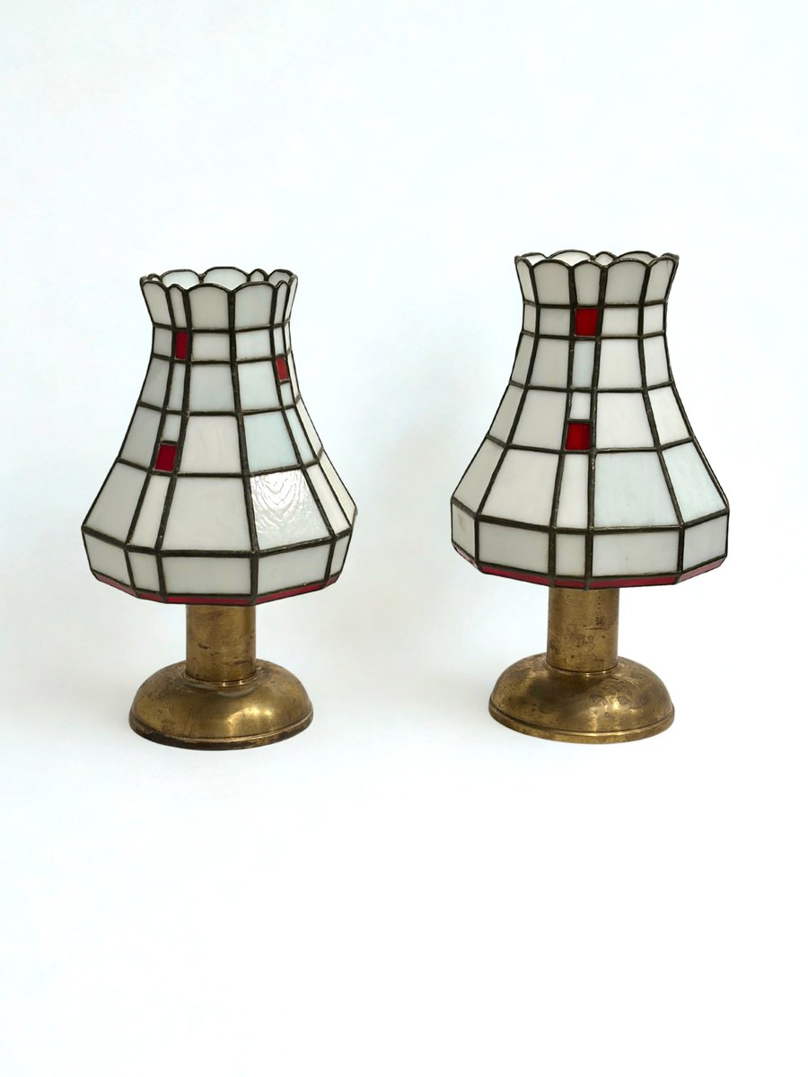Italian Art Deco Stained Glass Table Lamps, 1950, Set of 2