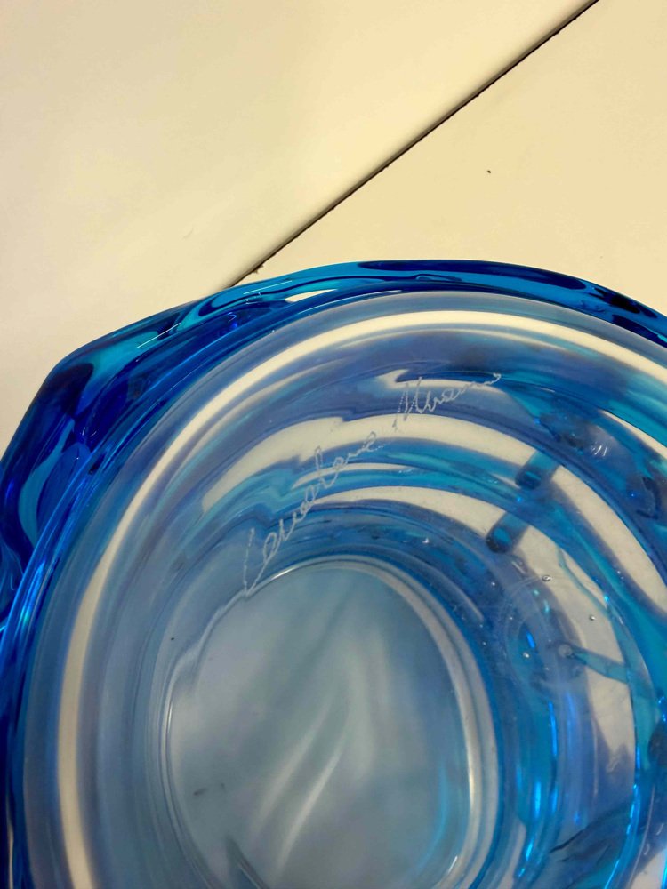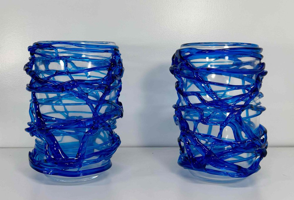 Italian Art Deco Style Cobalt Blue Murano Glass Vases by Cenedese, 2000s, Set of 2