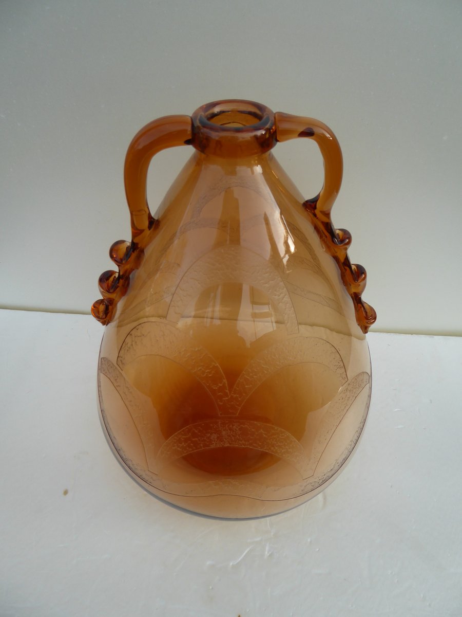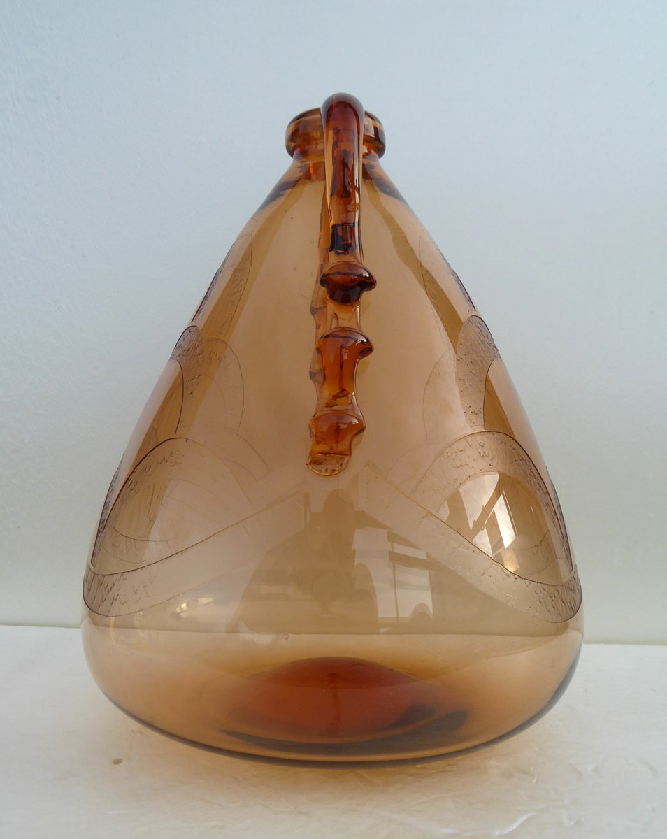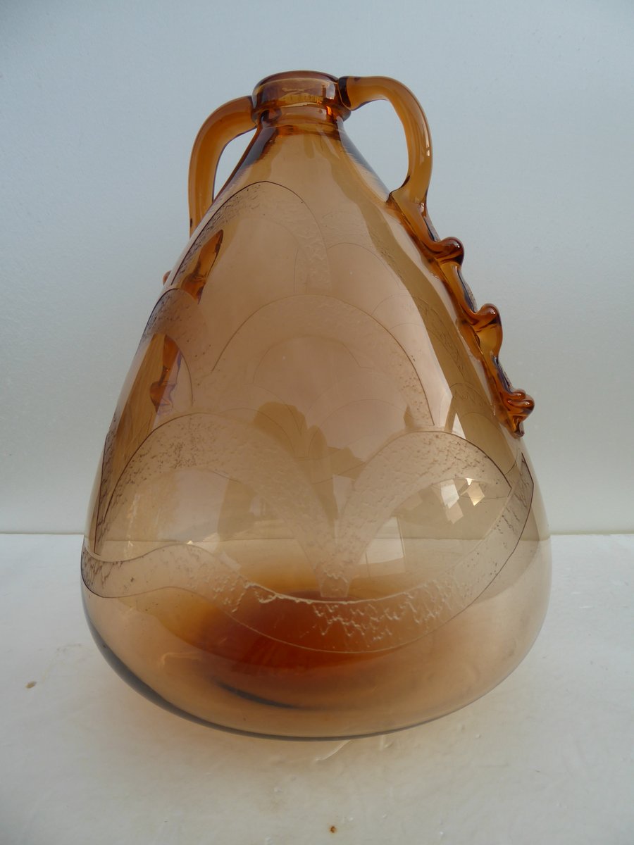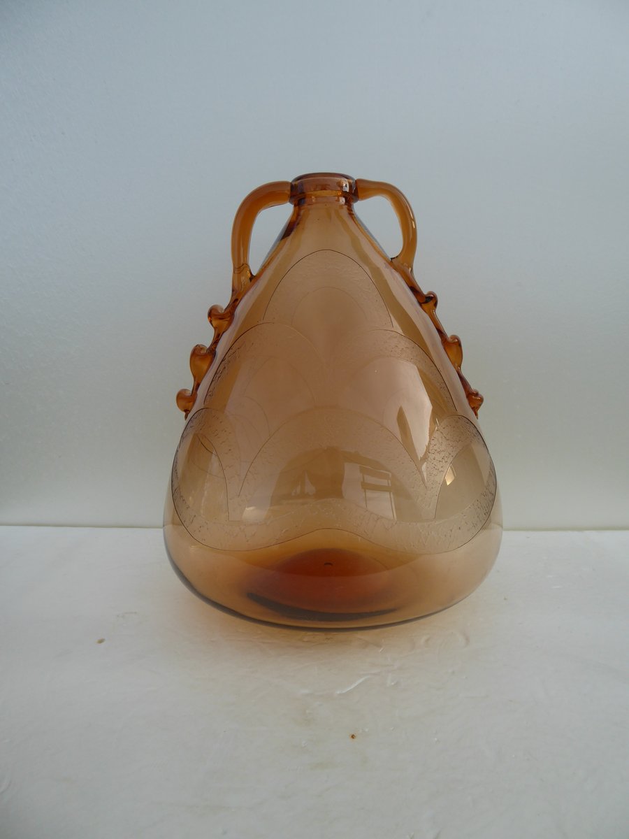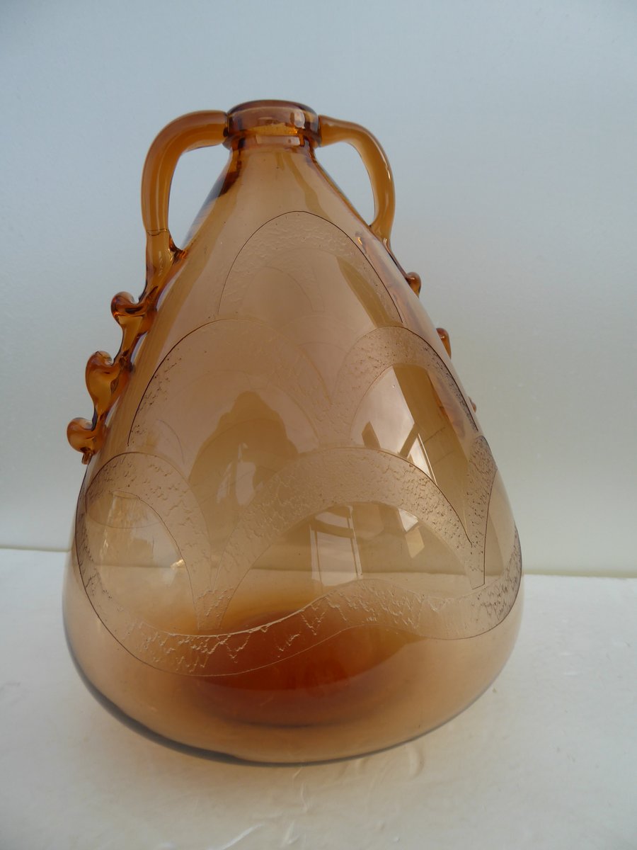 Italian Art Glass Art Deco Murano with Cameo Etched Pattern Vase attributed to Cappellin Vittorio Zecchin