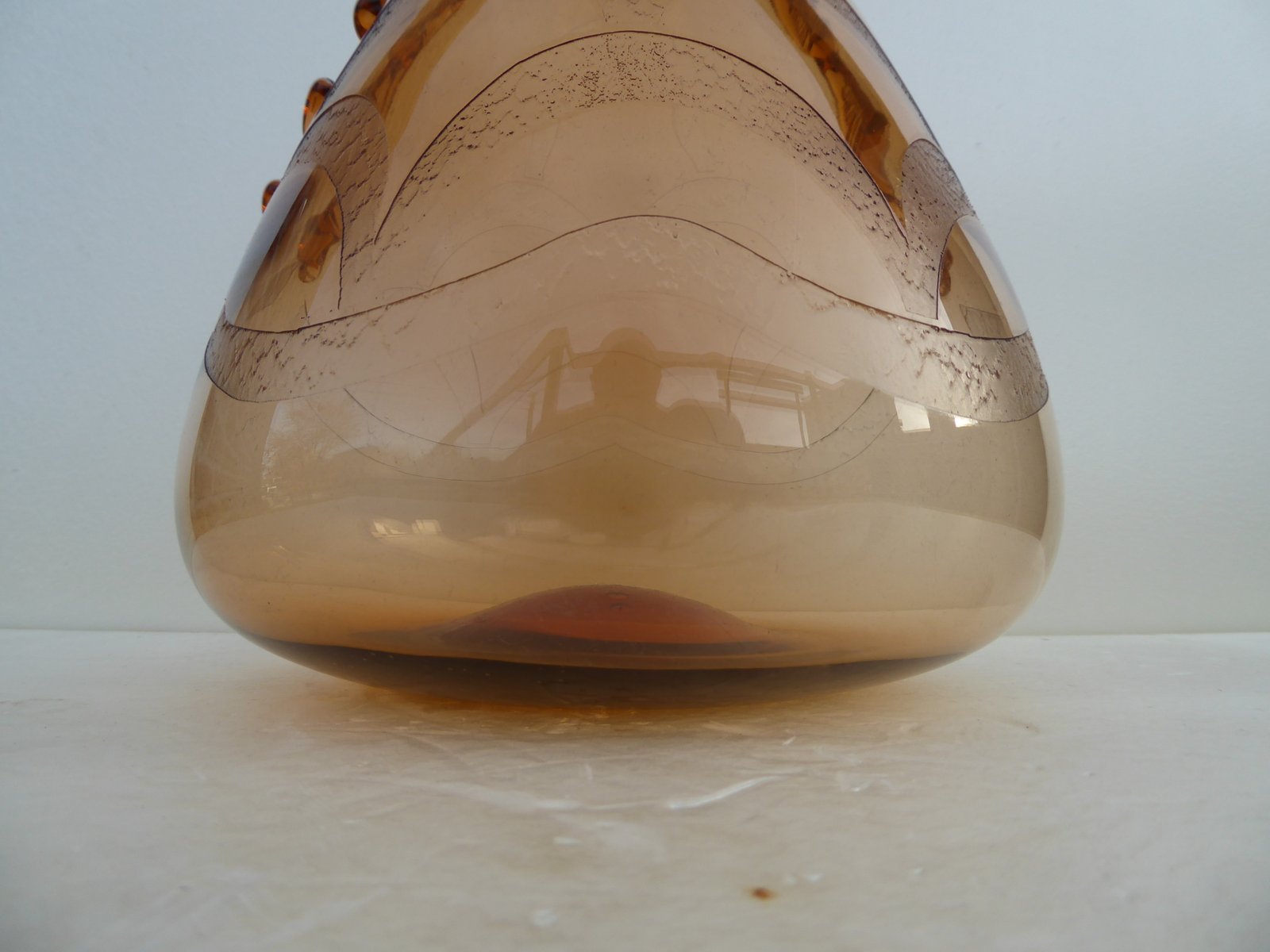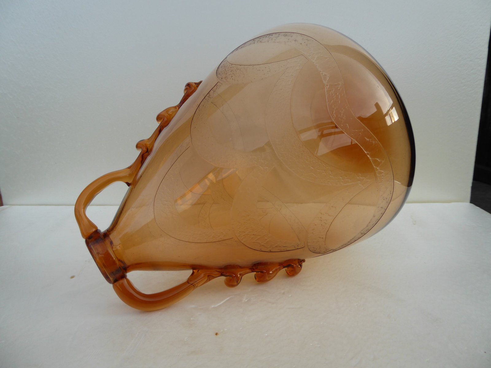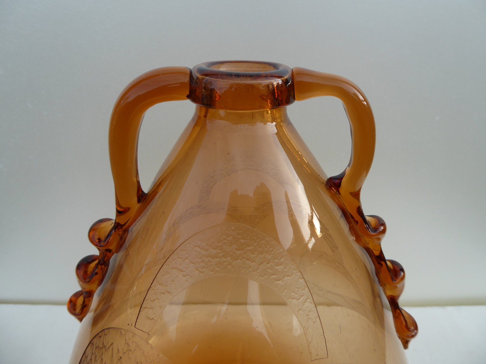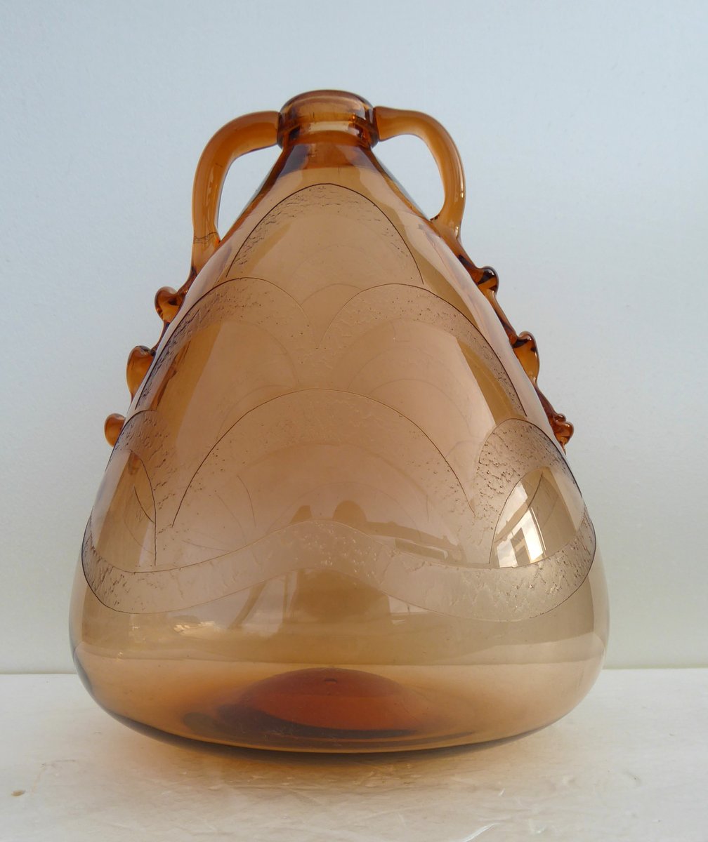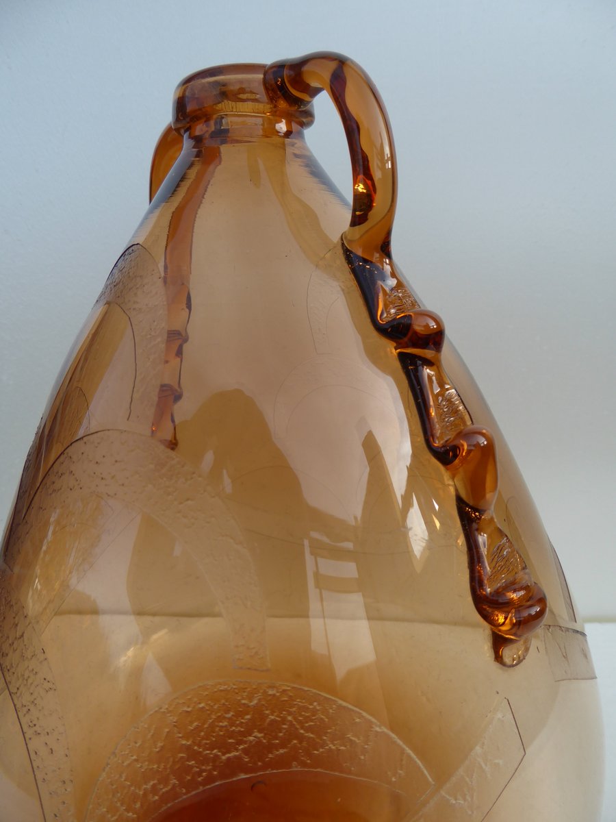 Italian Art Glass Art Deco Murano with Cameo Etched Pattern Vase attributed to Cappellin Vittorio Zecchin