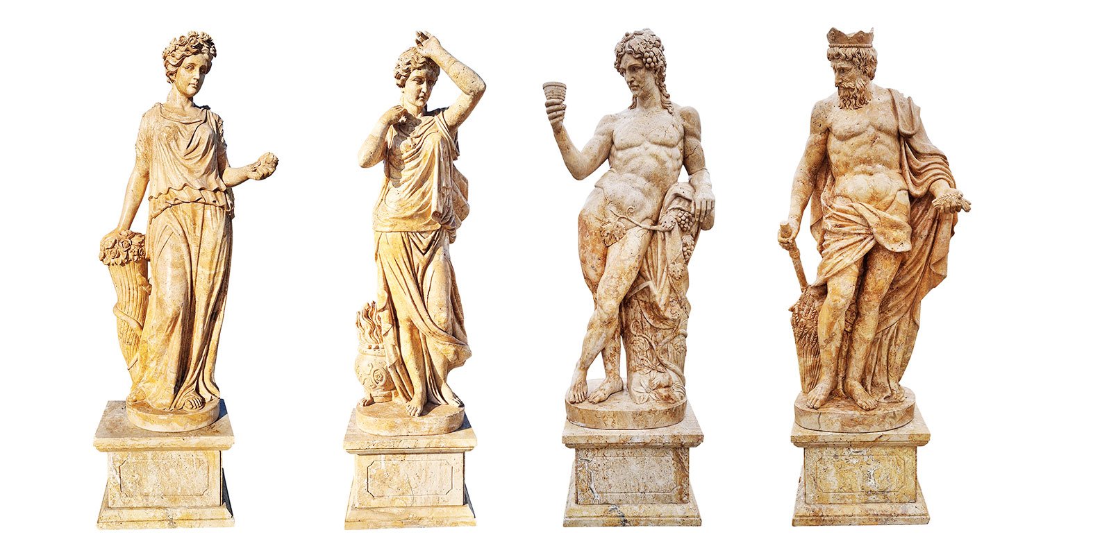Italian Artist, Four Seasons Statues, Travertine, Set of 4