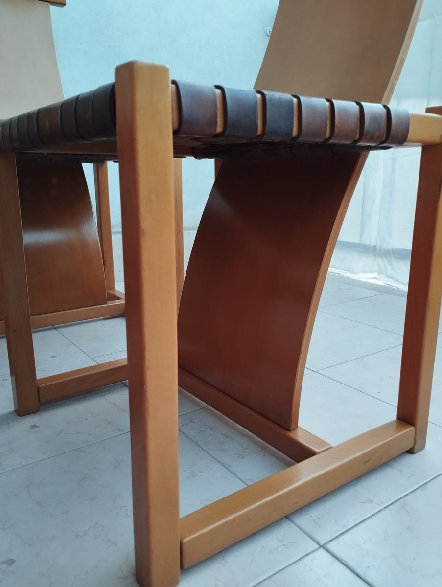 Italian Beech and Woven Leather Chairs, 1970s, Set of 4